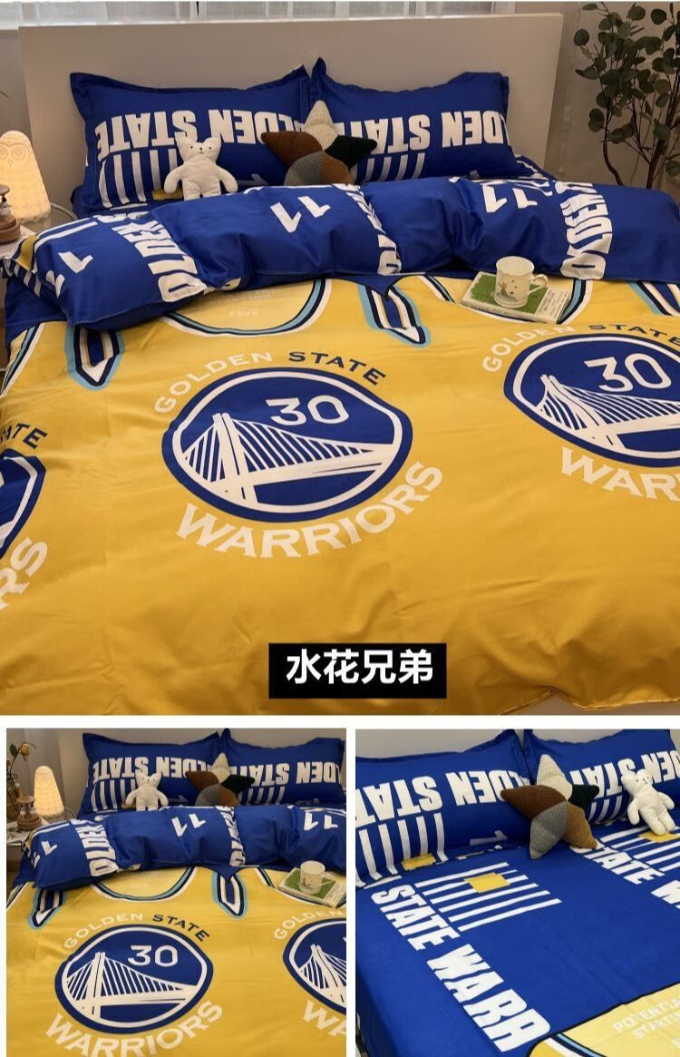 晶览四件套学生宿舍男生篮球库里勇士球迷床单被套被罩四件套四季通用 金州勇士-客 1.2米三件套(宿舍床)