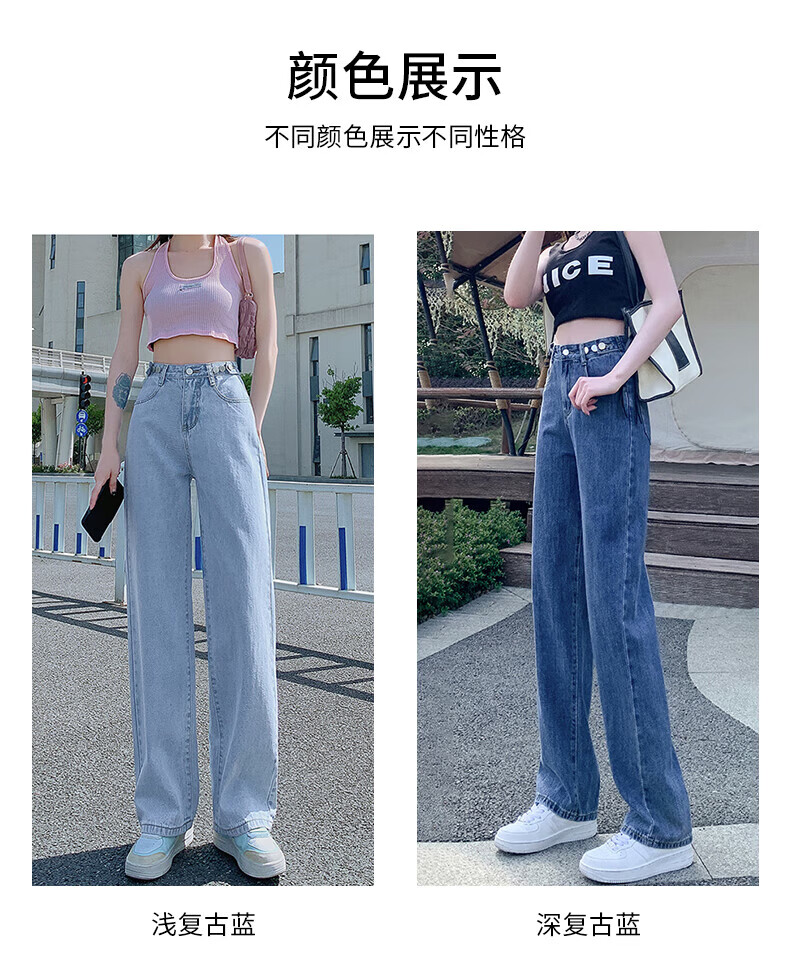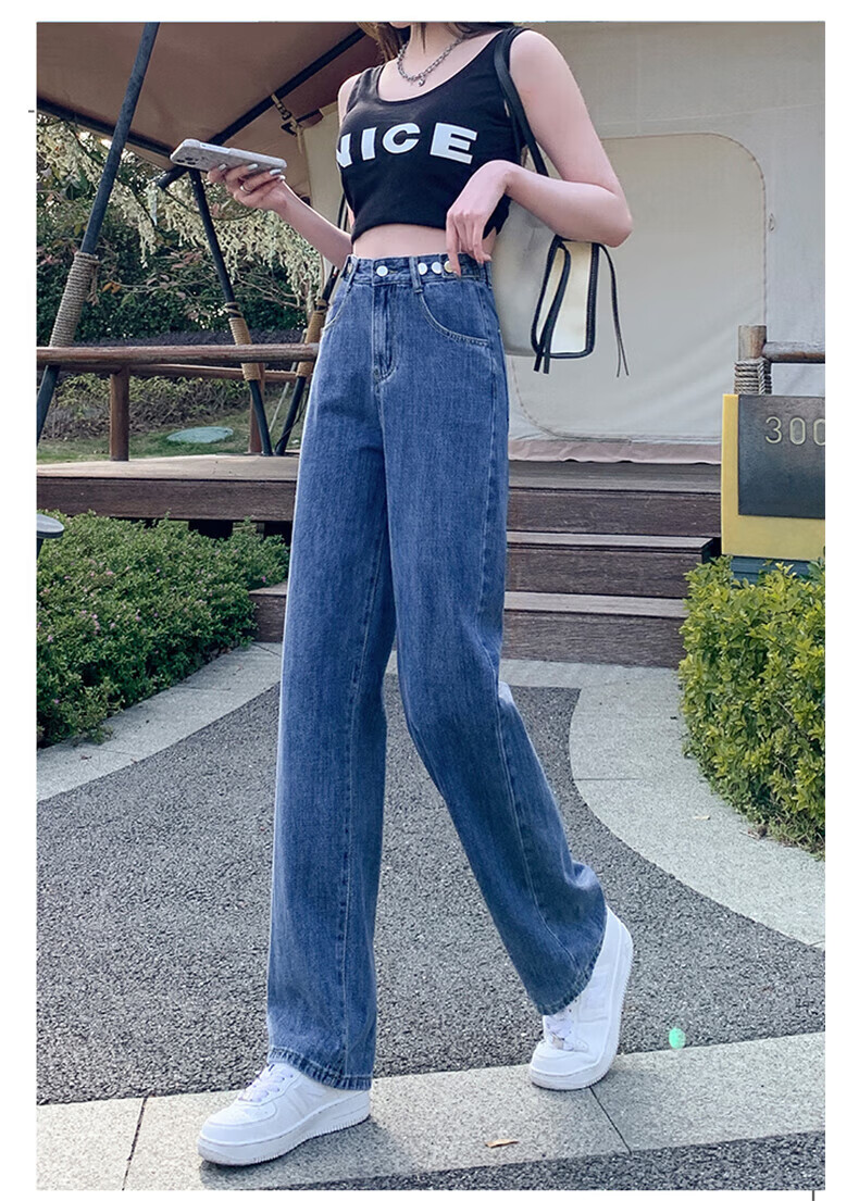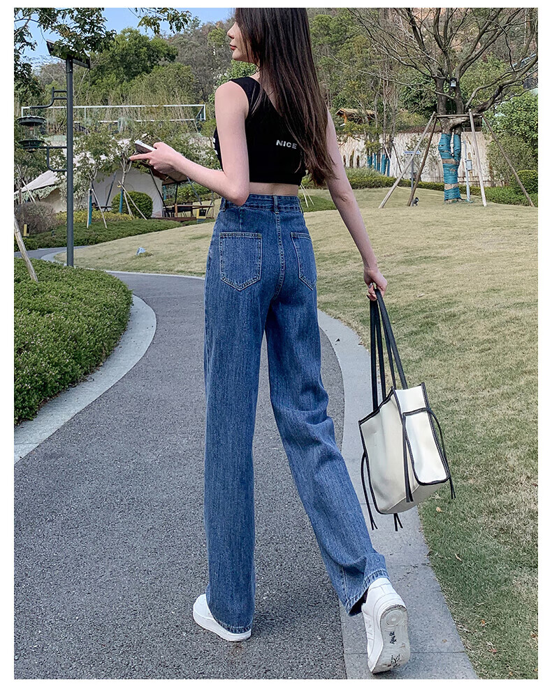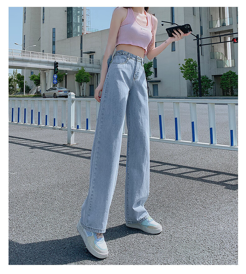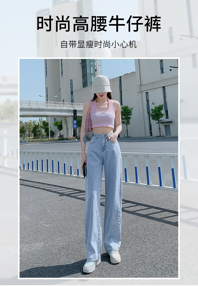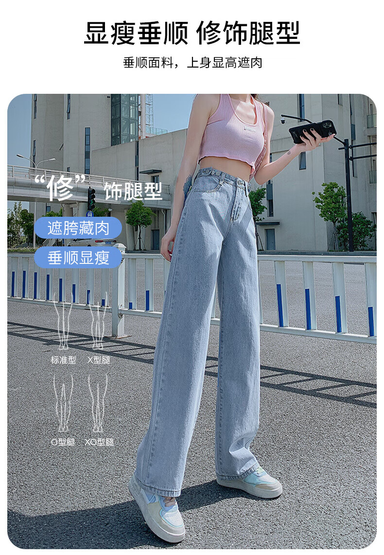 浪莎牛仔裤女春秋2026新款高腰显瘦小个子垂感直筒拖地裤宽松阔腿裤子 浅蓝色 30 【推荐126-135斤】
