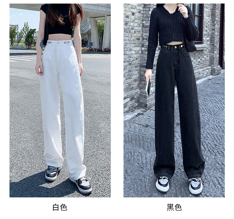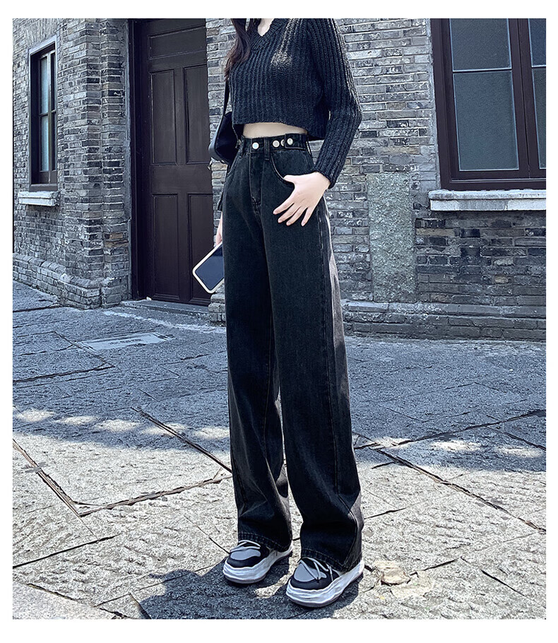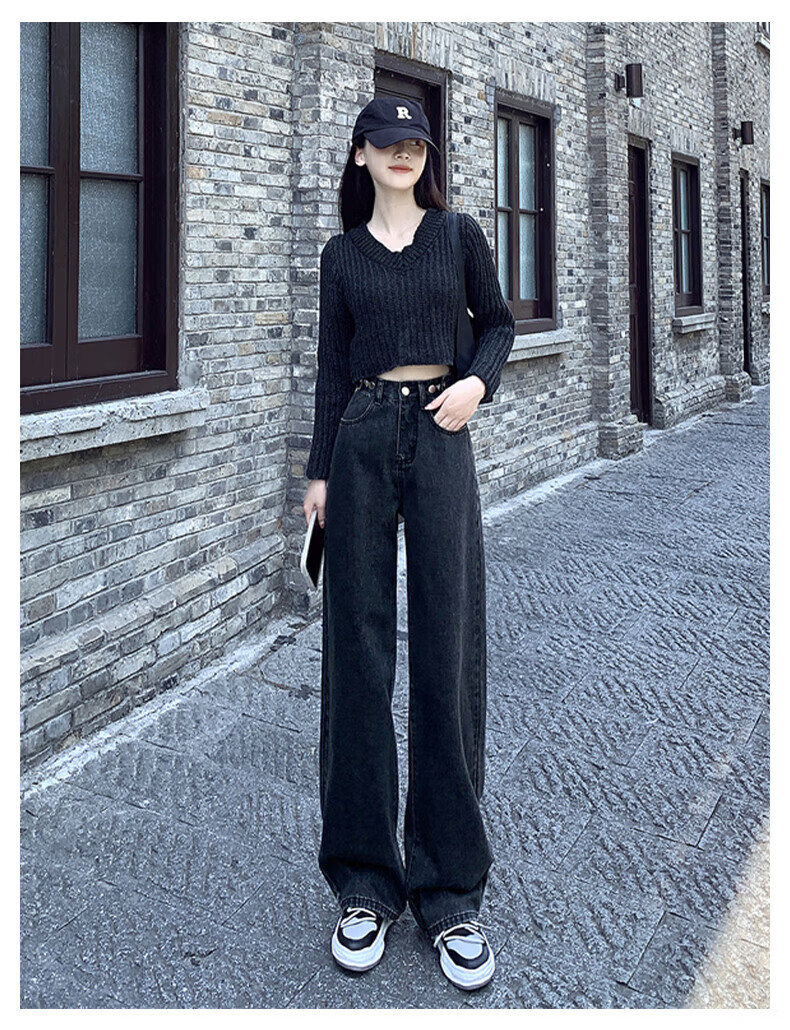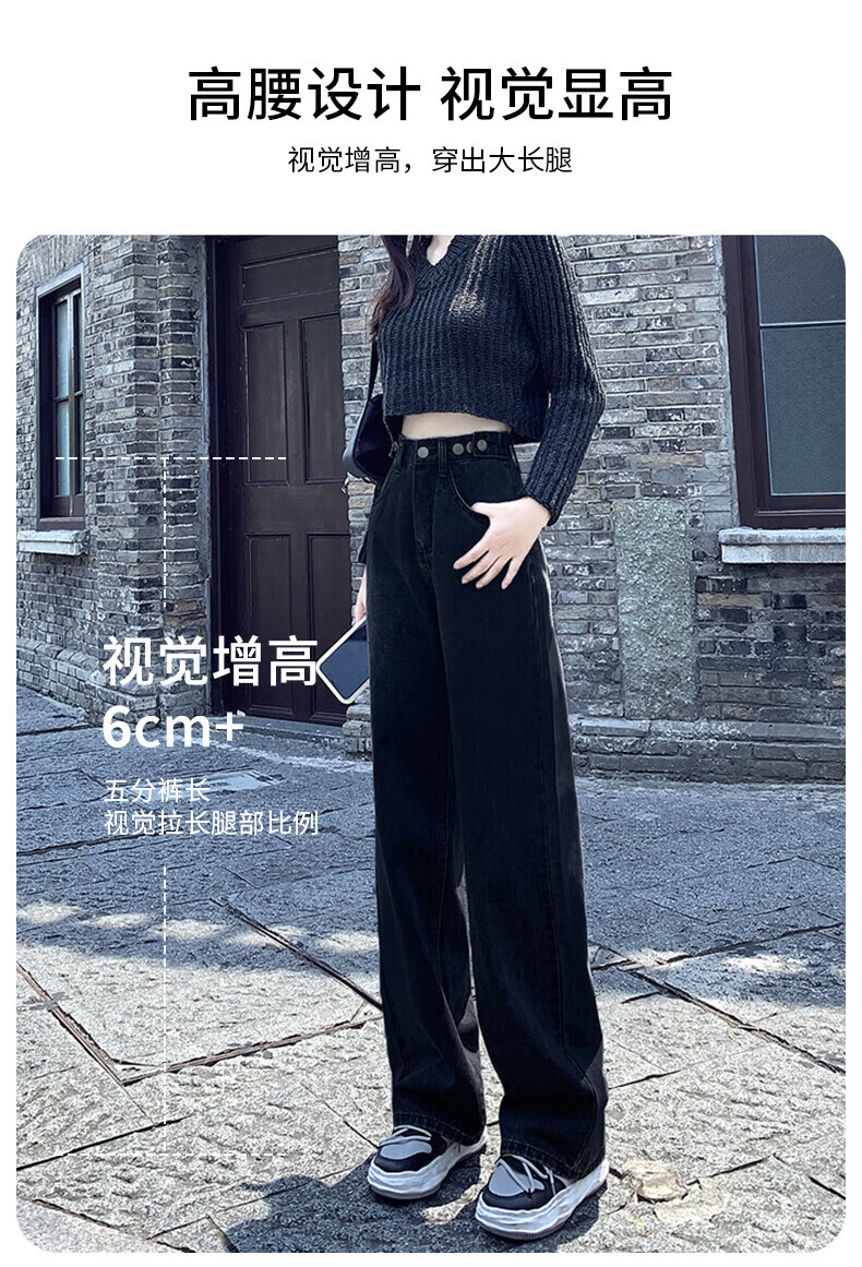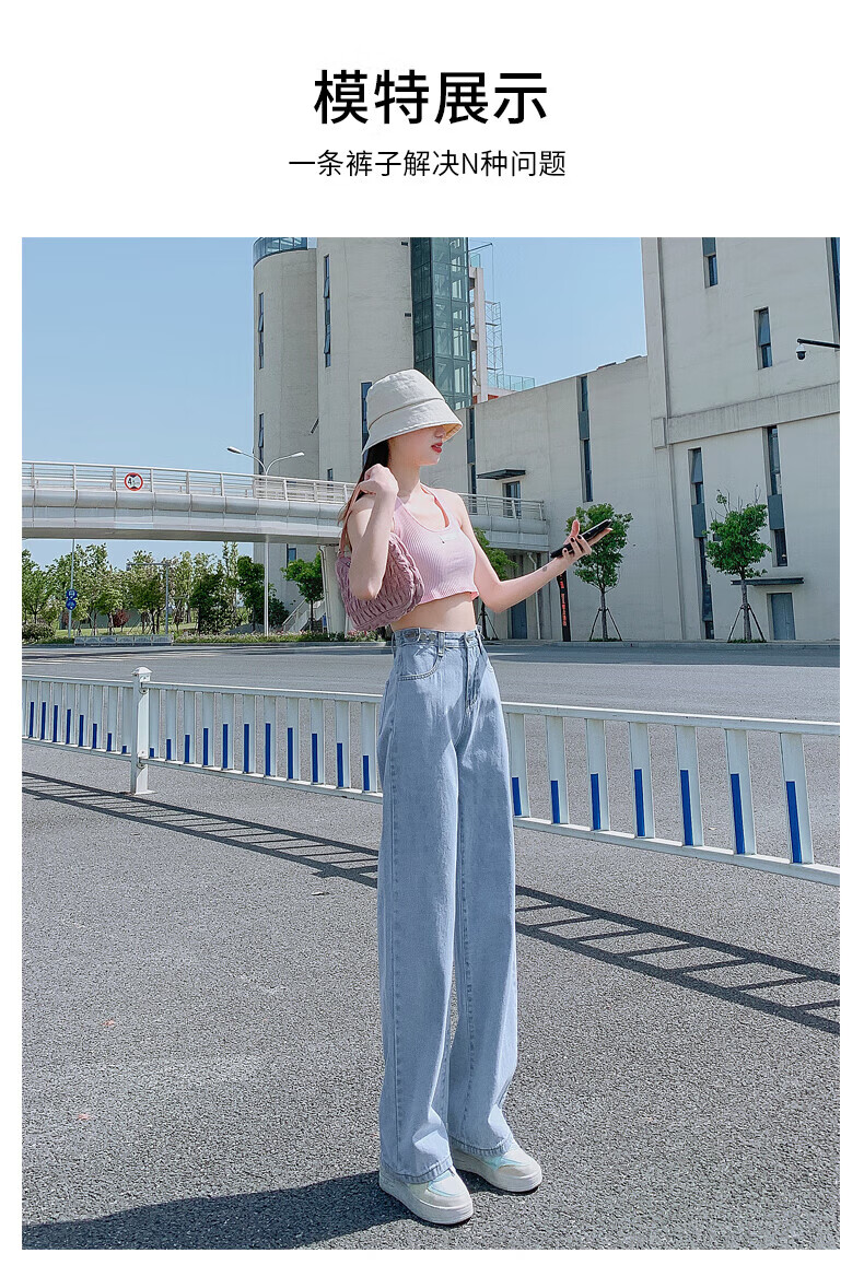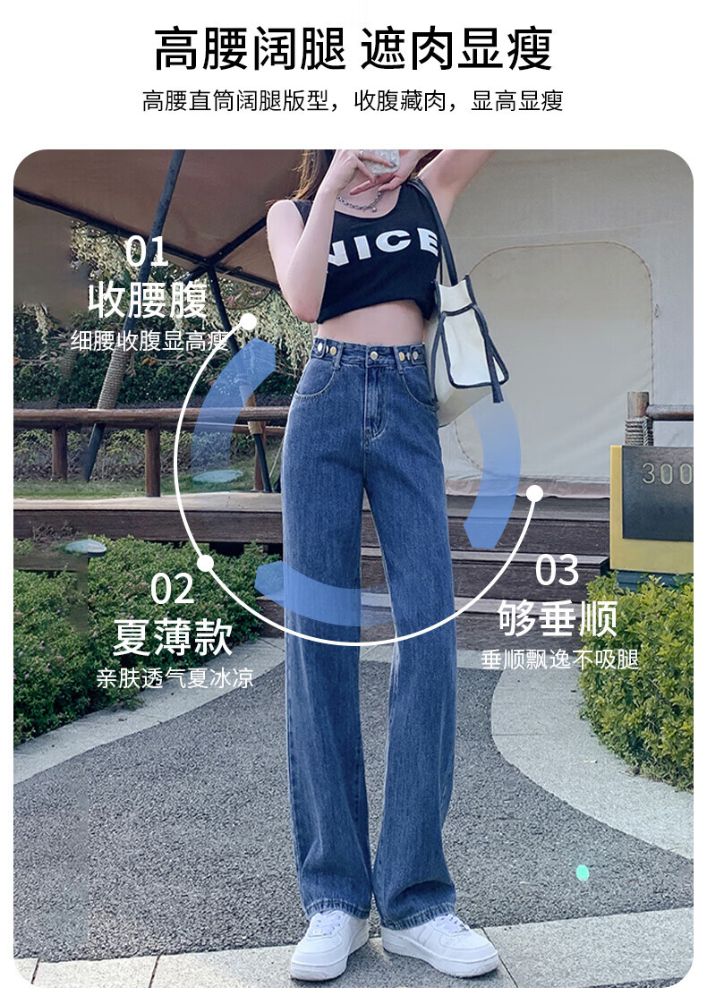 浪莎牛仔裤女春秋2026新款高腰显瘦小个子垂感直筒拖地裤宽松阔腿裤子 浅蓝色 30 【推荐126-135斤】