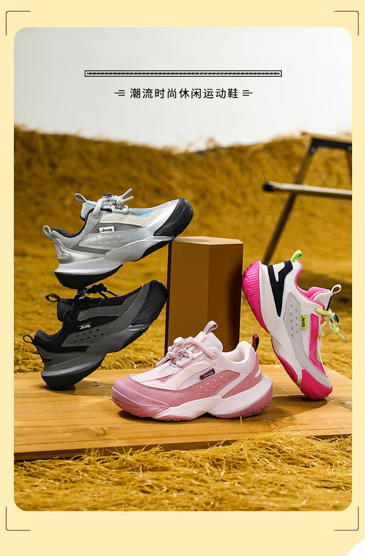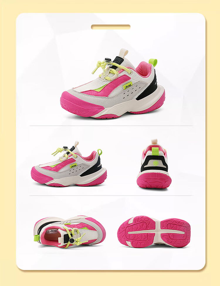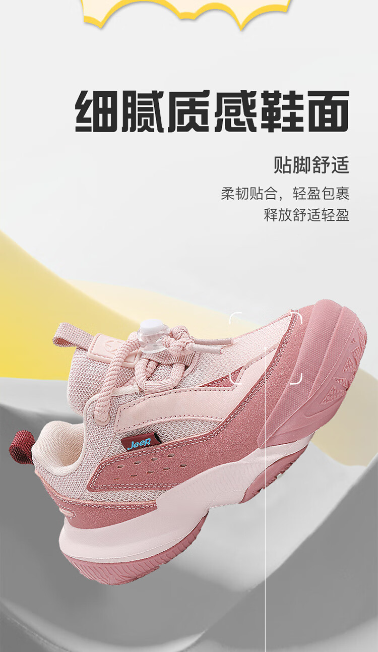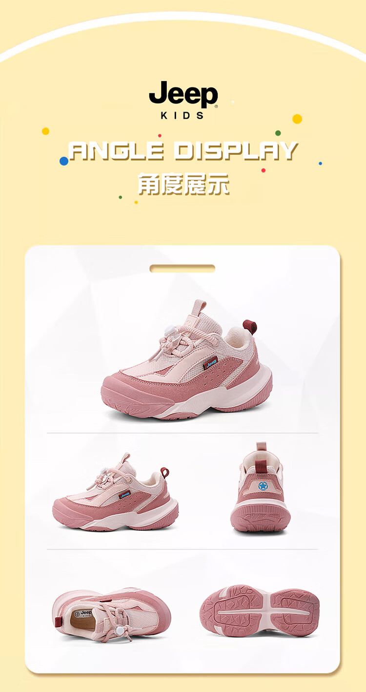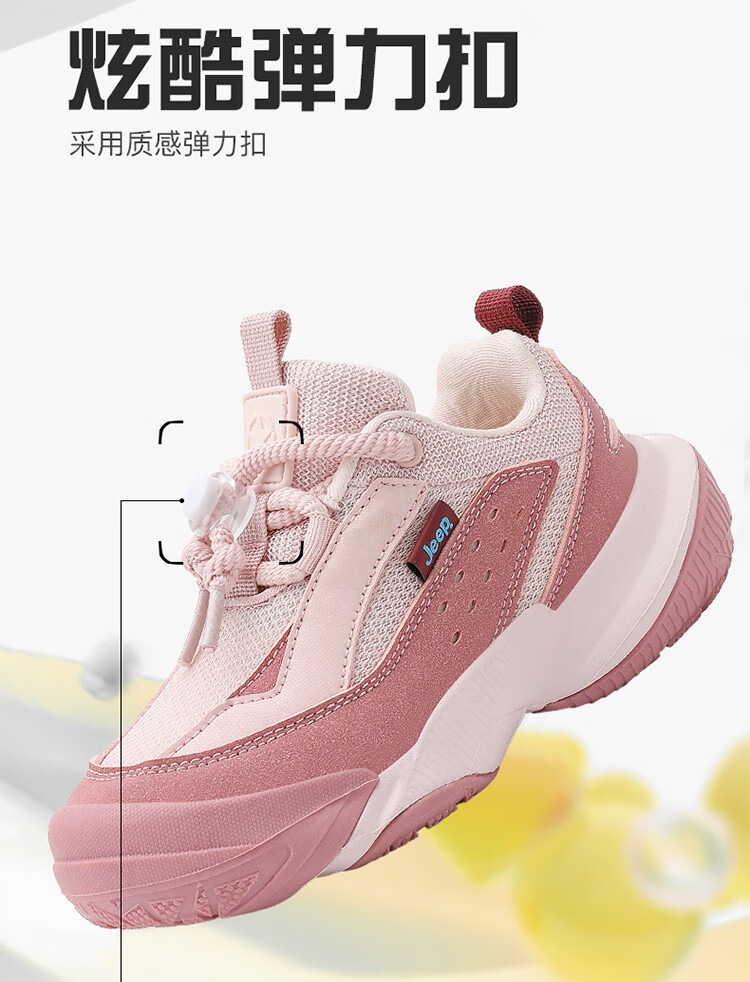 JEEP秋季新款革面运动鞋猪鼻扣防滑软底儿童鞋休闲鞋 粉色 35