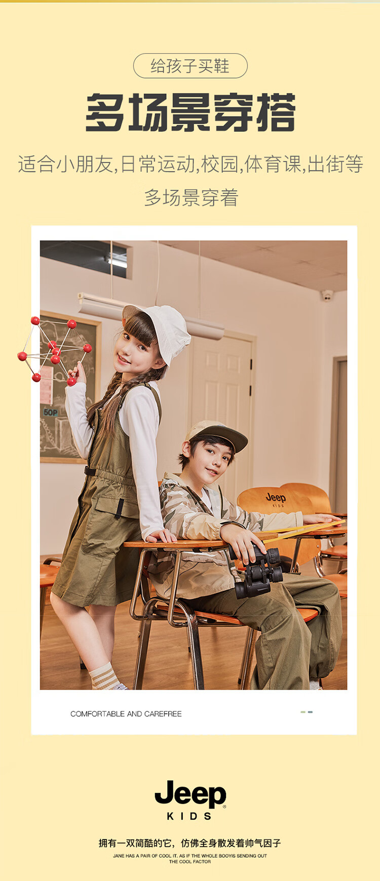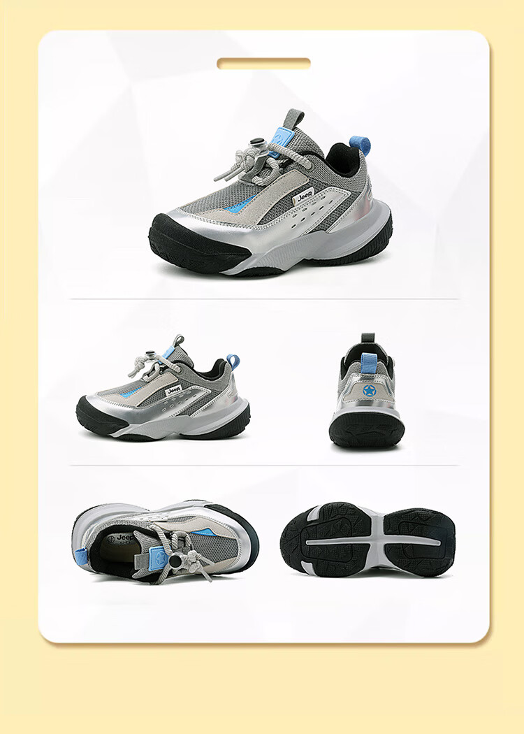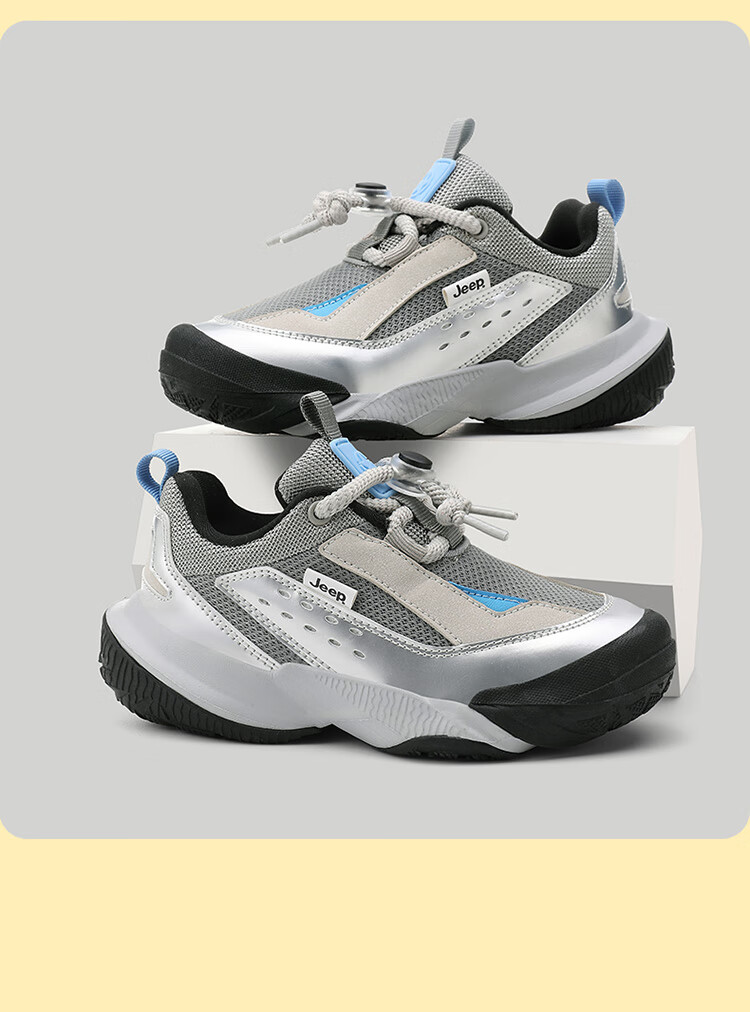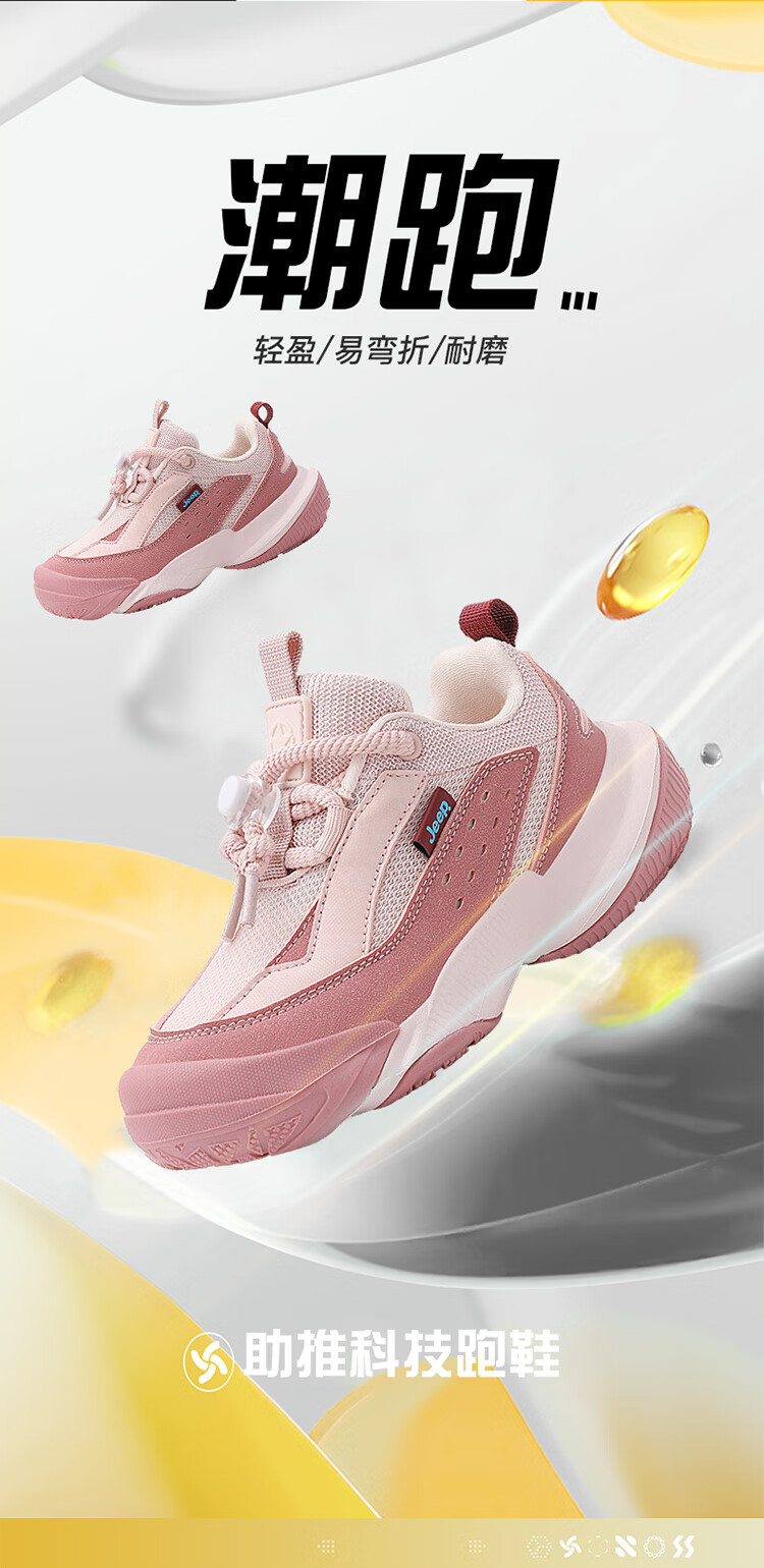 JEEP秋季新款革面运动鞋猪鼻扣防滑软底儿童鞋休闲鞋 粉色 35