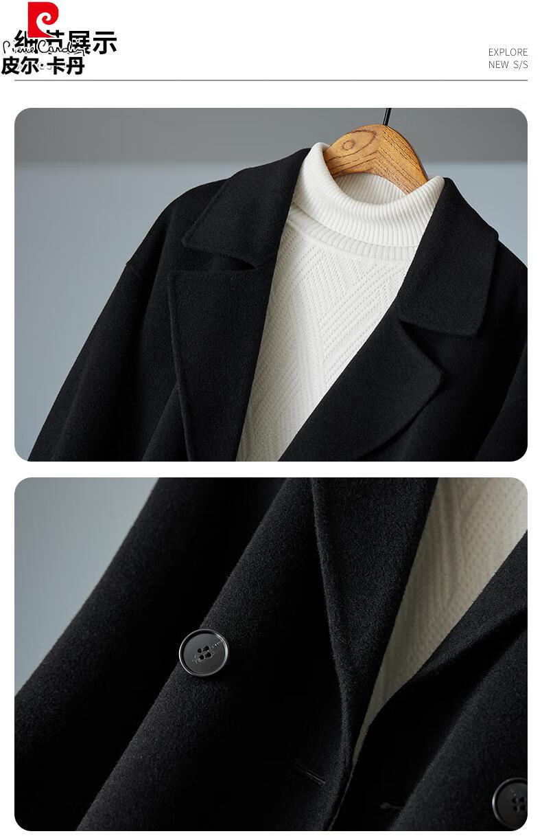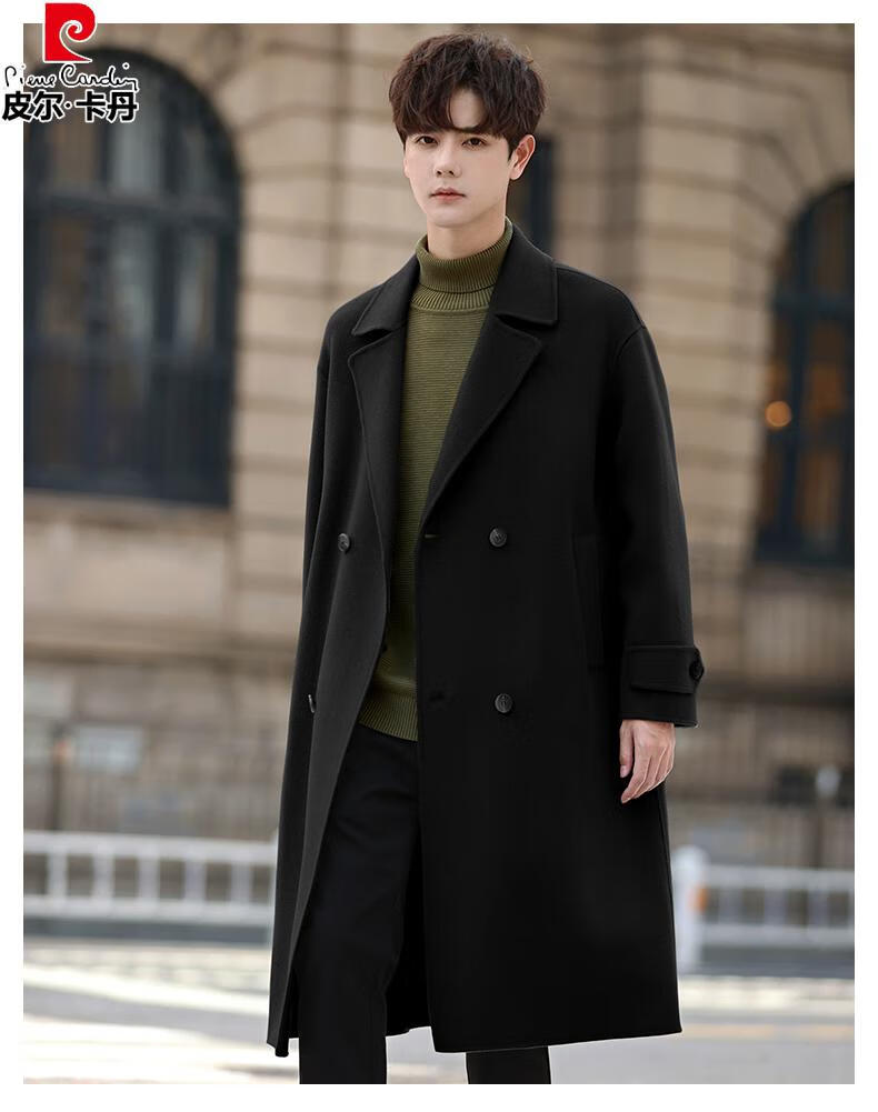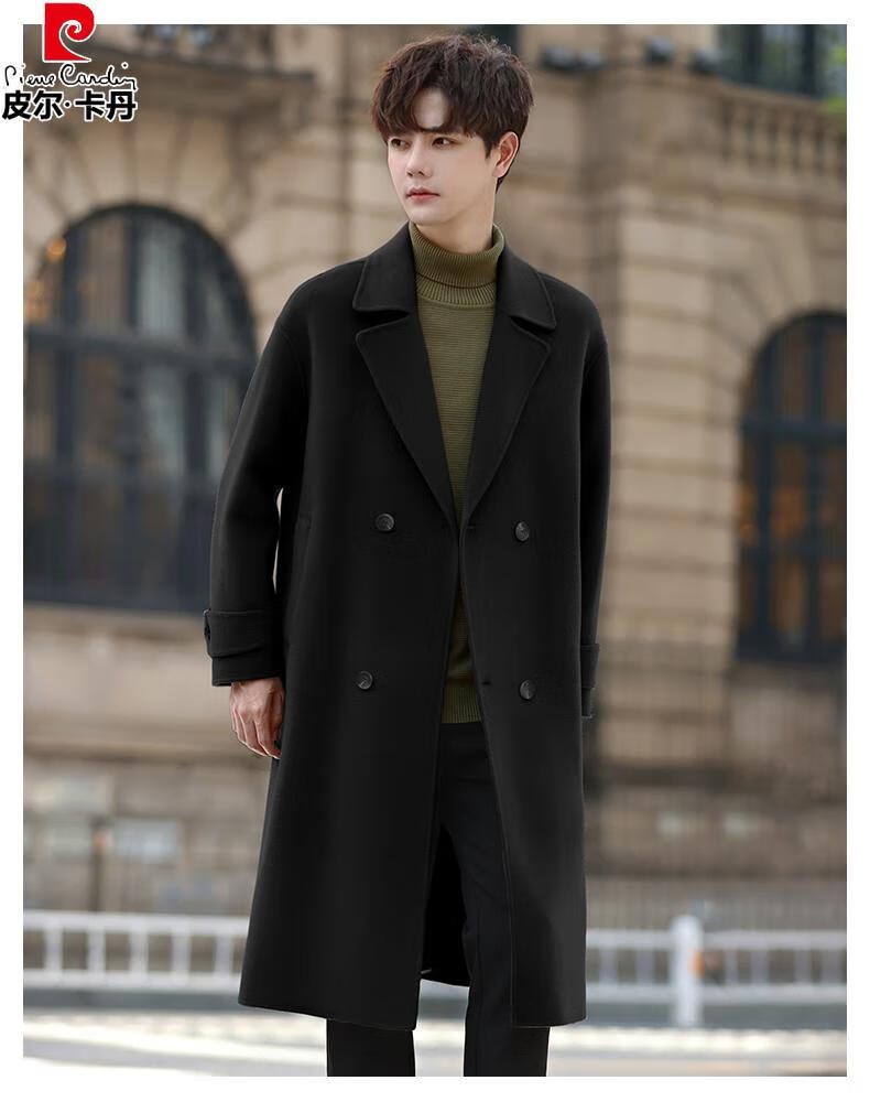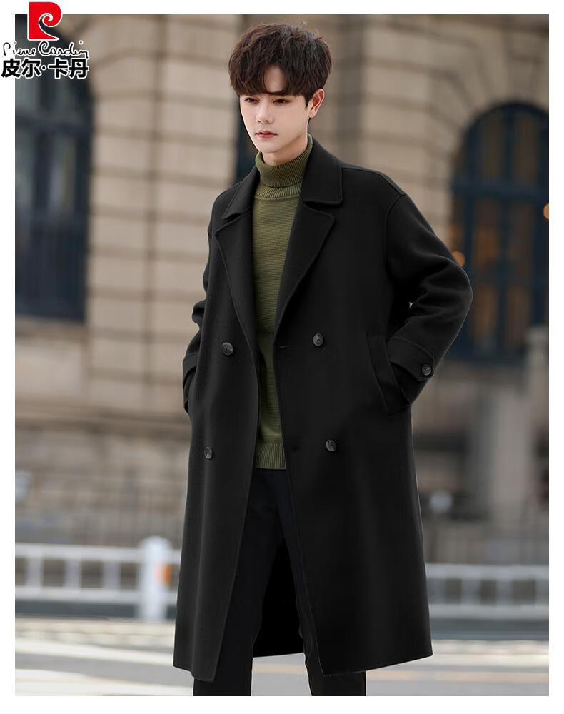 皮尔卡丹(pierre cardin)高端双面羊毛呢大衣男士中长款过膝100%纯羊毛呢子外套风衣冬季加 灰绿色 (100%羊毛 ) M (135-160斤)