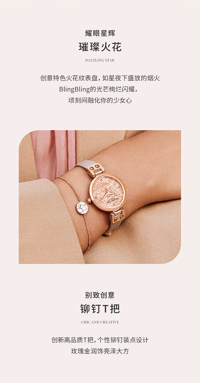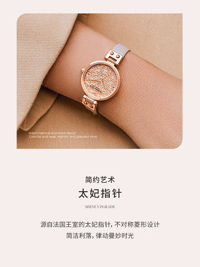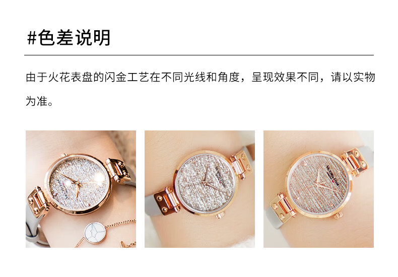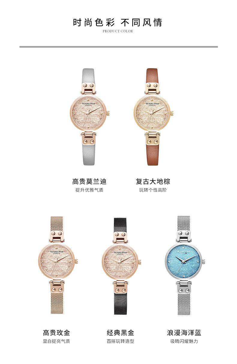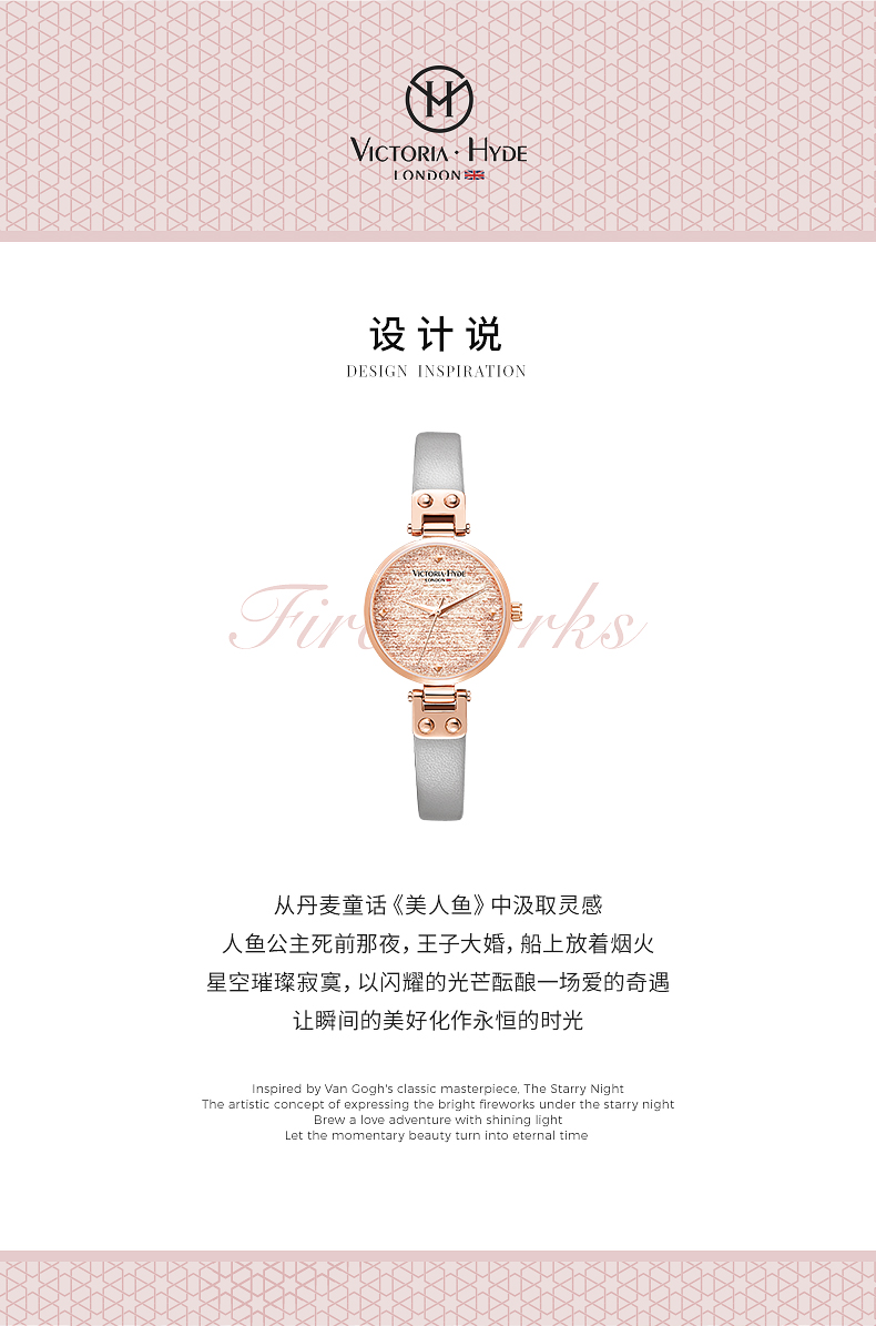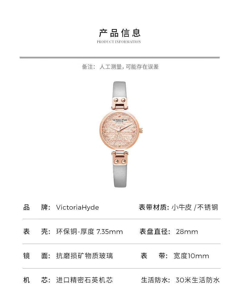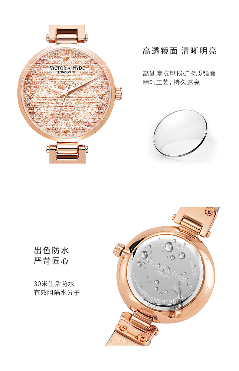 VICTORIA·HYDE火花手表女满天星学生轻奢潮流小众时尚ins礼物女表维多利亚海德 玫瑰金灰色皮带(含手链)