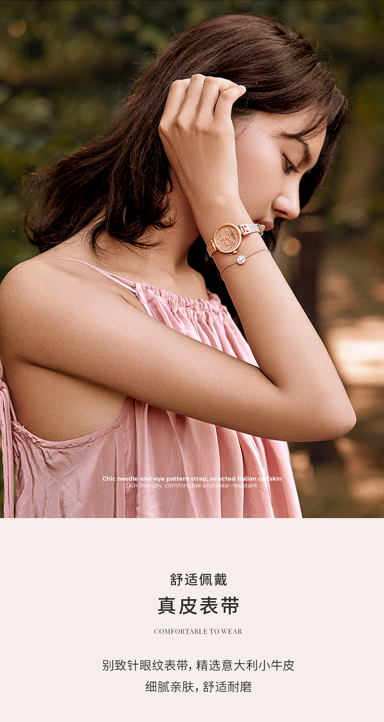 爱沃驰瑞士星座系列时尚镂空防水全自动机械手表女士表七夕生日礼物送女 玫壳白盘黑皮|进口机芯