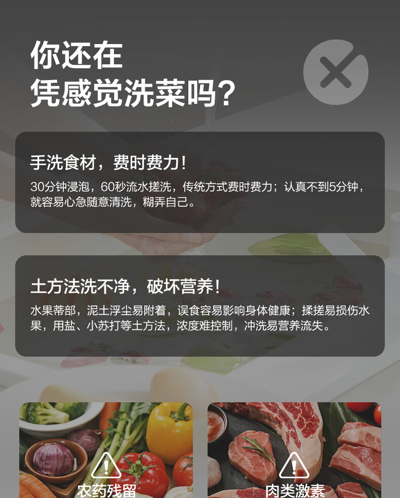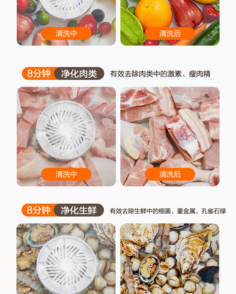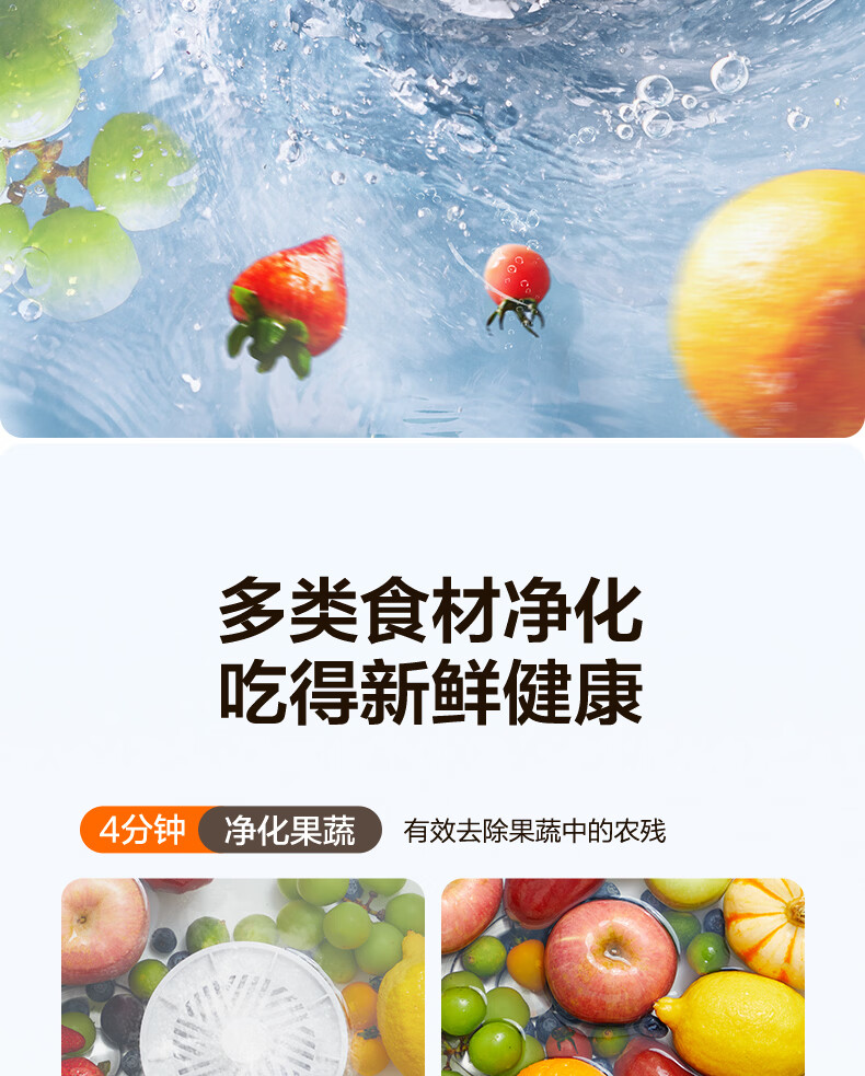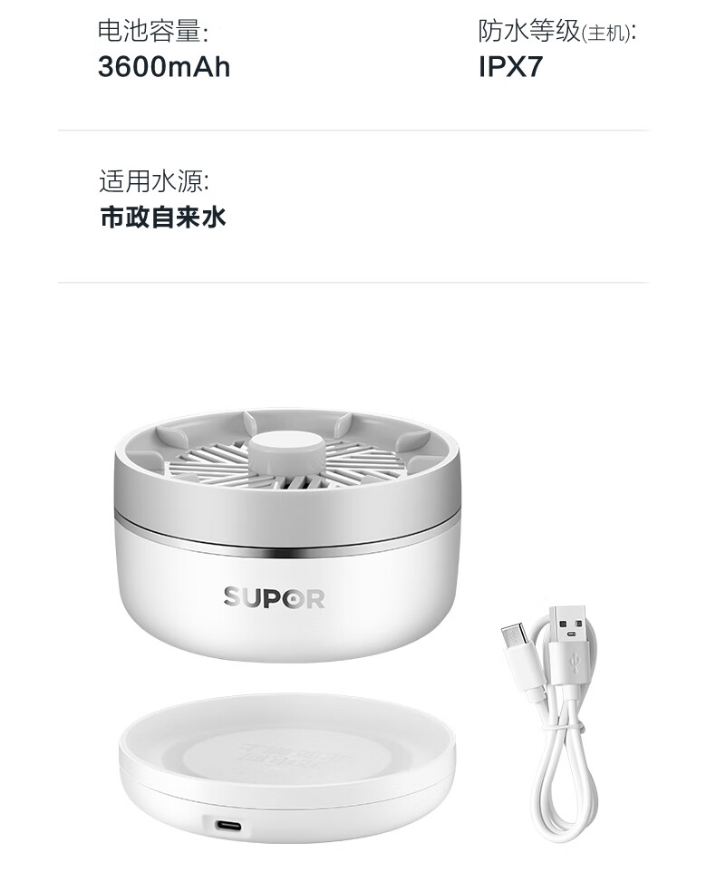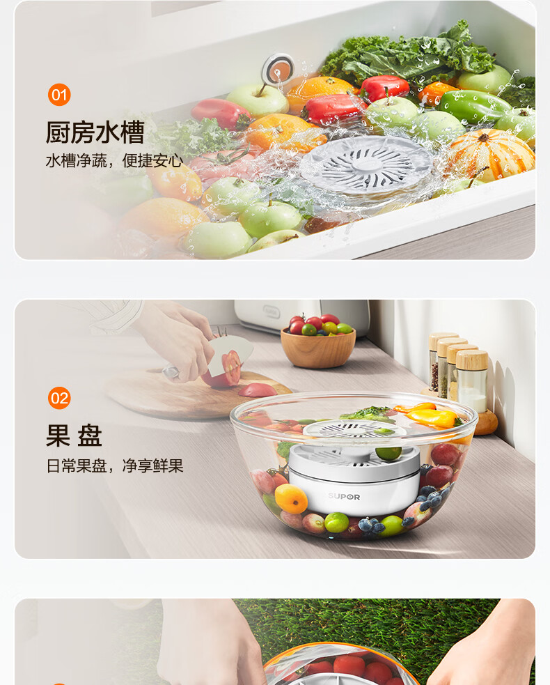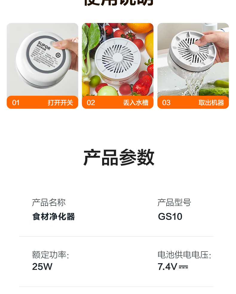 苏泊尔果蔬清洗机 食材净化机 果蔬净化清洗器 蔬菜去农残水果清洗神器 家用小型无线洗菜机GS10 基础款