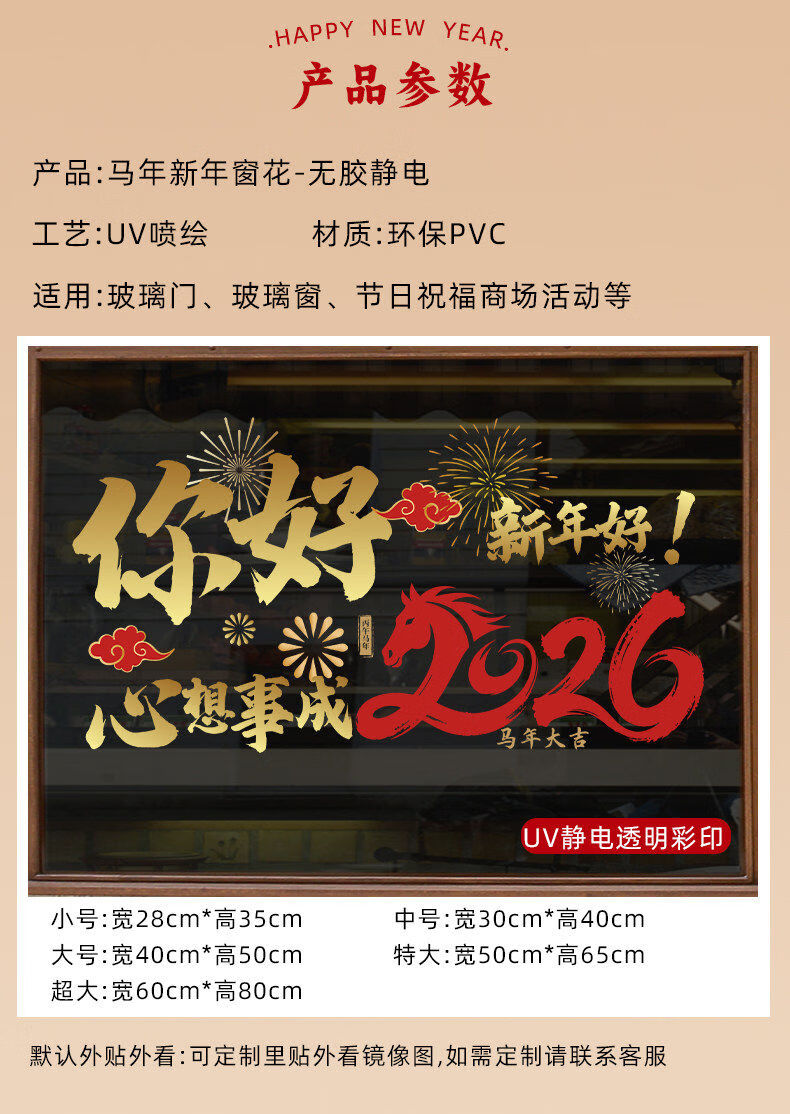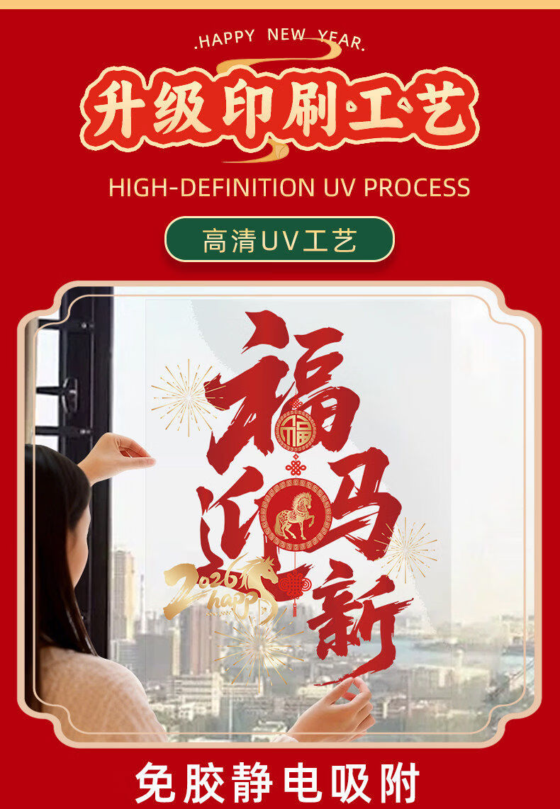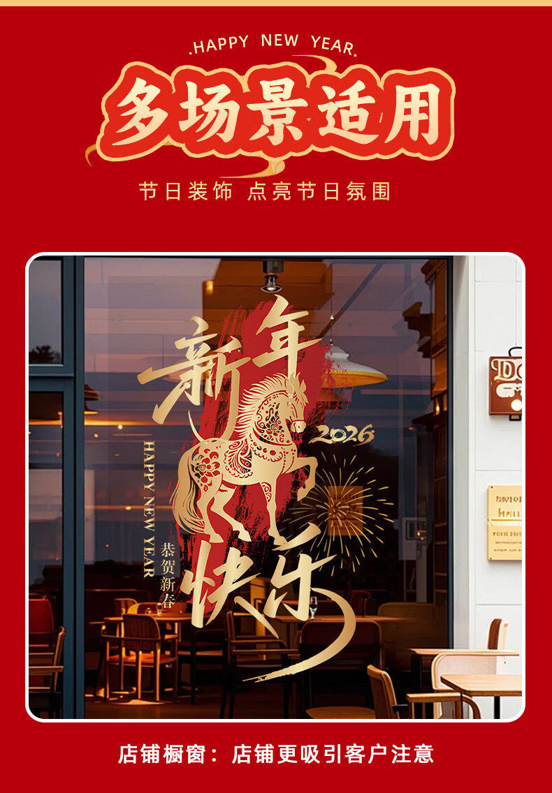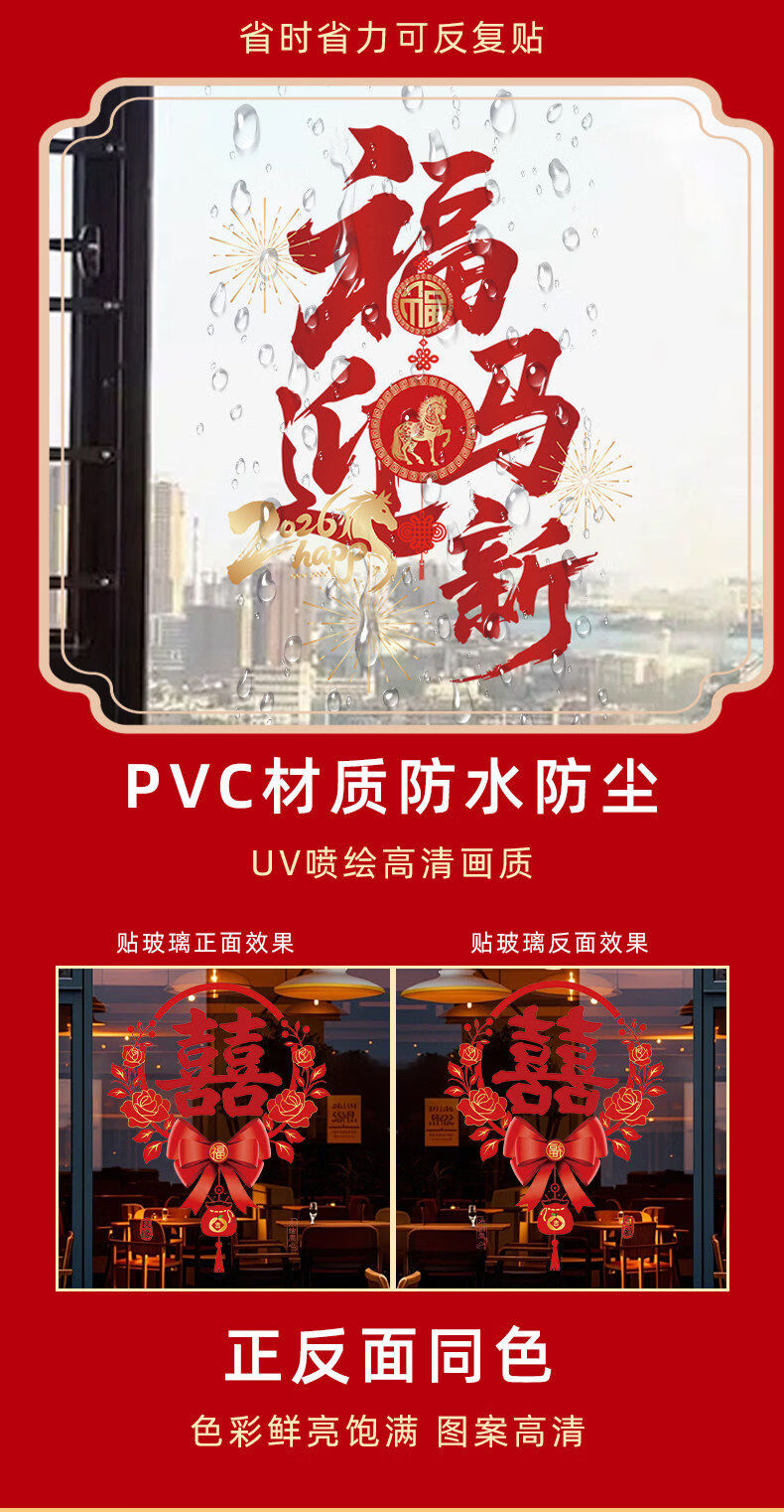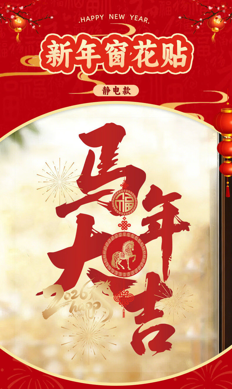 雅适(Yarwsser)马年春节装饰窗花纸玻璃贴2026新年装饰店铺橱窗门贴过年静电贴纸 52.马年大吉 超大:宽80cm-高60cm