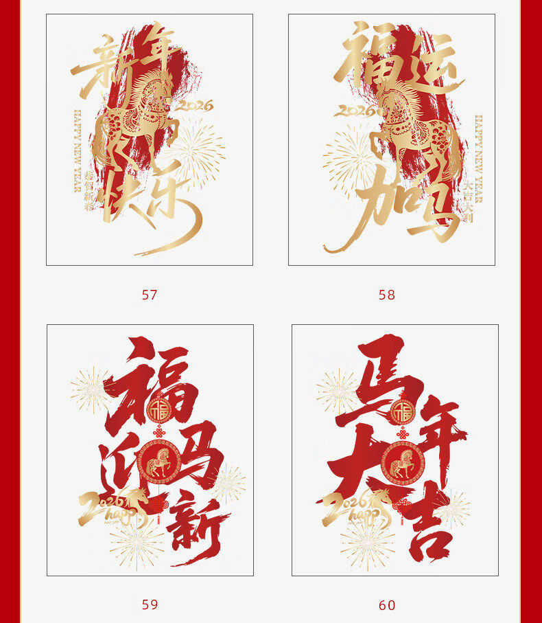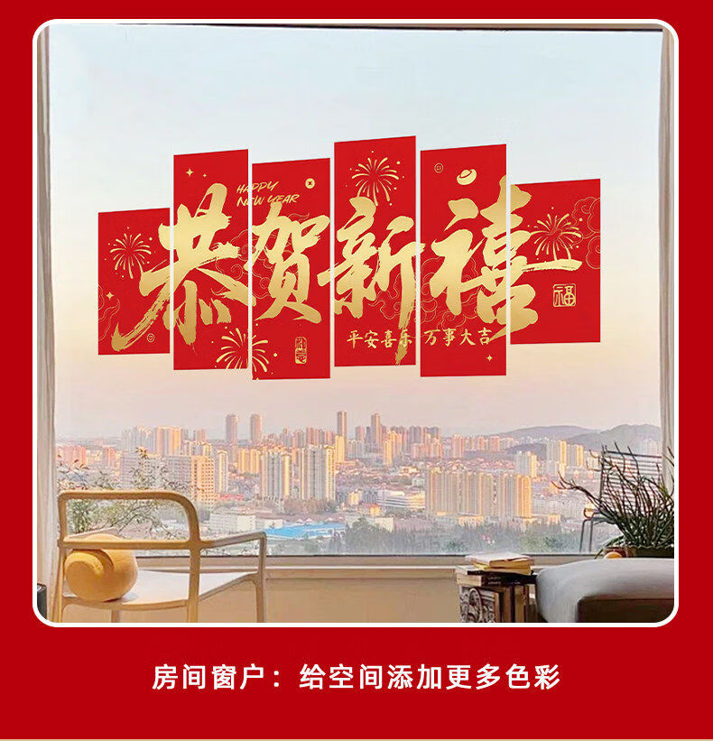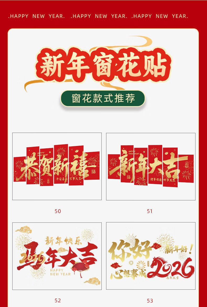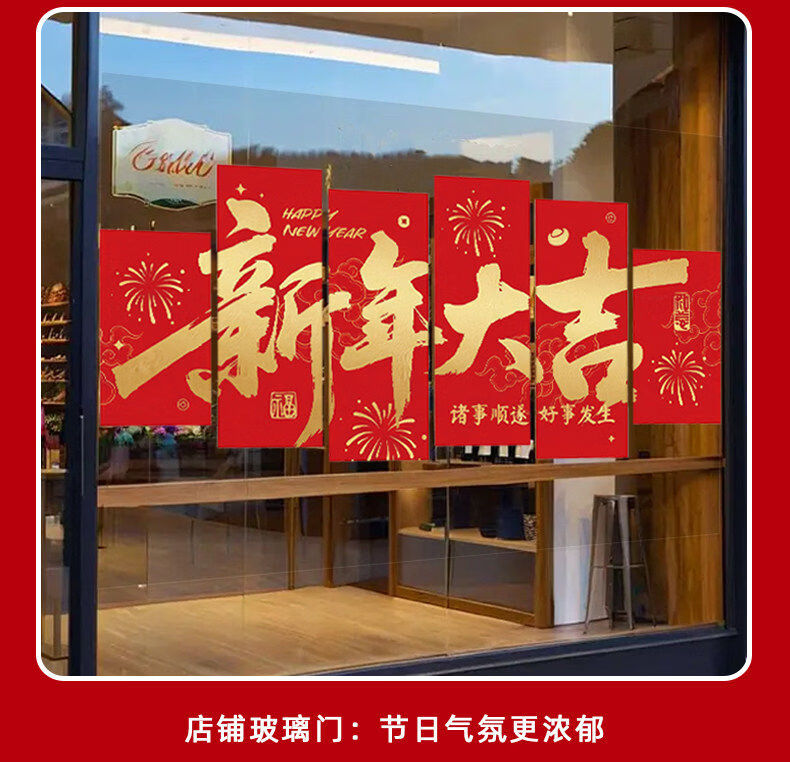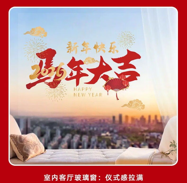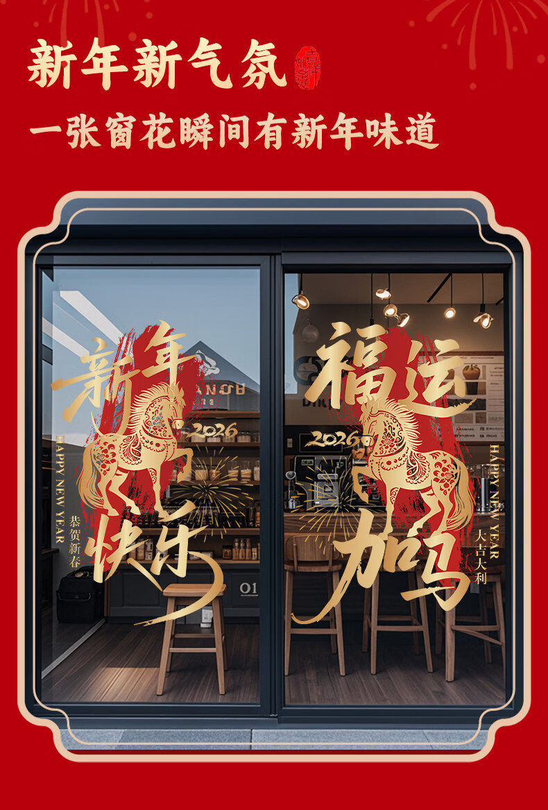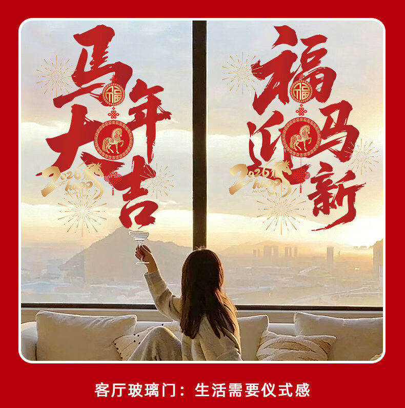 雅适(Yarwsser)马年春节装饰窗花纸玻璃贴2026新年装饰店铺橱窗门贴过年静电贴纸 52.马年大吉 超大:宽80cm-高60cm