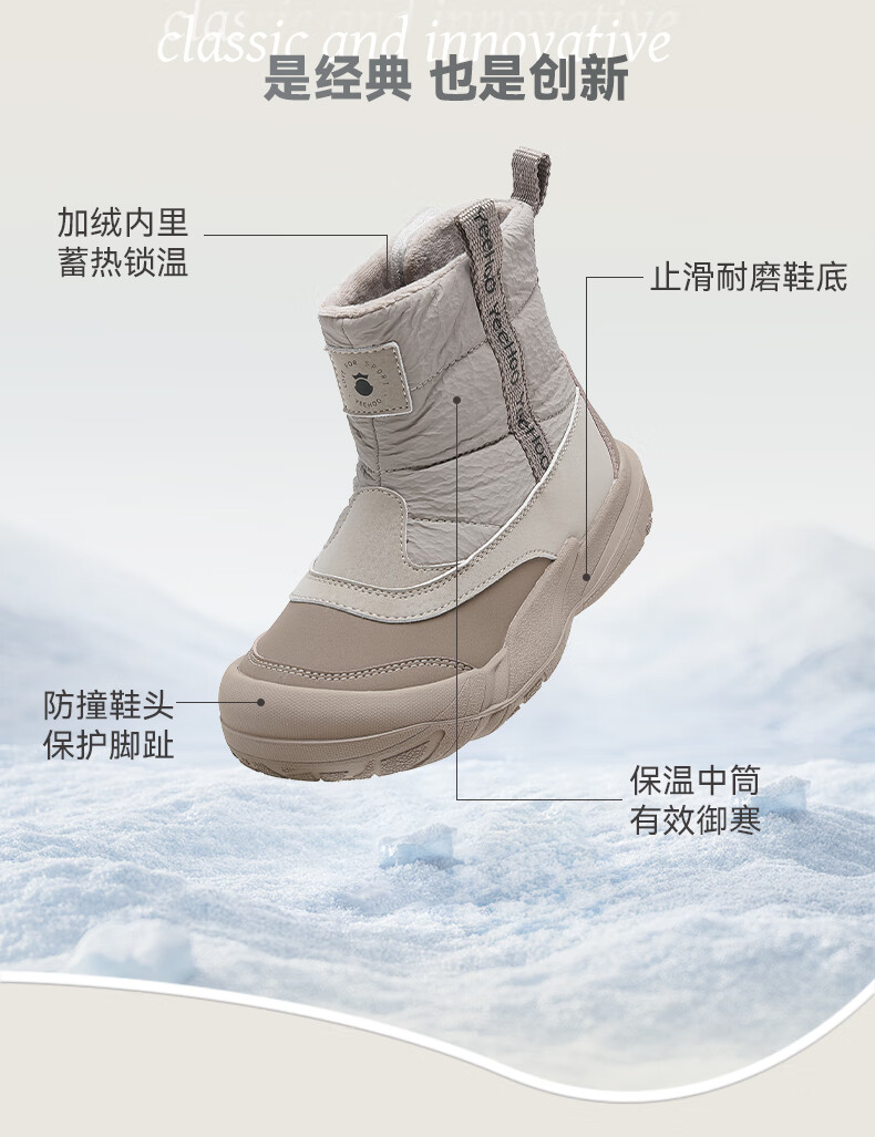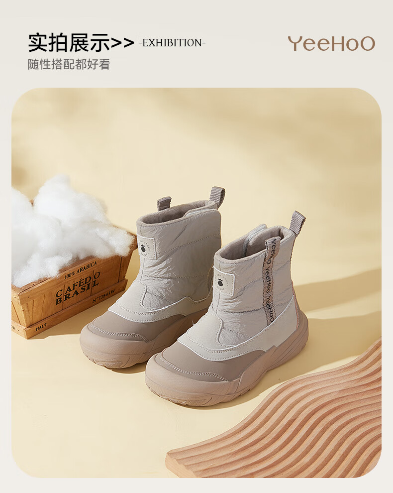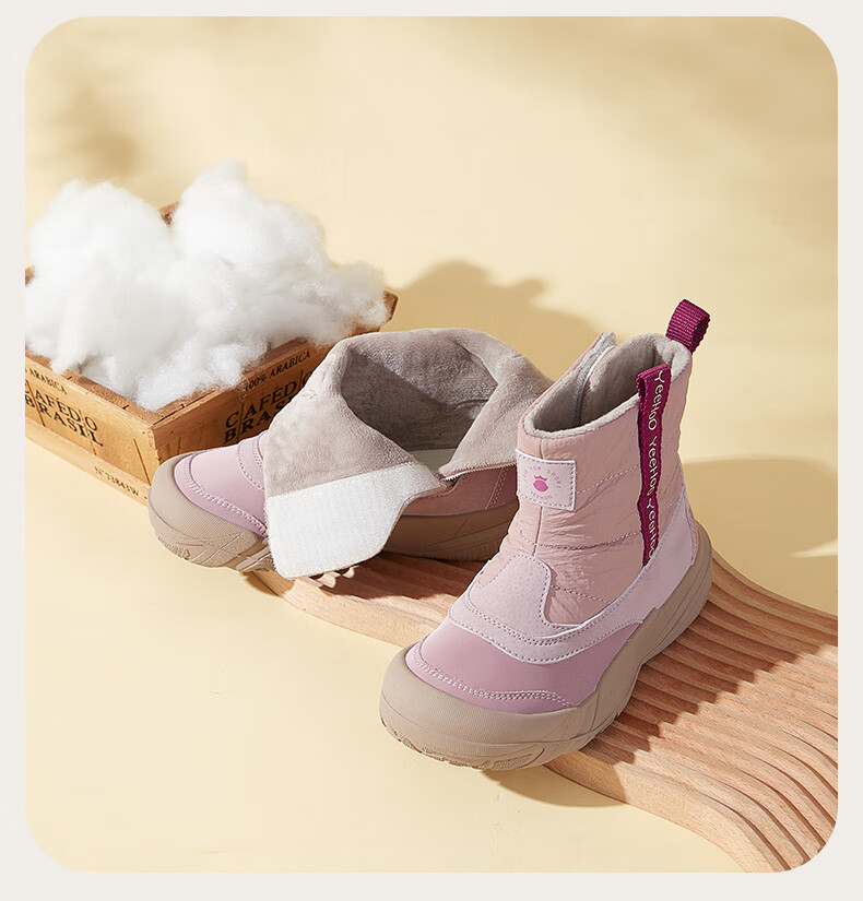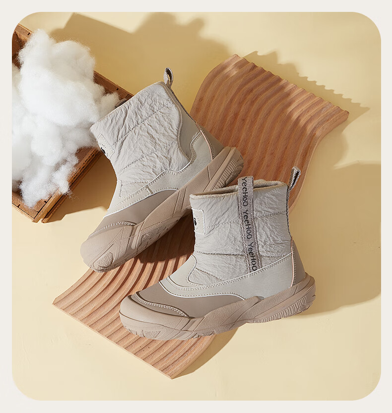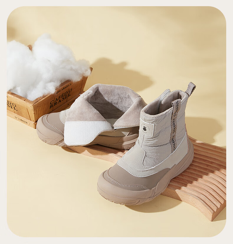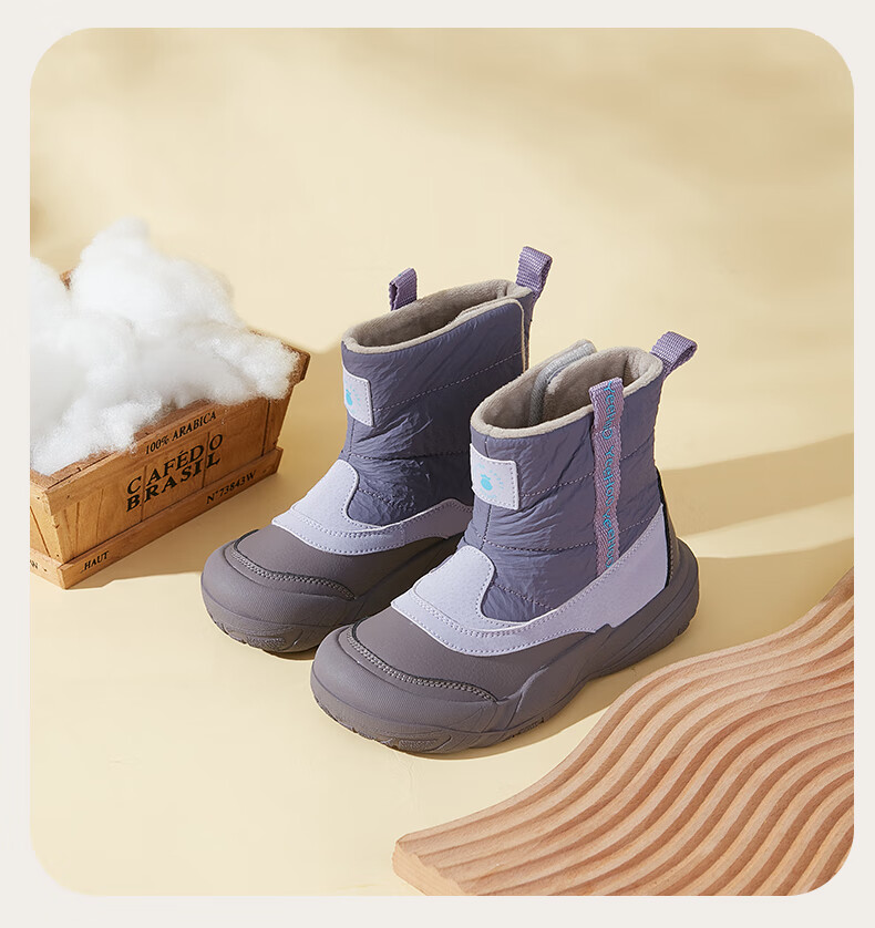 巴布豆巴布豆童鞋女宝宝冬季加绒靴子新款雪地靴男童轻便保暖二棉鞋 咖啡棕 27 适合脚长15.5cm