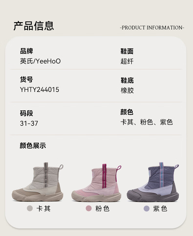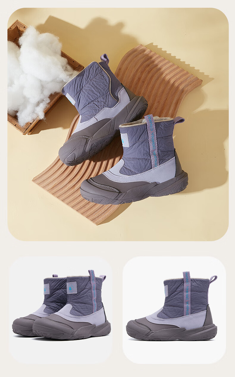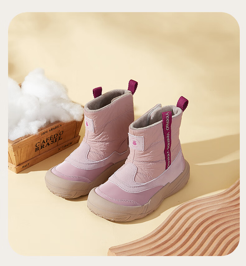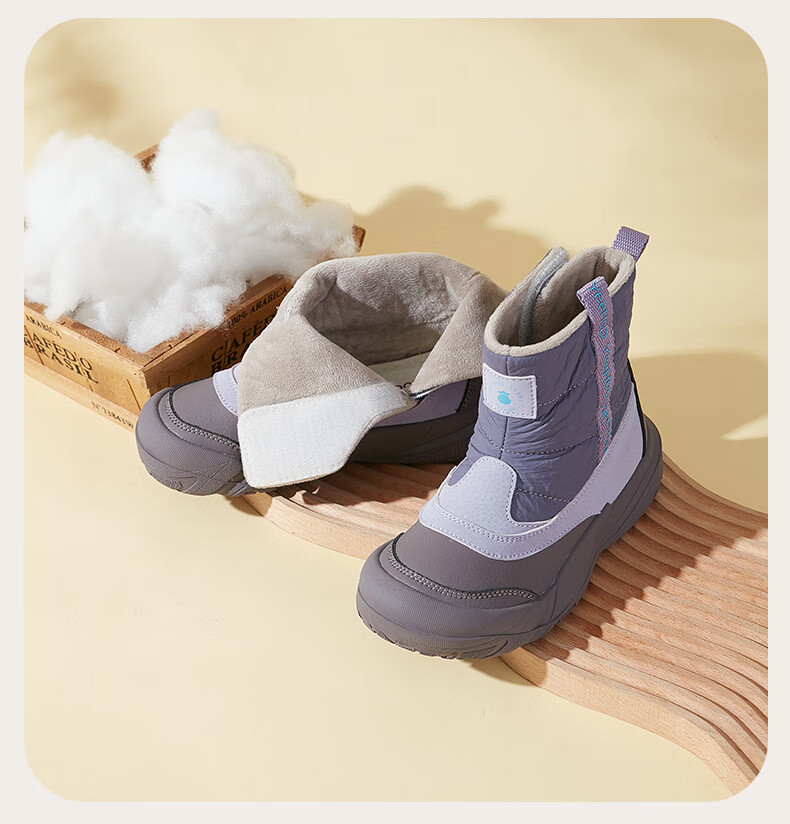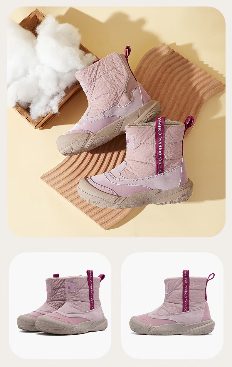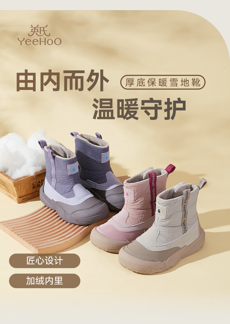 英氏(YEEHOO)童鞋25冬季新款男女童雪地靴加绒加厚中大童童鞋百搭棉靴 紫色 加绒 37