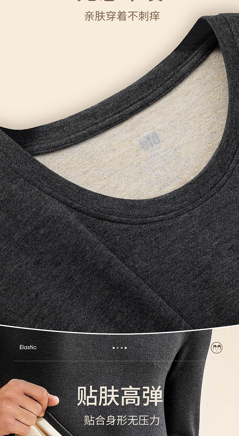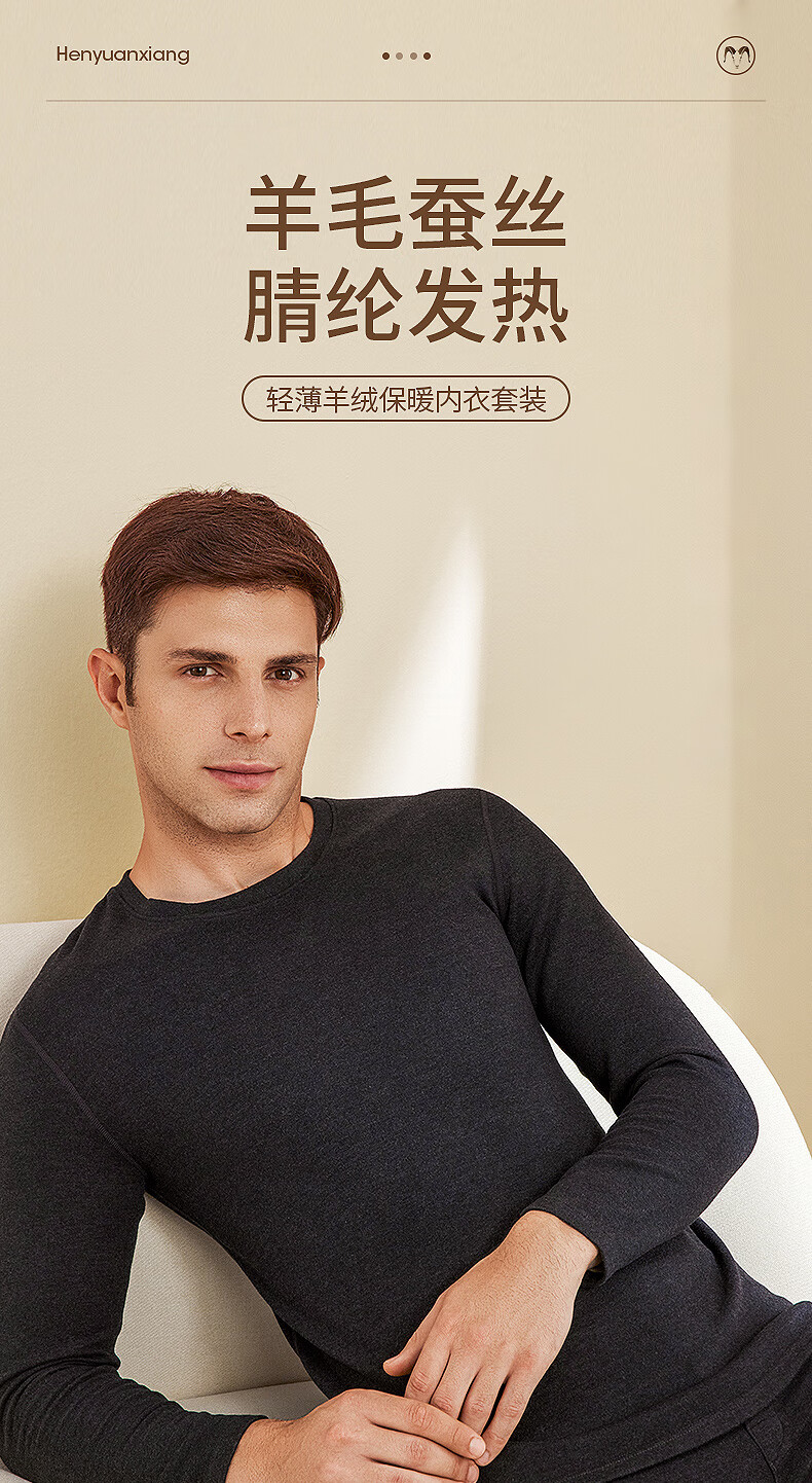 恒源祥男士保暖内衣套装羊毛秋衣秋裤套装冬季加绒加厚内穿打底套装 【羊毛保暖】深灰 L (170/95)
