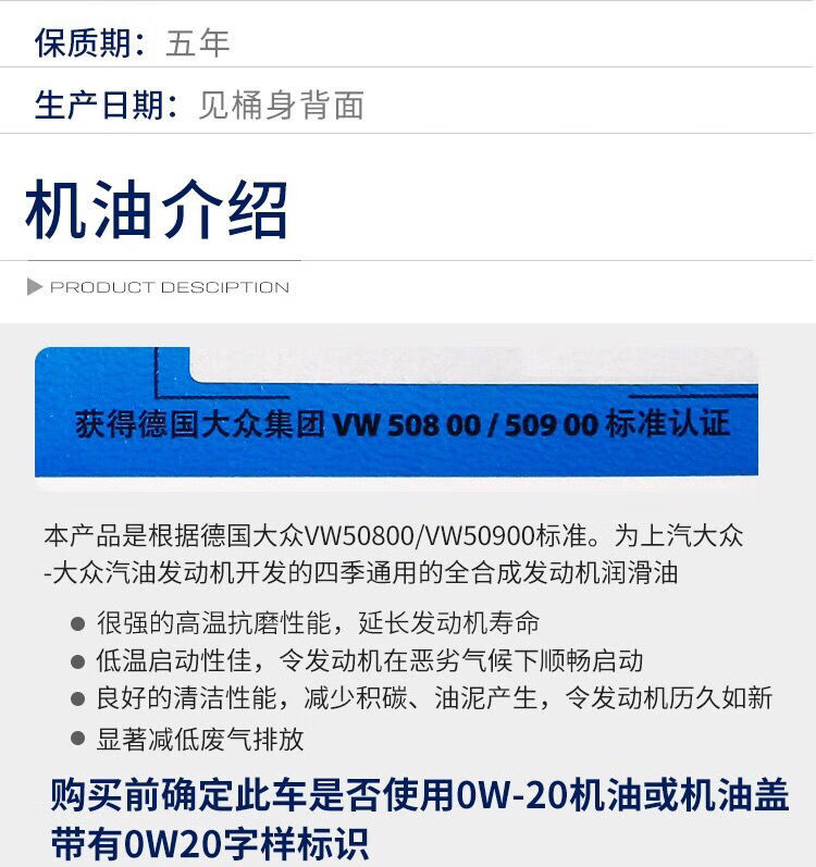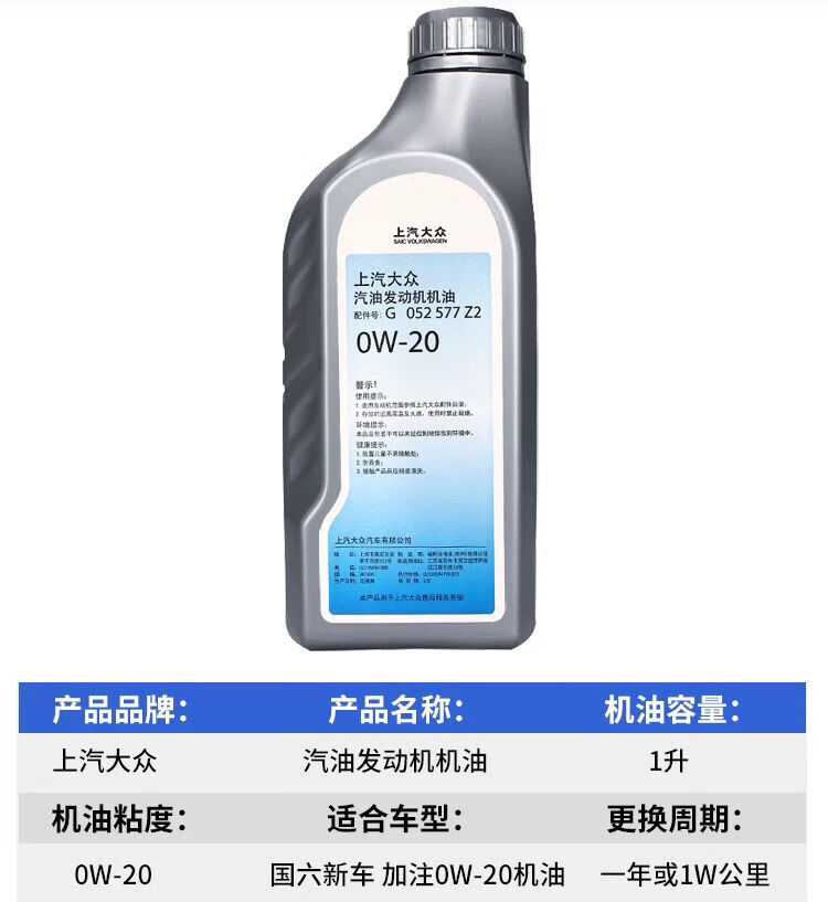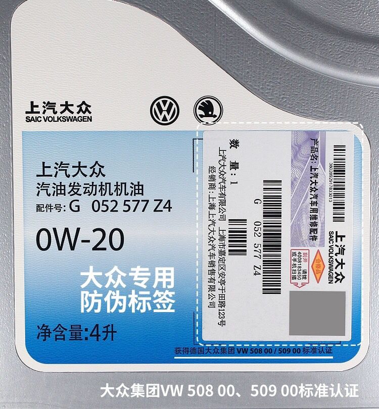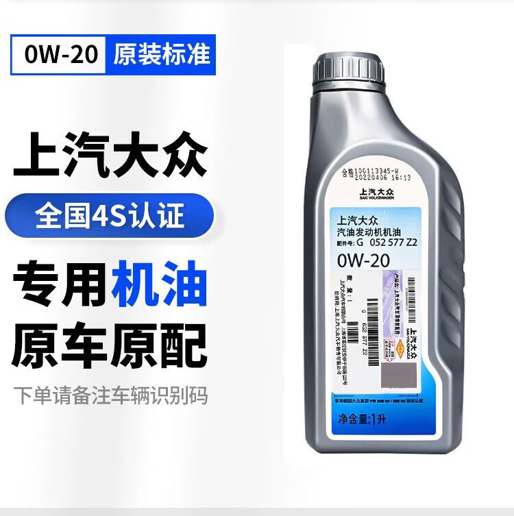 上汽大众上汽大众0W-20全合成迈腾帕萨特途昂X朗逸斯柯达国六蓝油原厂机油 0w20 5升装 送机滤