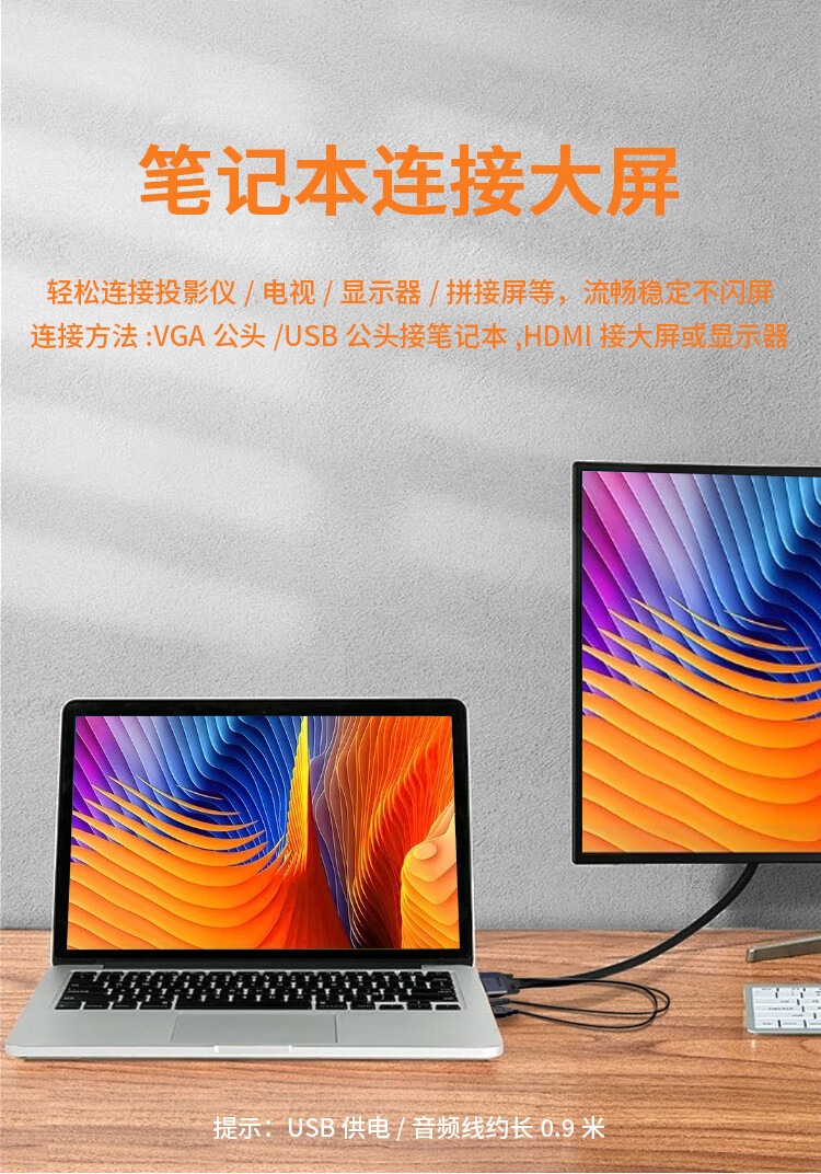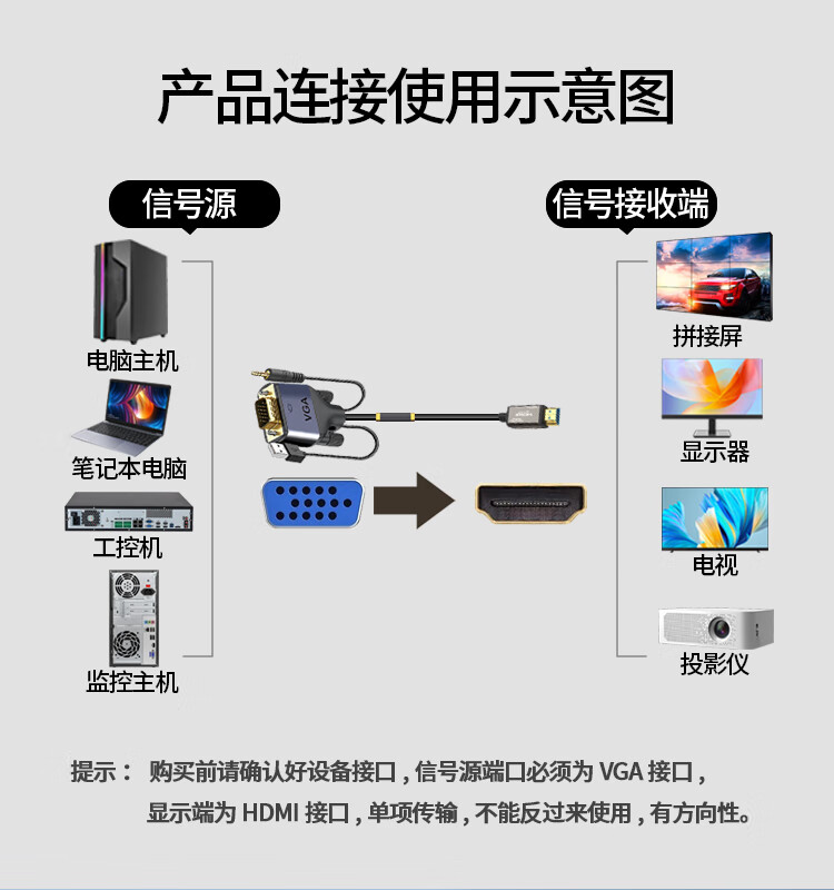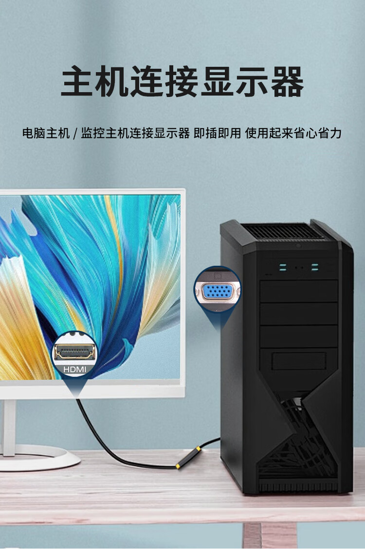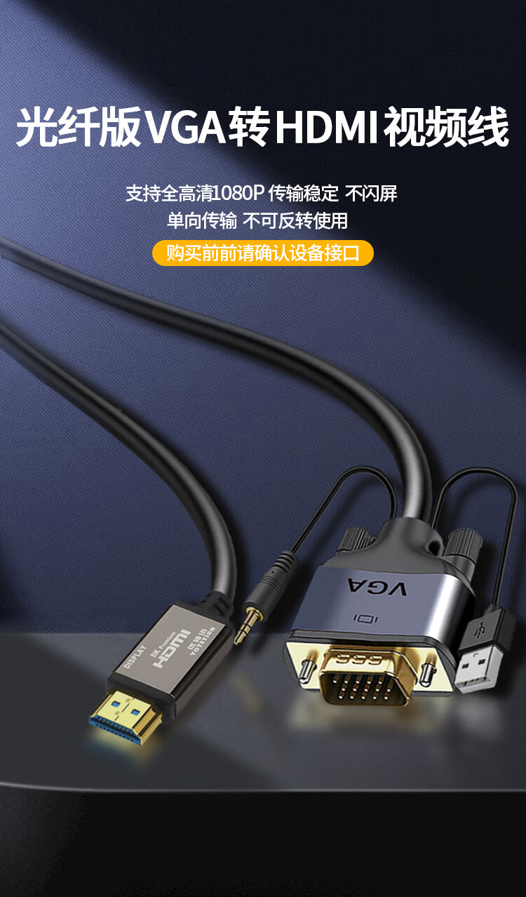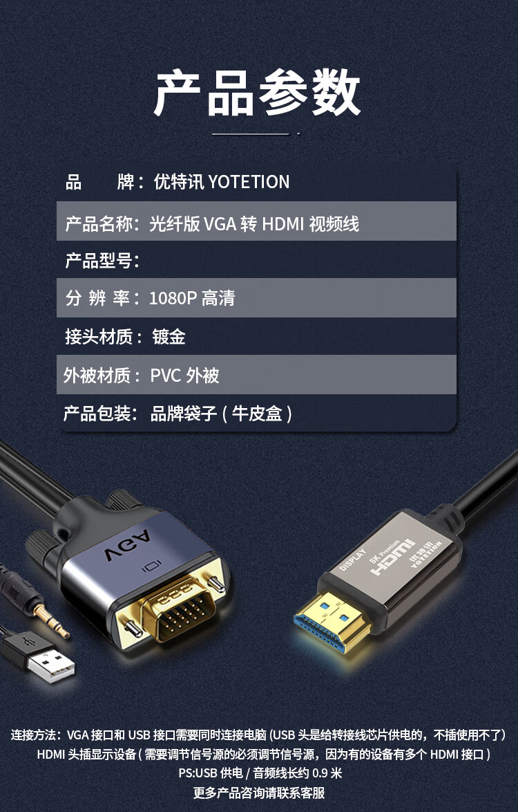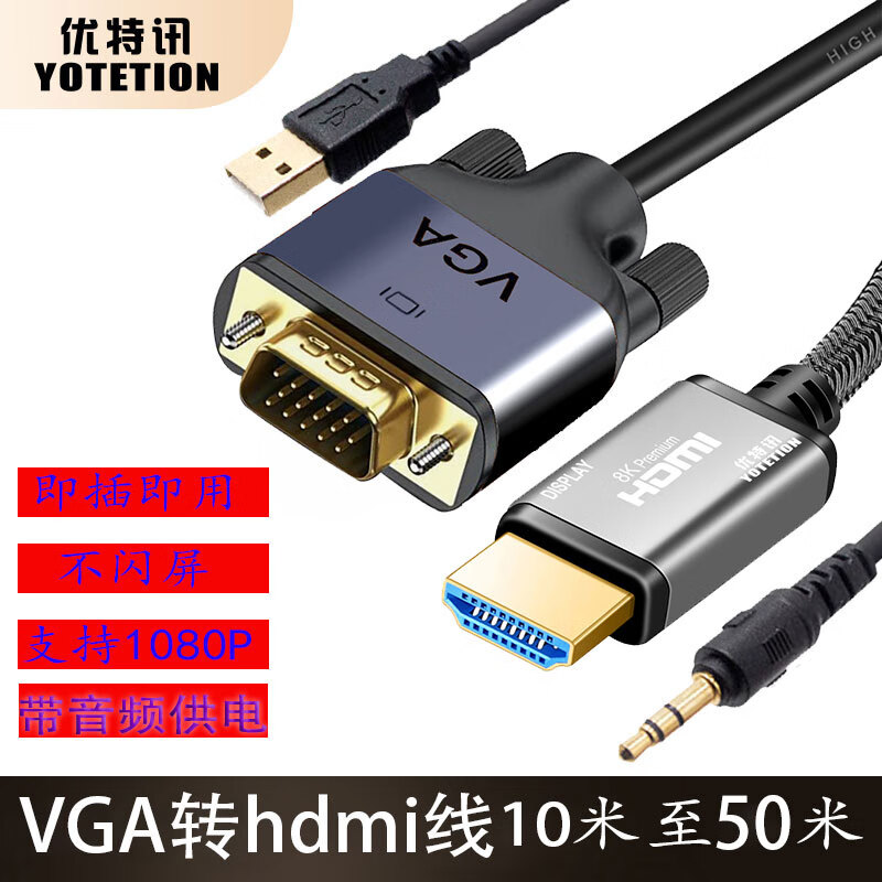 优特讯(YOTETION) VGA转hdmi线 台式机监控主机笔记本电脑工控机连接线电视显示器拼接屏视频线 长距离稳定 光纤版 VGA转hdmi线光纤版 40米
