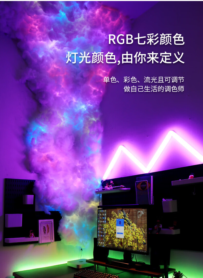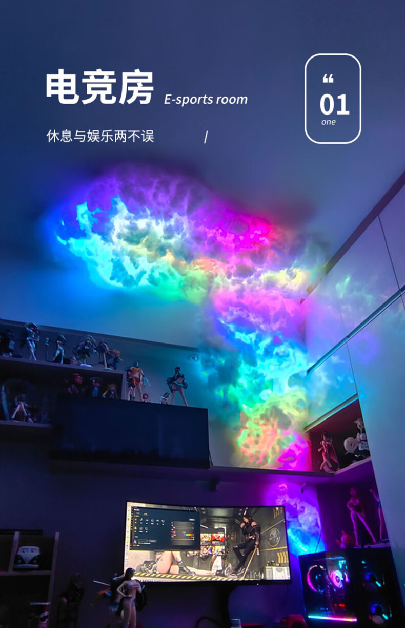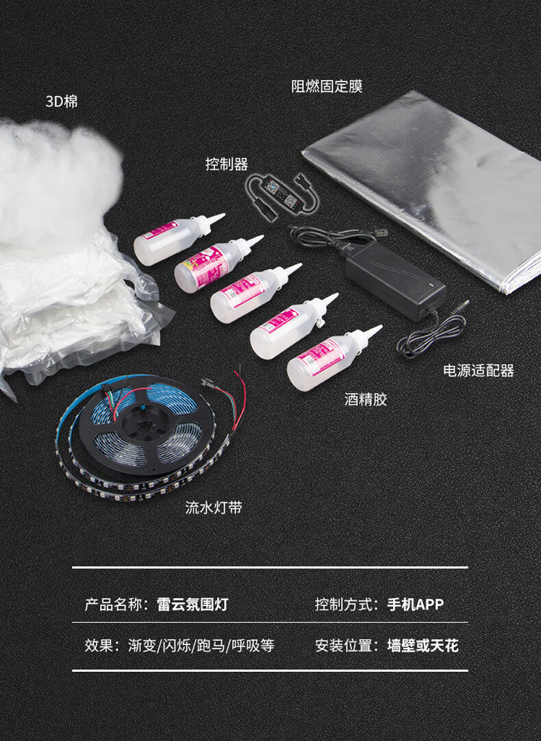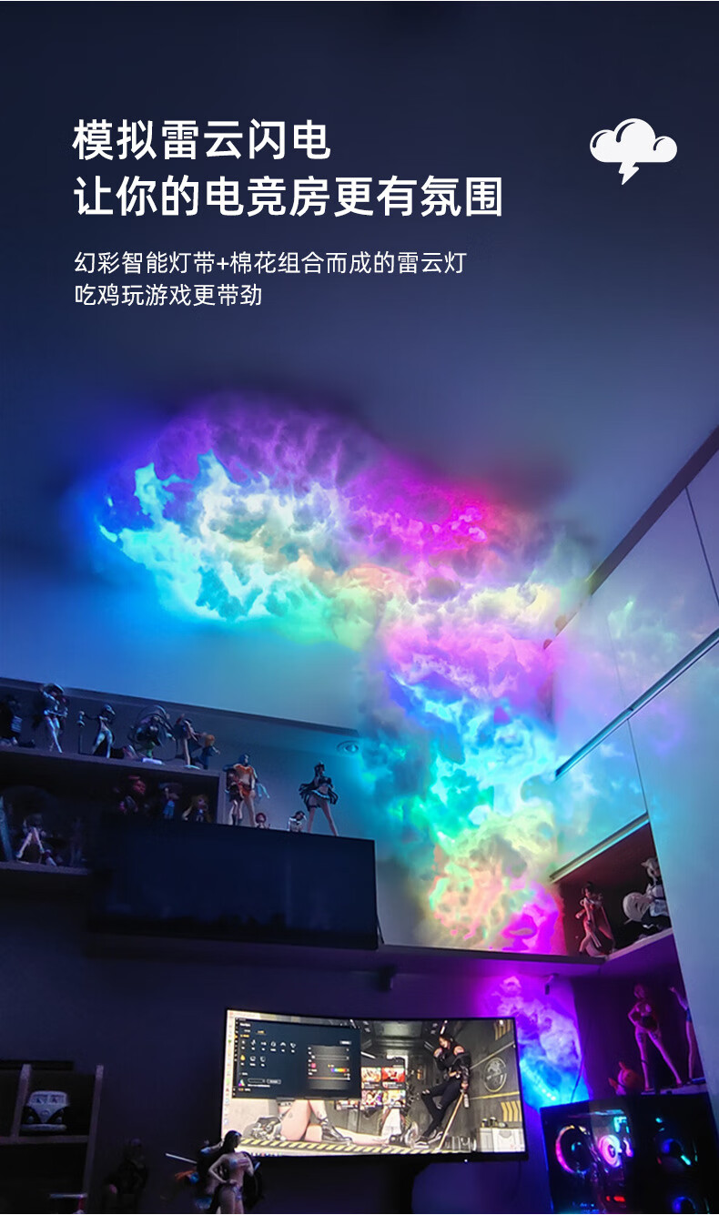 维亿曼雷云闪电氛围灯雷云灯暴雨灯电竞装饰灯酒吧KTV星空投影灯剧本杀 APP10米款-推荐6-8平方USB款