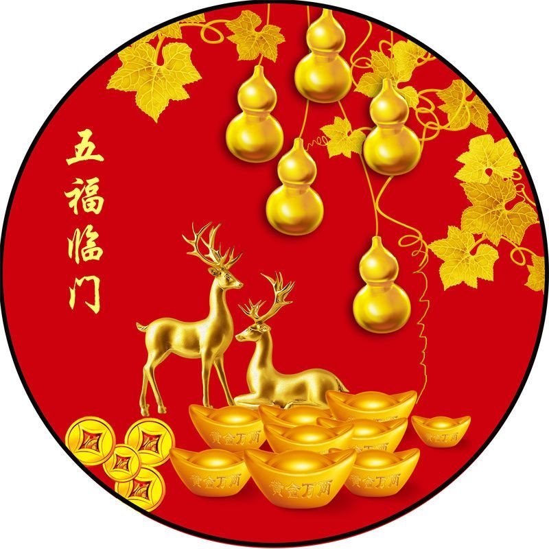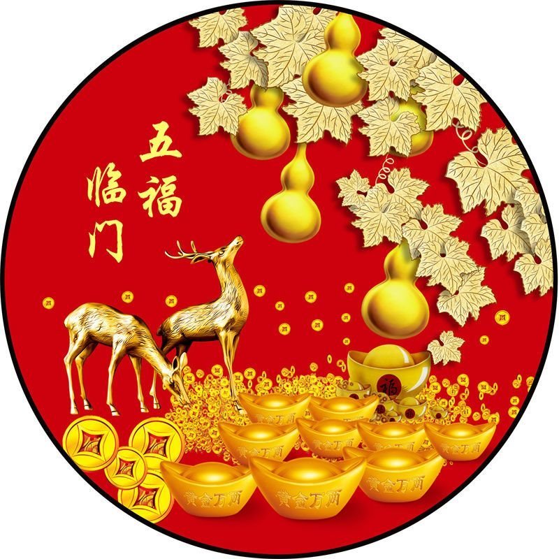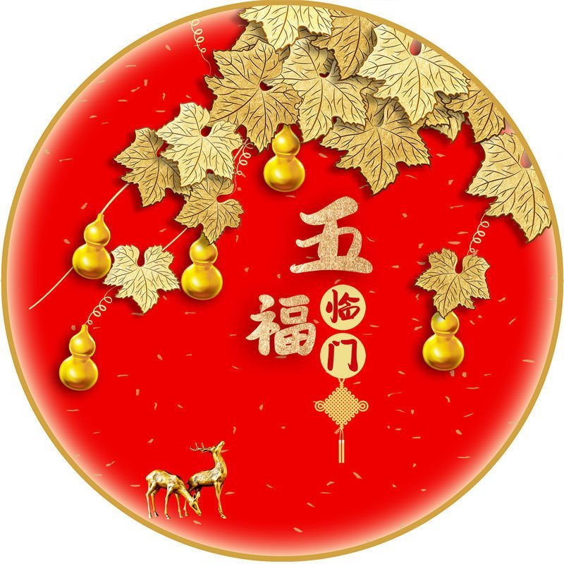 福字贴风水2025年圆形福字贴乔迁新居过年镇宅风水福字门贴防水福 五福临门02 圆直径60cm