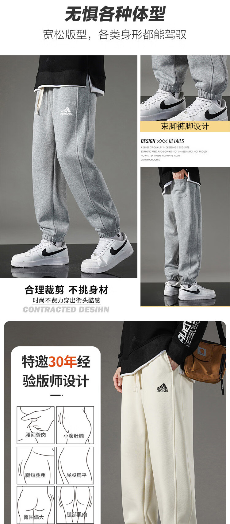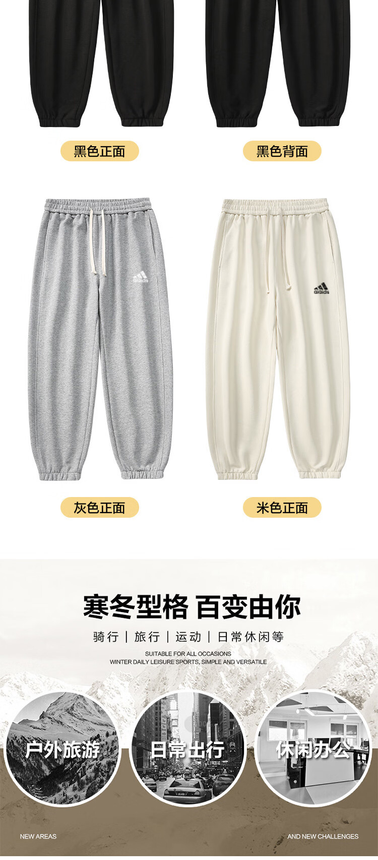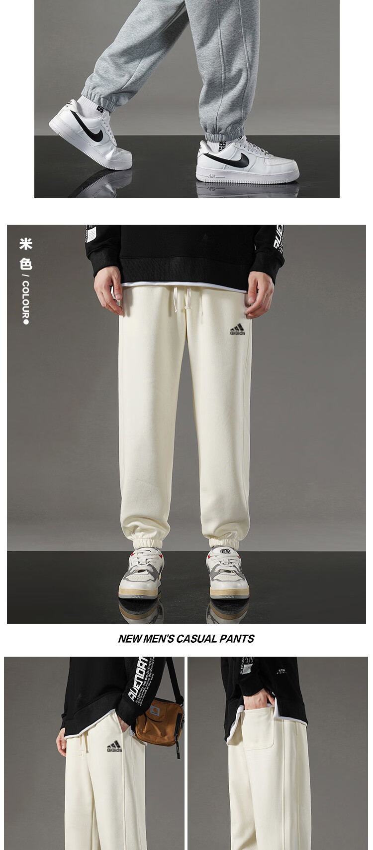 正品阿迪裤子男士秋冬季2025年新款跑步休闲加绒加厚裤运动长裤 A821米色(加绒款) 5XL (适合195-220斤)