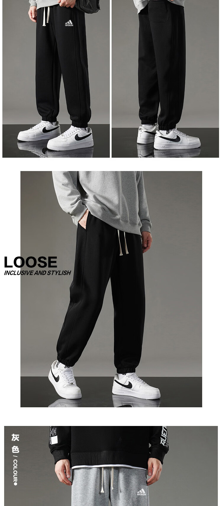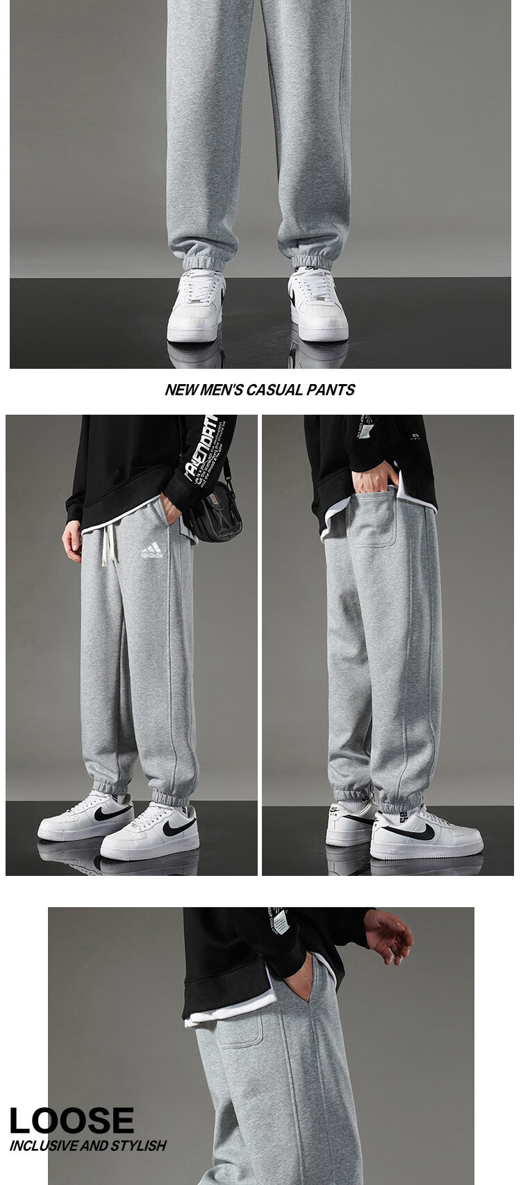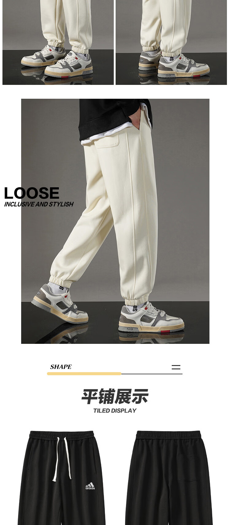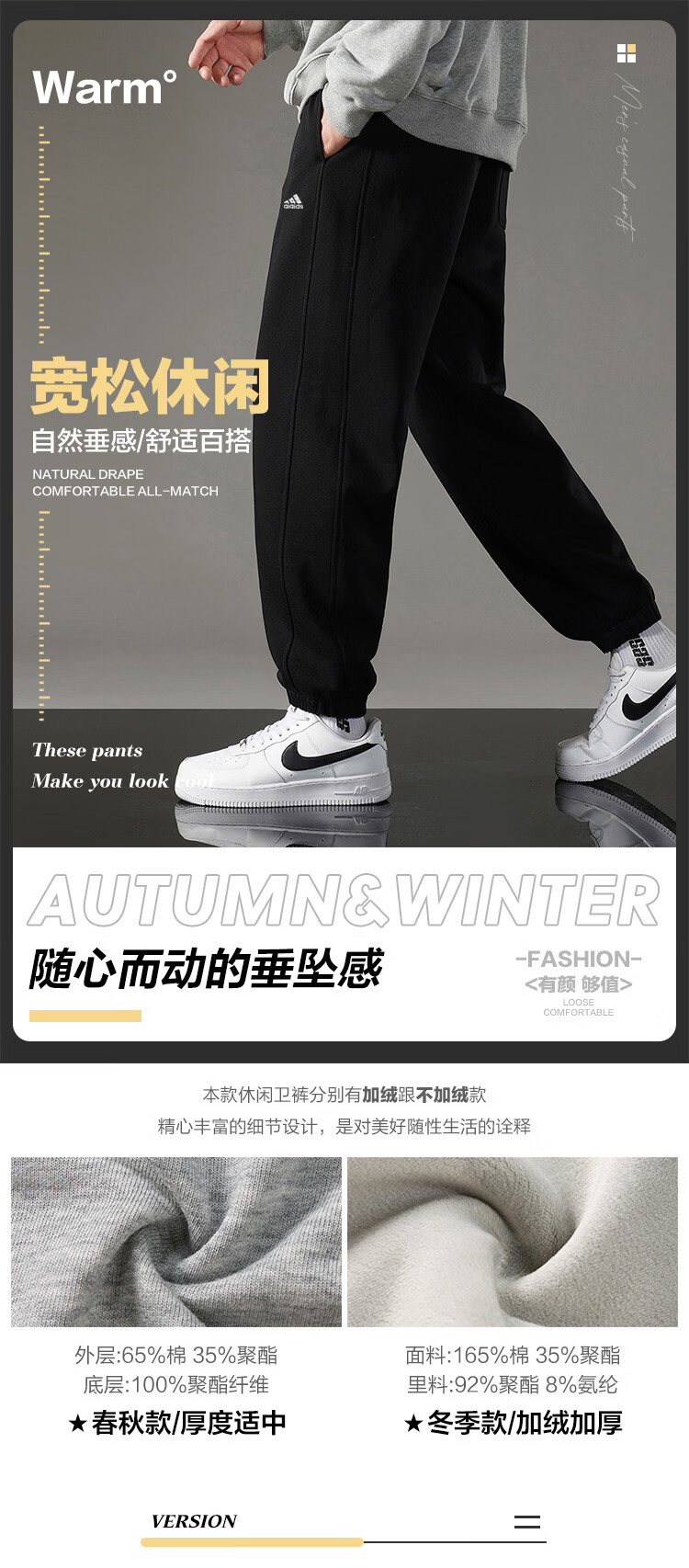 正品阿迪裤子男士秋冬季2025年新款跑步休闲加绒加厚裤运动长裤 A821米色(加绒款) 5XL (适合195-220斤)