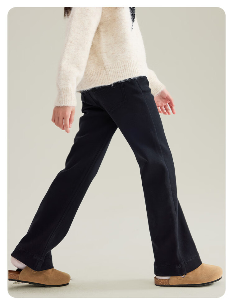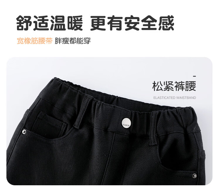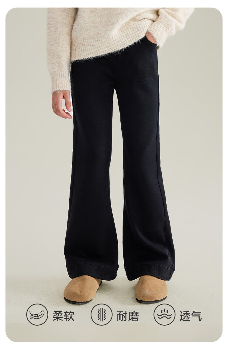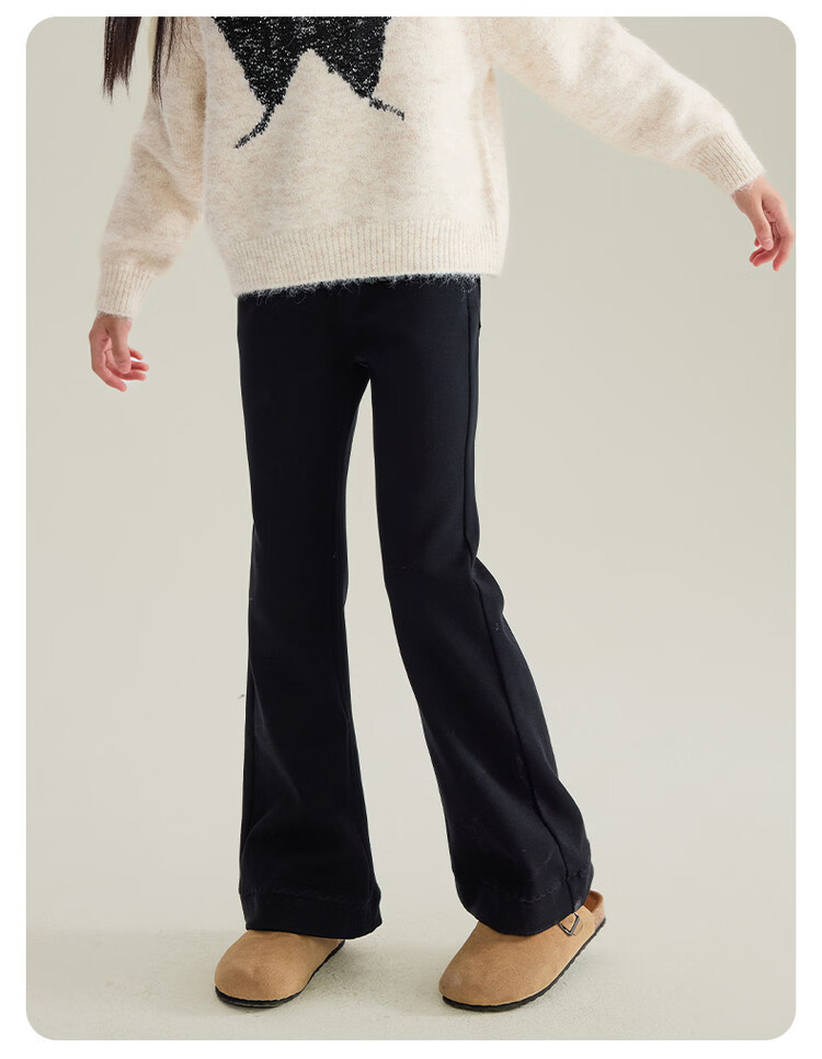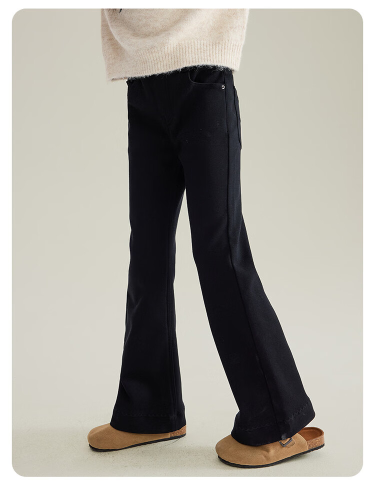 媛媛公主女童加绒休闲裤秋冬新款儿童裤子中大童百搭高弹仿牛仔长裤喇叭裤 黑色 110