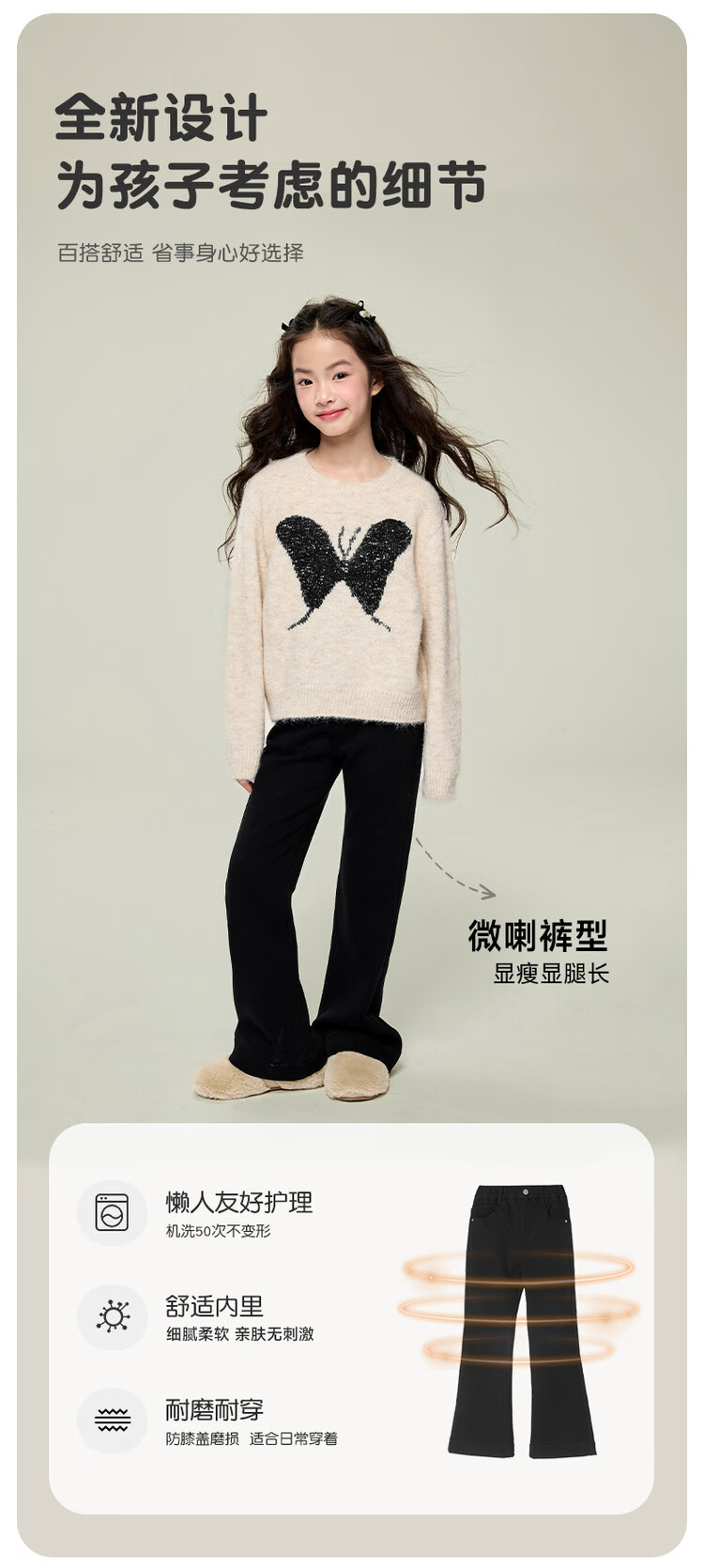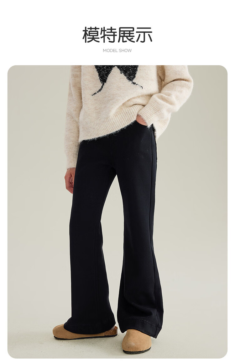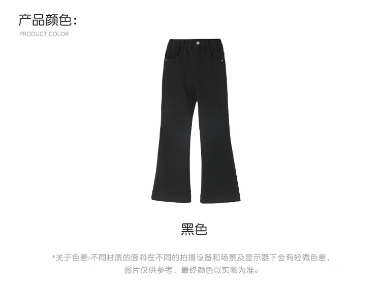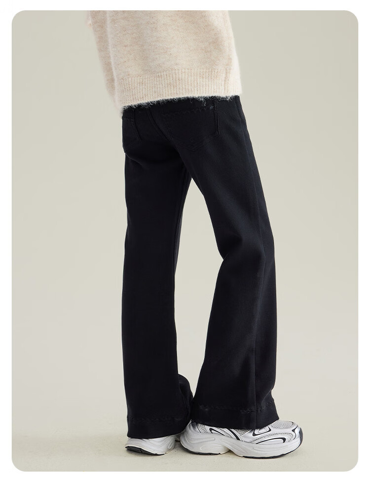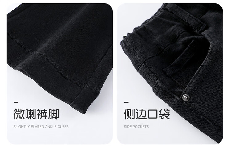 媛媛公主女童加绒休闲裤秋冬新款儿童裤子中大童百搭高弹仿牛仔长裤喇叭裤 黑色 110