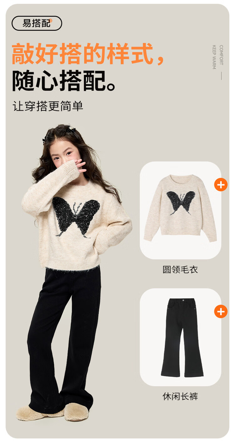 栀了成长记童装女童小香风套装2025冬季儿童蝴蝶结亮片夹棉两件套 粉色 套装 110 cm