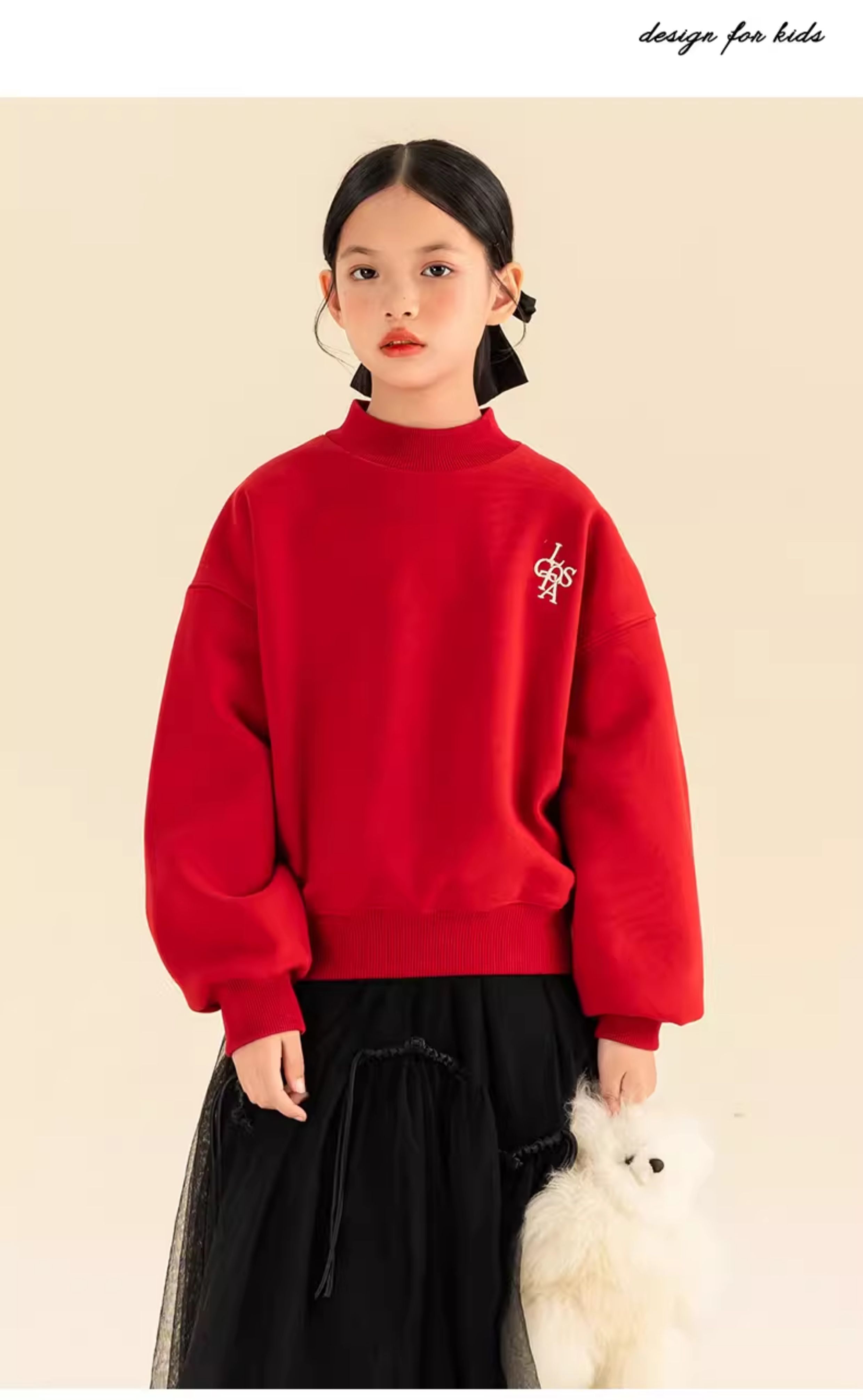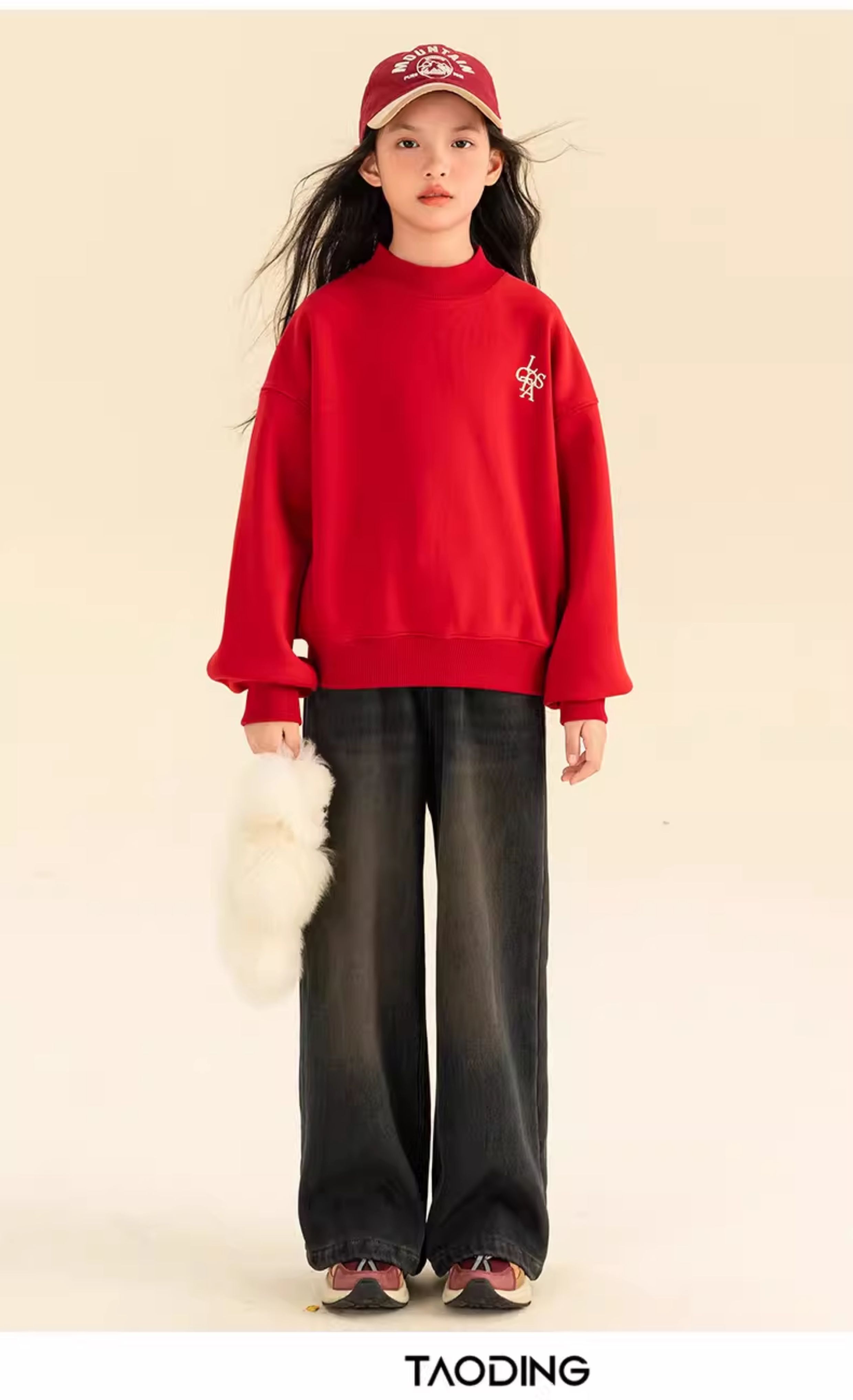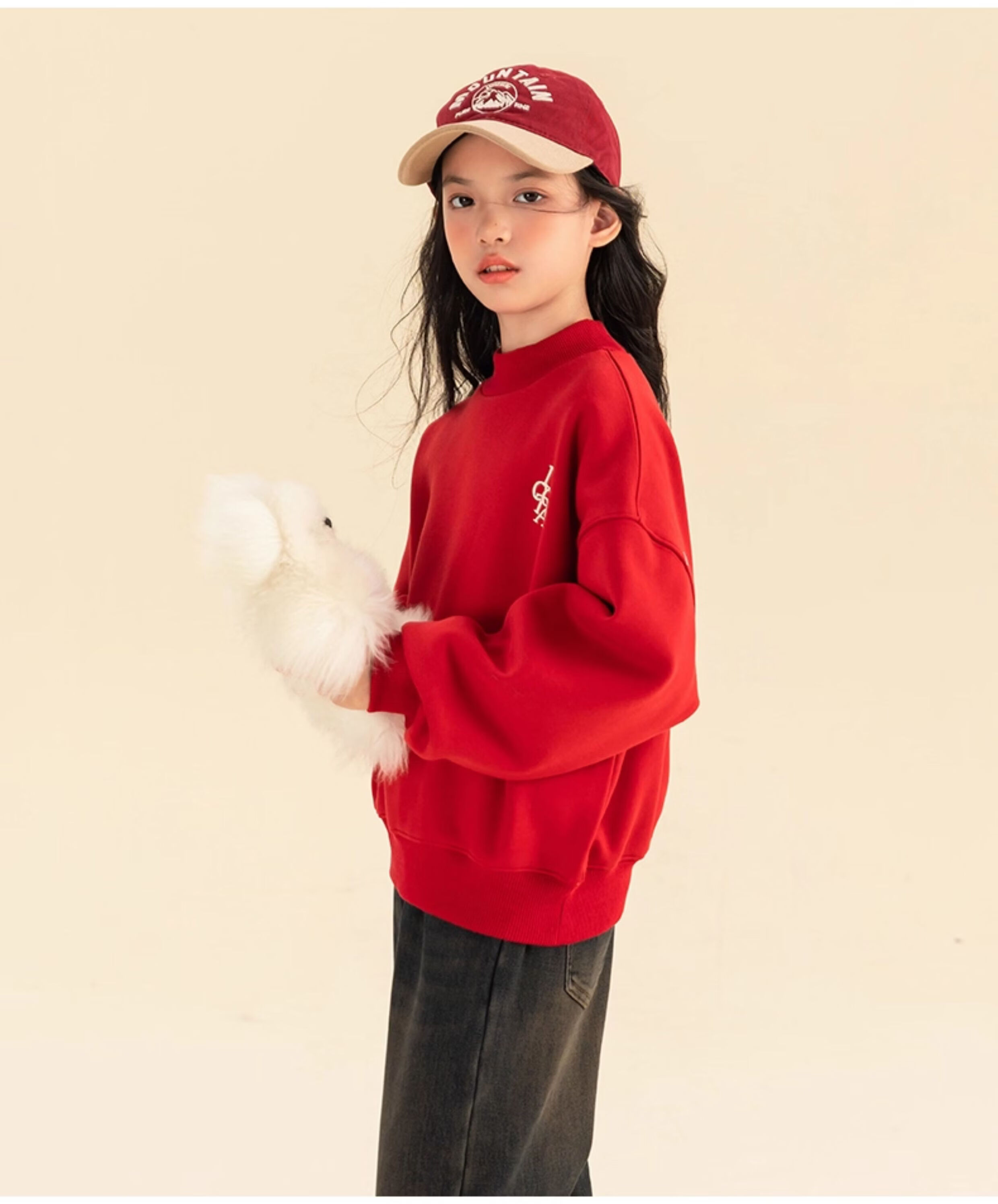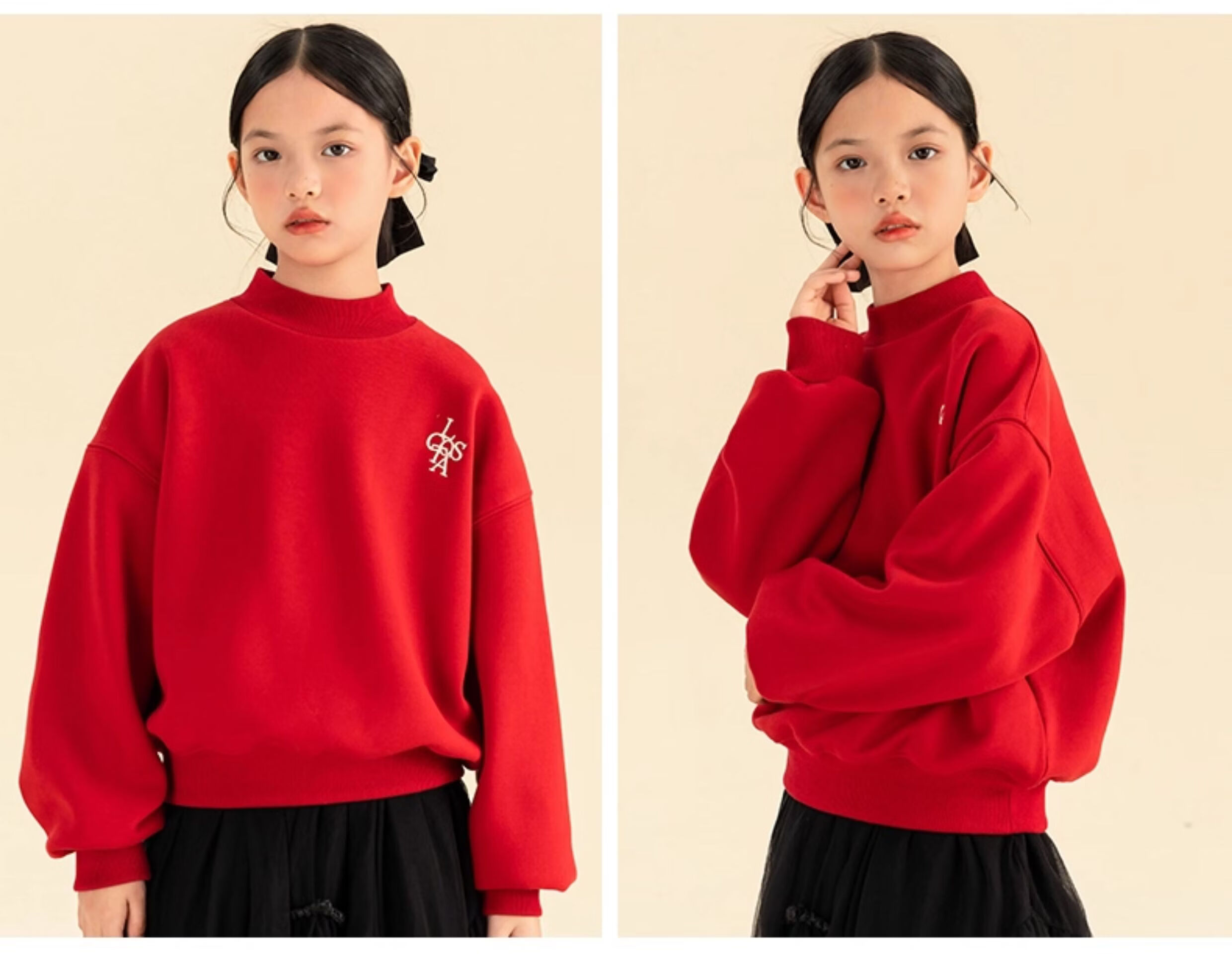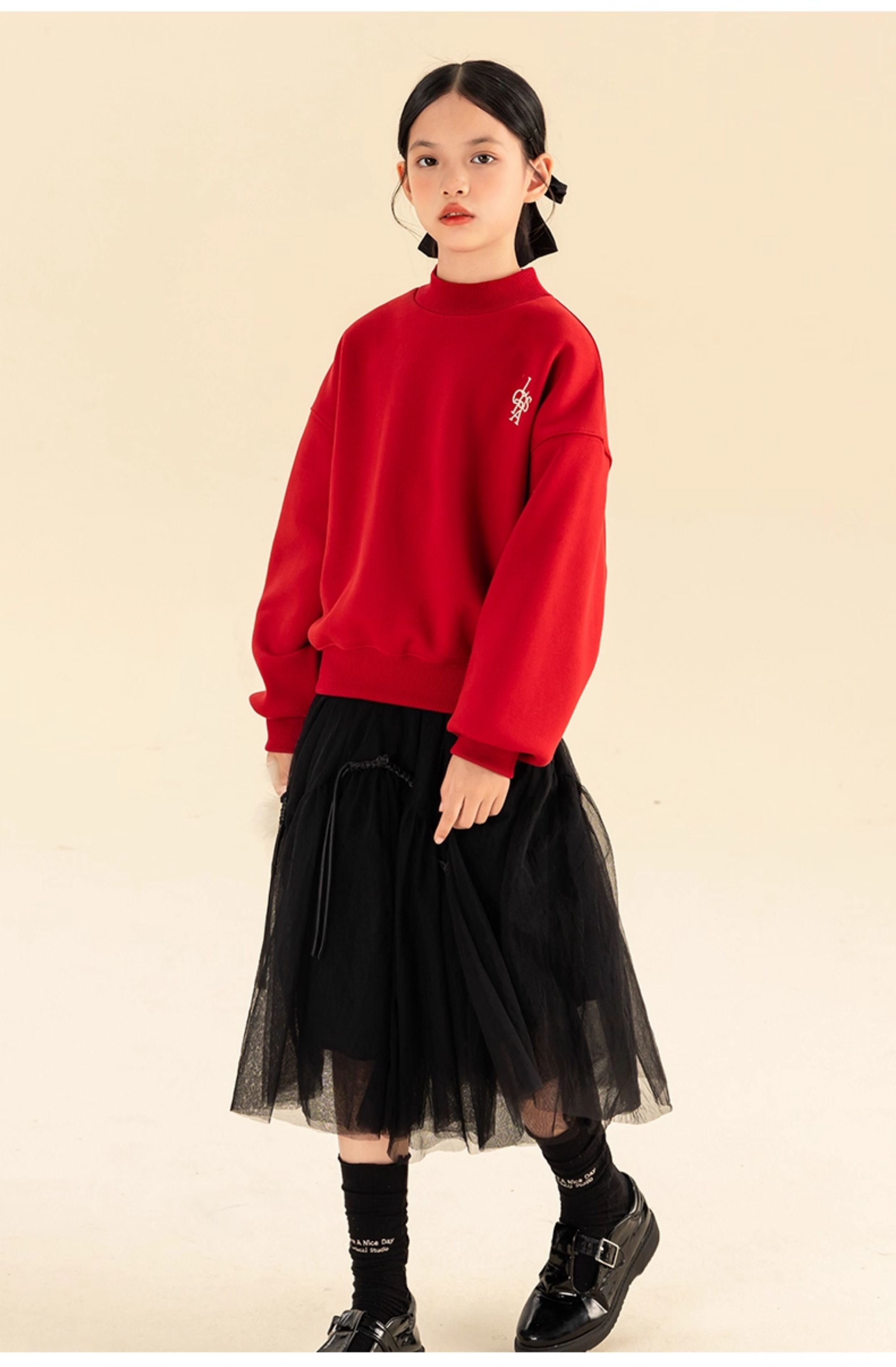 淘町女童卫衣一体绒秋冬新款中大童休闲百搭字母红色加绒高领打底 中国红 110