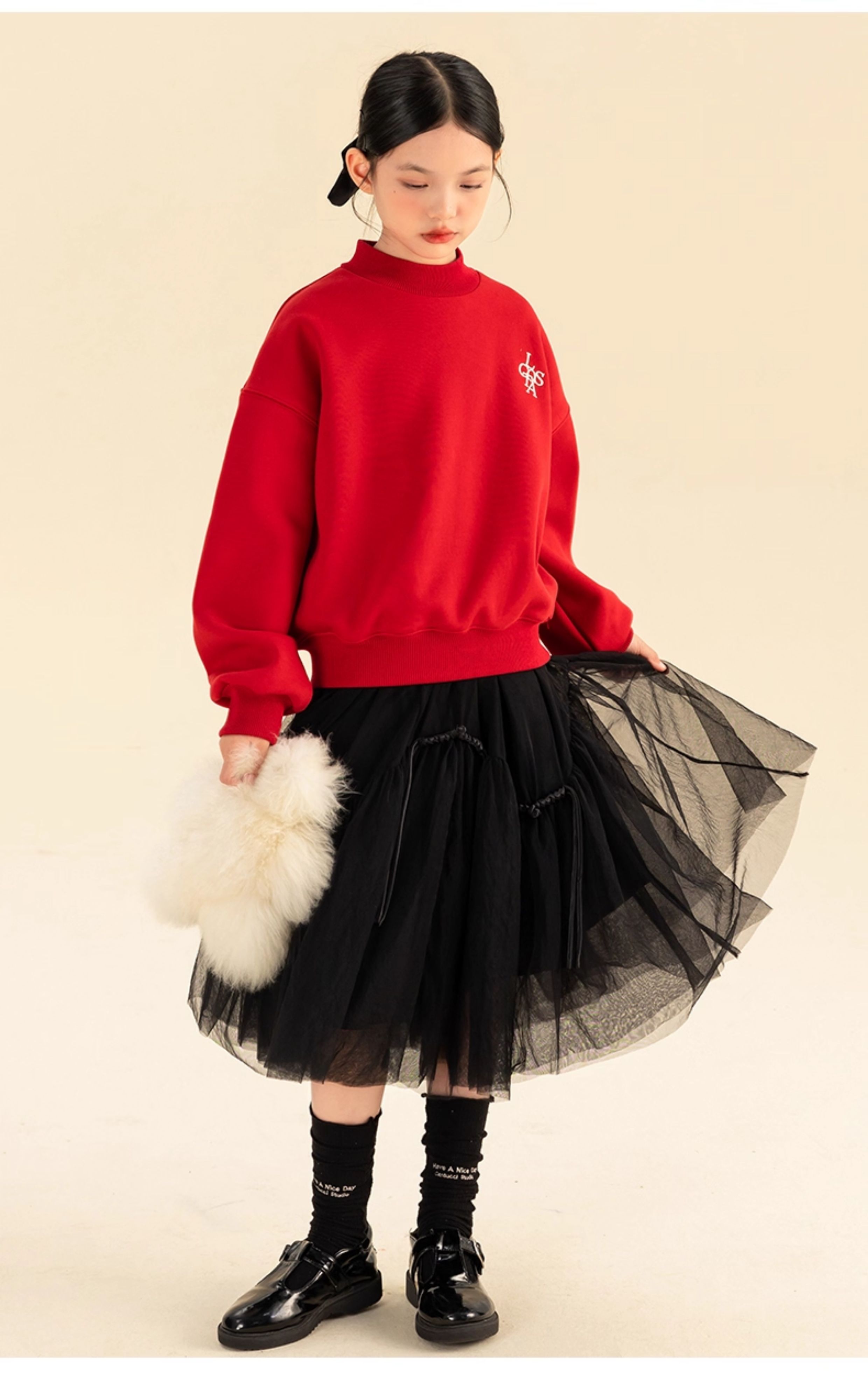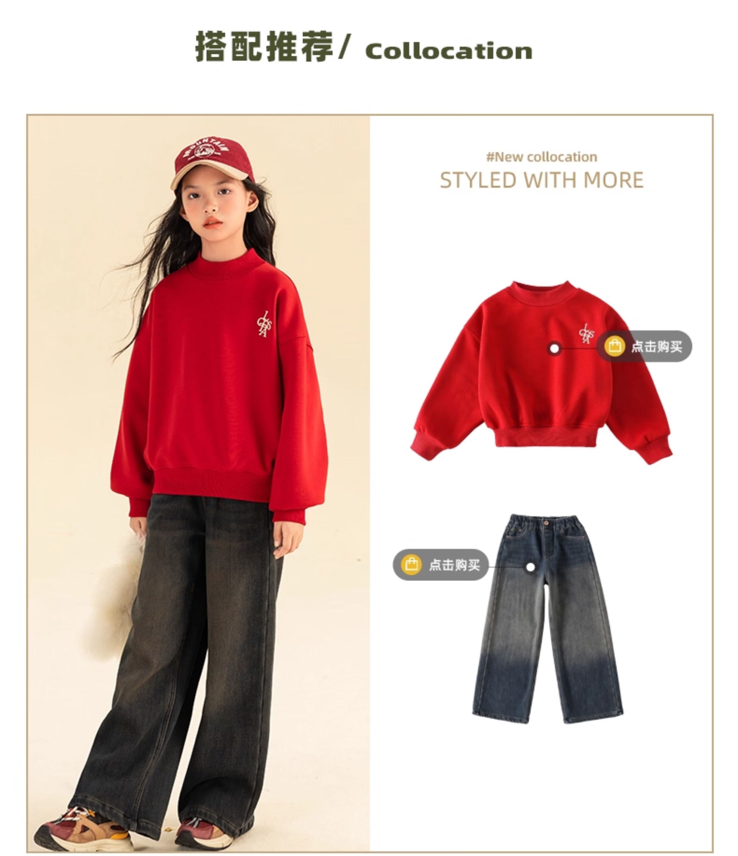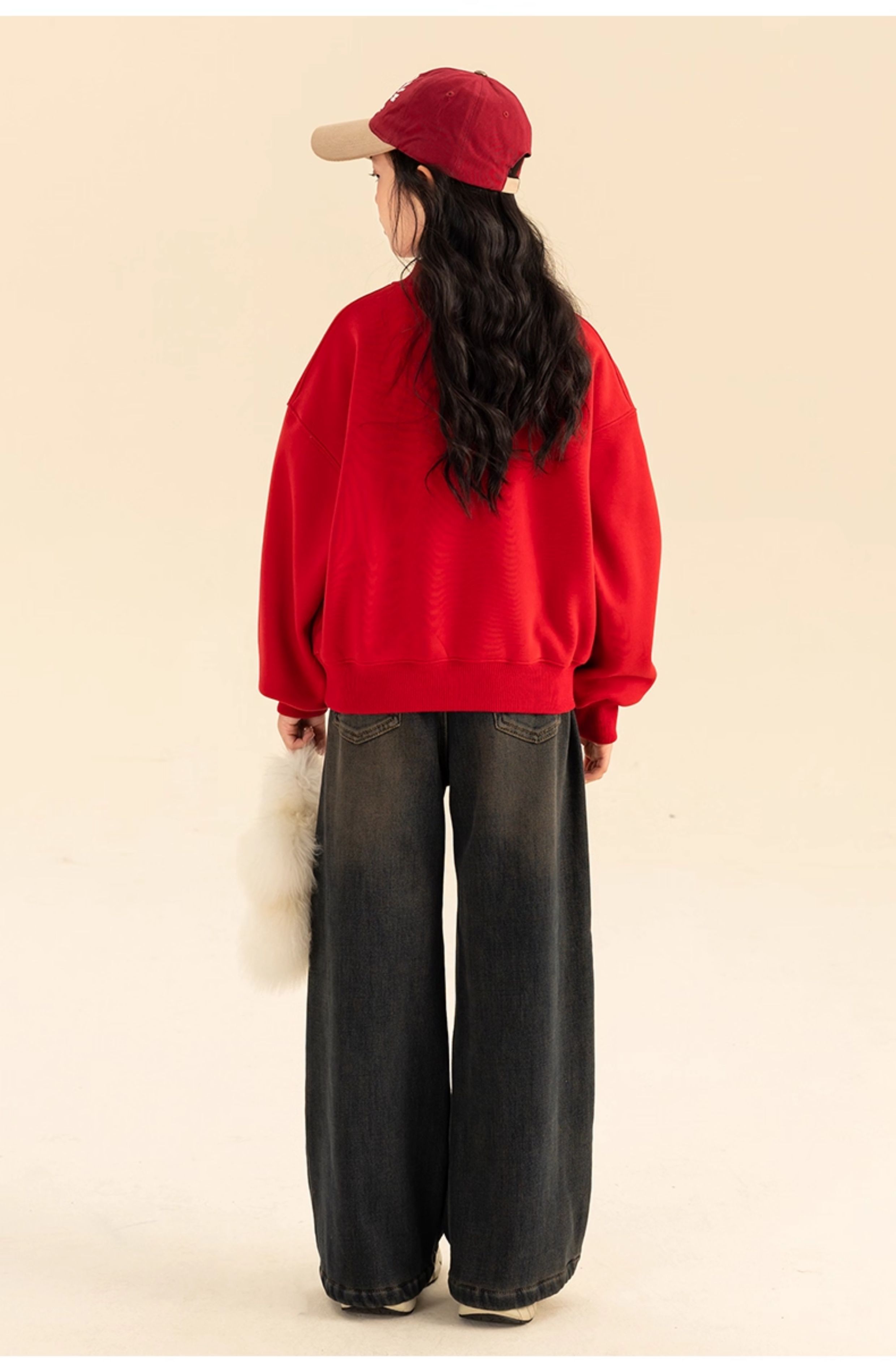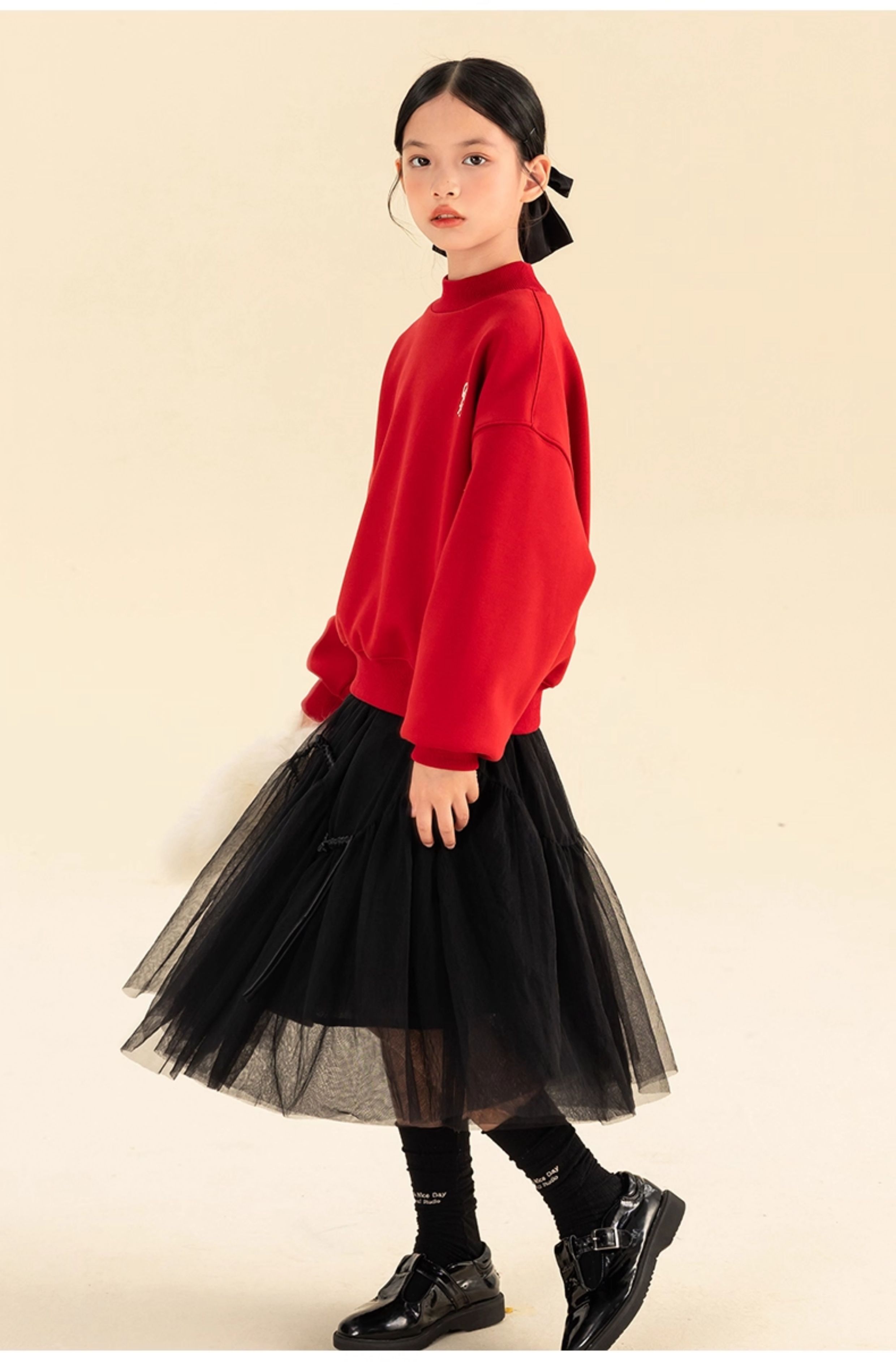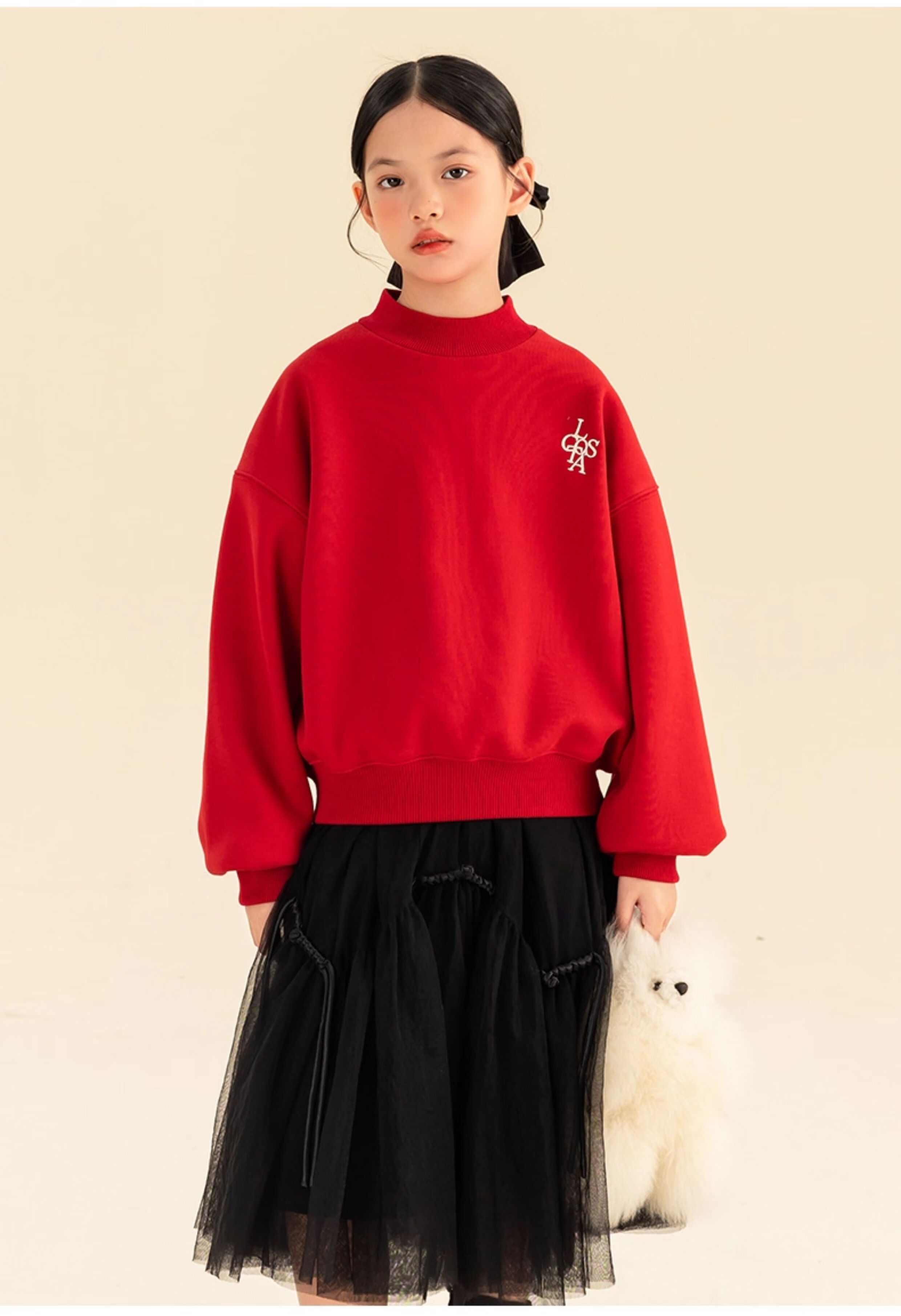 淘町女童卫衣一体绒秋冬新款中大童休闲百搭字母红色加绒高领打底 中国红 110