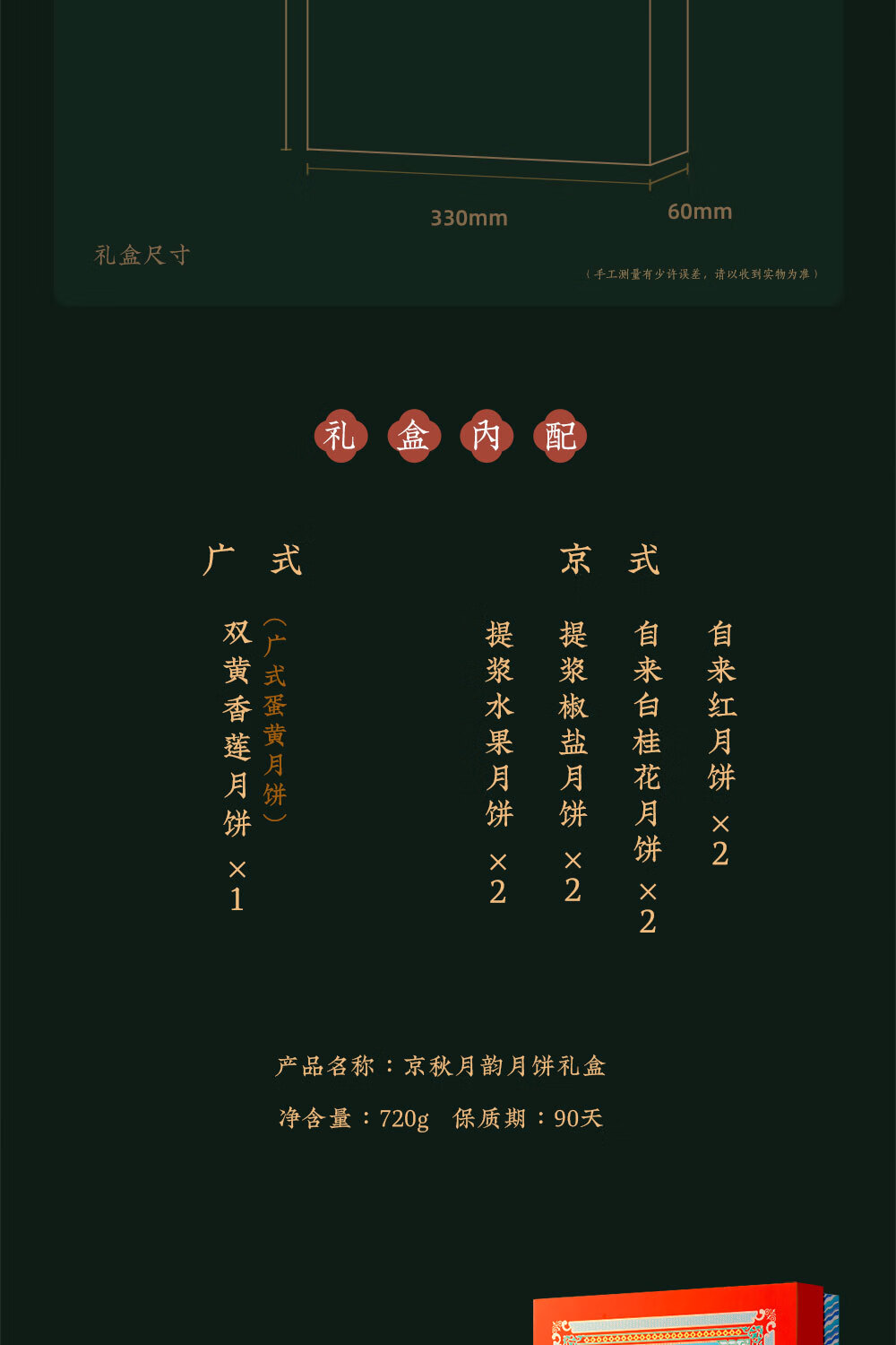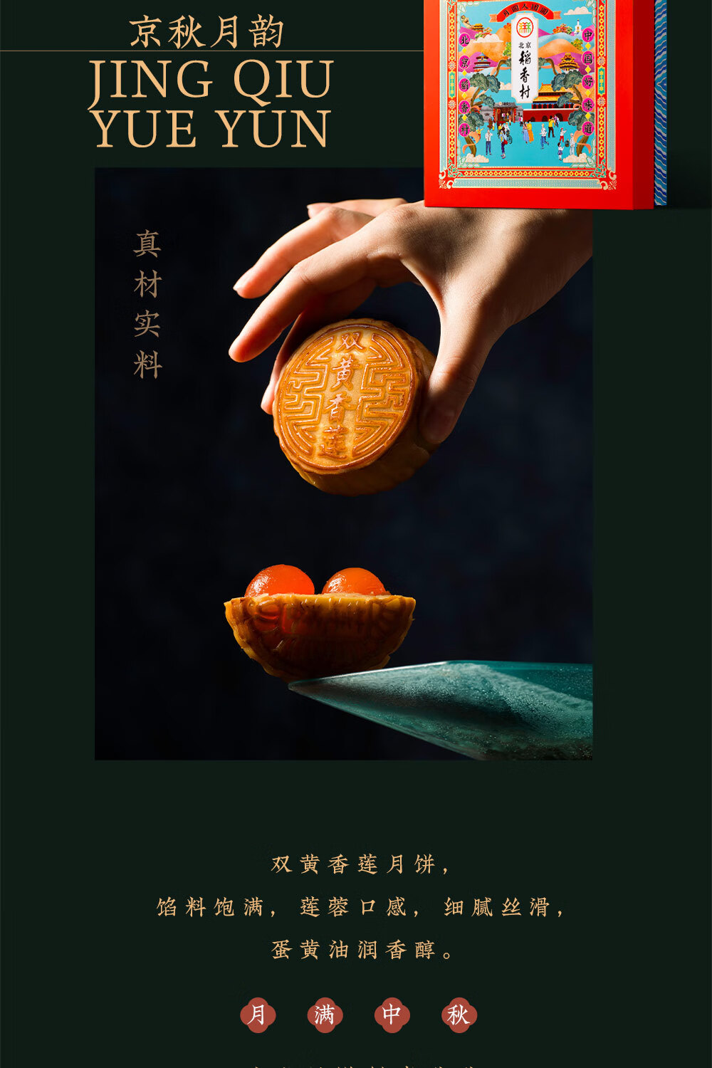 北京稻香村中秋月饼礼盒中华老字号广式双黄香莲京式月饼企业团购员工福利 京秋月韵720g