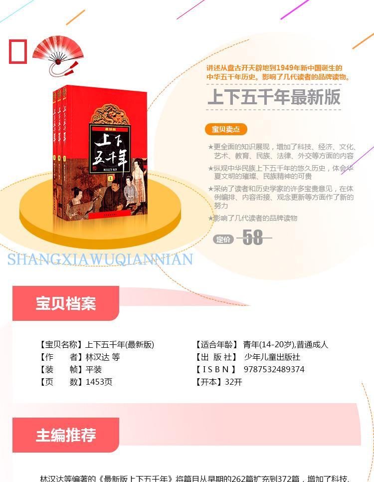 上下五千年儿童版全套3册 林汉达 著 原著上中下完整青少年小学生版儿童文学课外阅读书籍6-14岁 新华正版