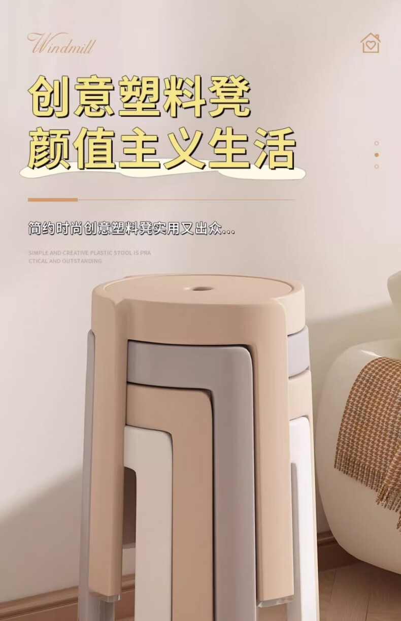 九千谷椅子出租房不占空间轻奢高级塑料凳子简易客厅家用小型餐桌凳4215