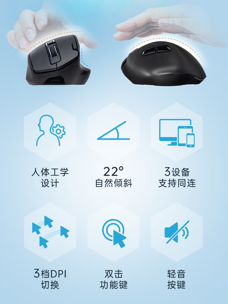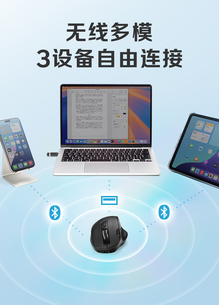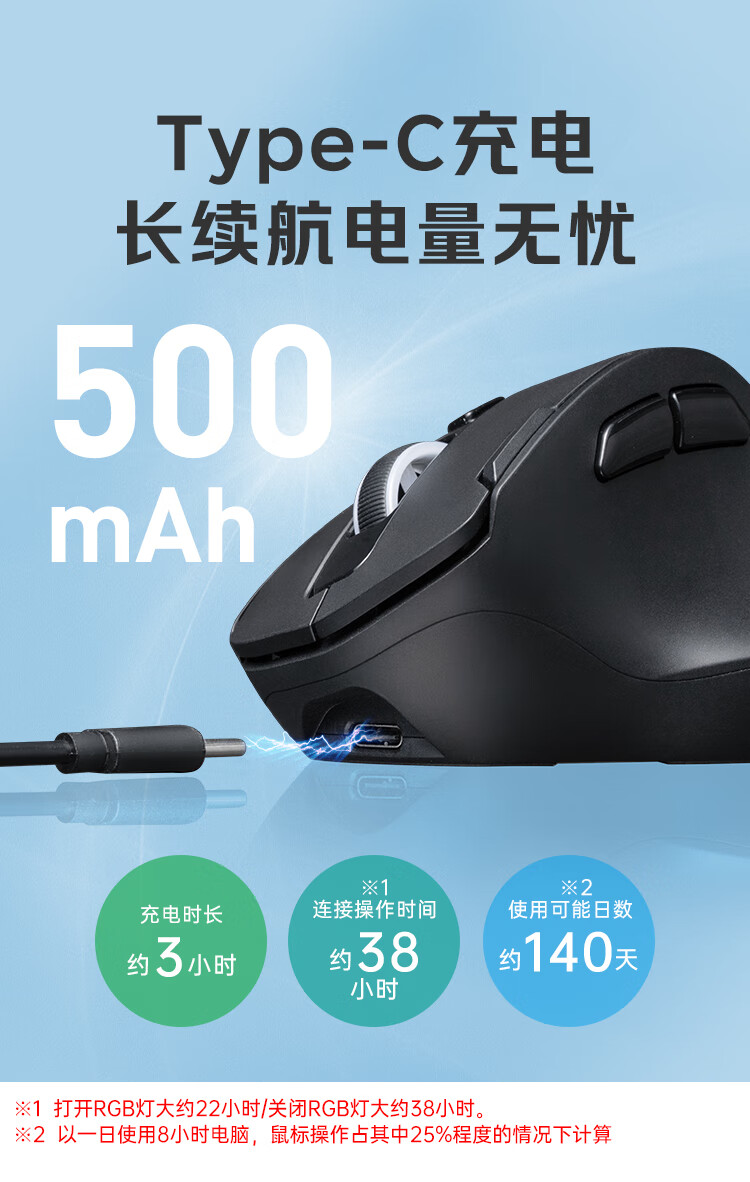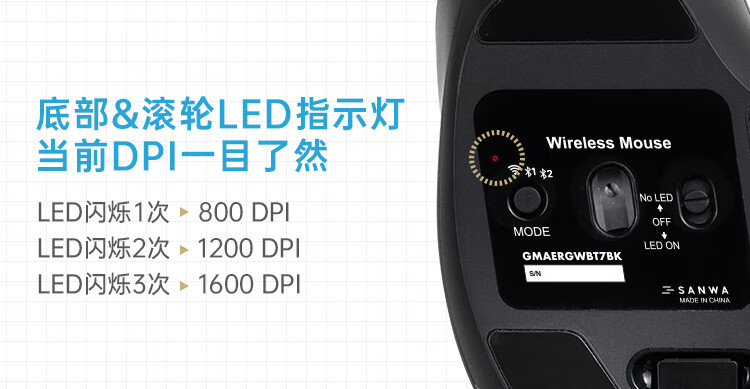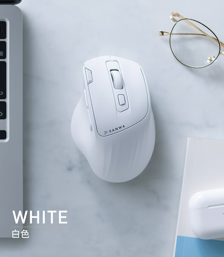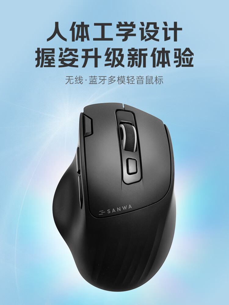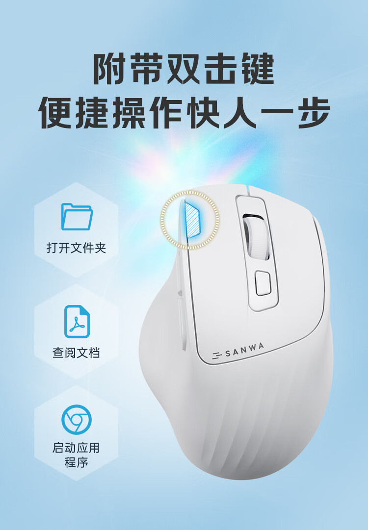 SANWA SUPPLY人体工学无线鼠标 垂直竖握 无线蓝牙双模 尾翼RGB氛围灯 静音按键 中手适用 附老板键 自定义按键