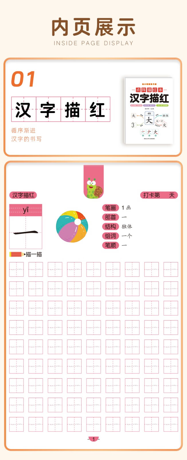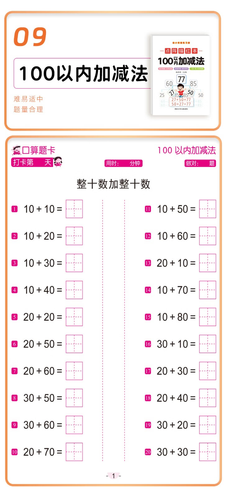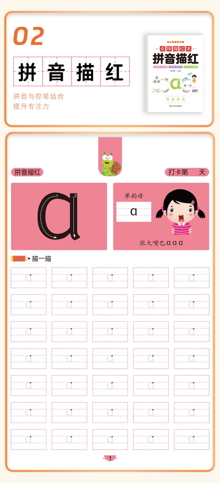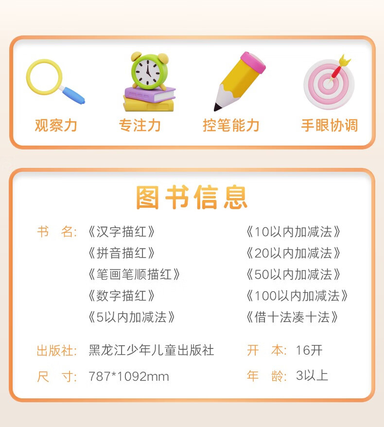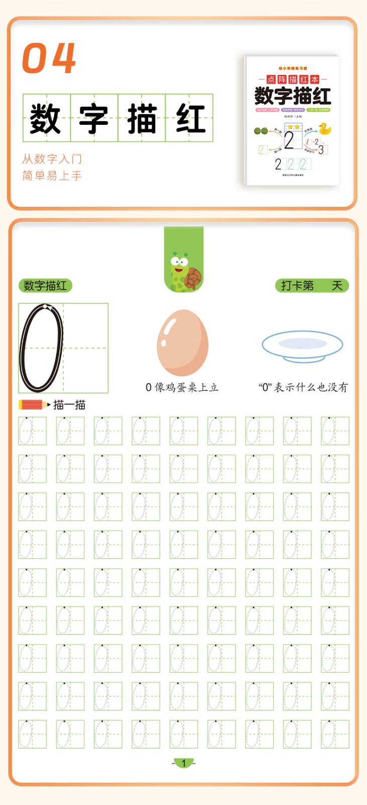 幼小衔接描红天天练借十法凑十法10以内20以内加减法幼儿园点阵描红本拼音汉字笔画数字描红临摹写字 幼小衔接天天练【全8册】62页/本