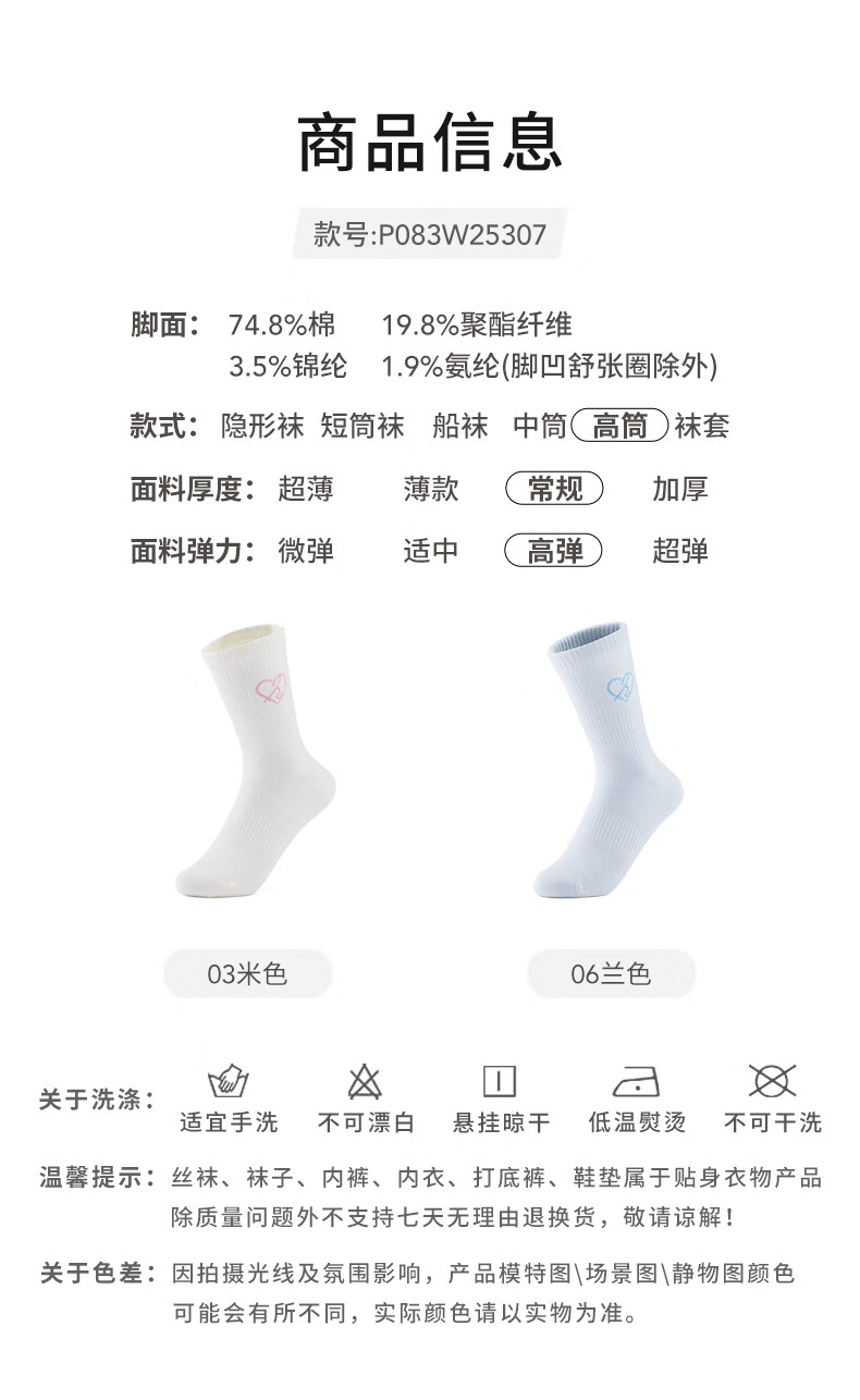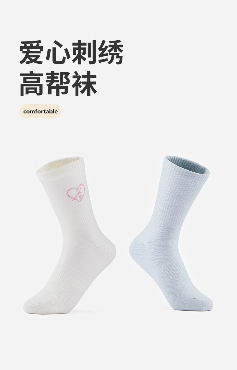 热风(Hotwind)【商场同款】女士高帮袜2025年秋季新款爱心刺绣户外运动袜子 06兰色 1双 均码