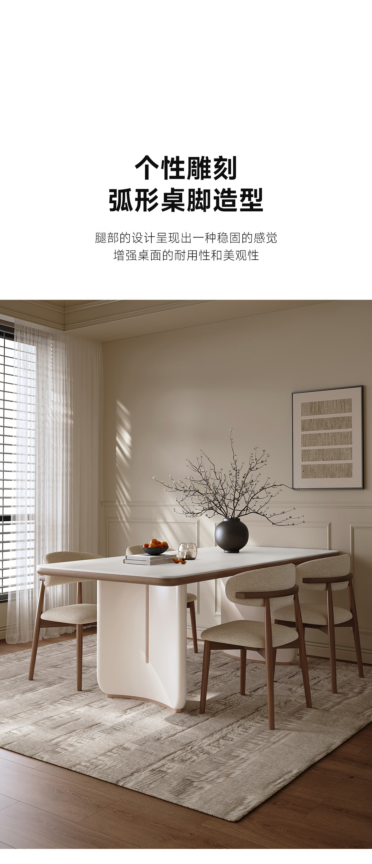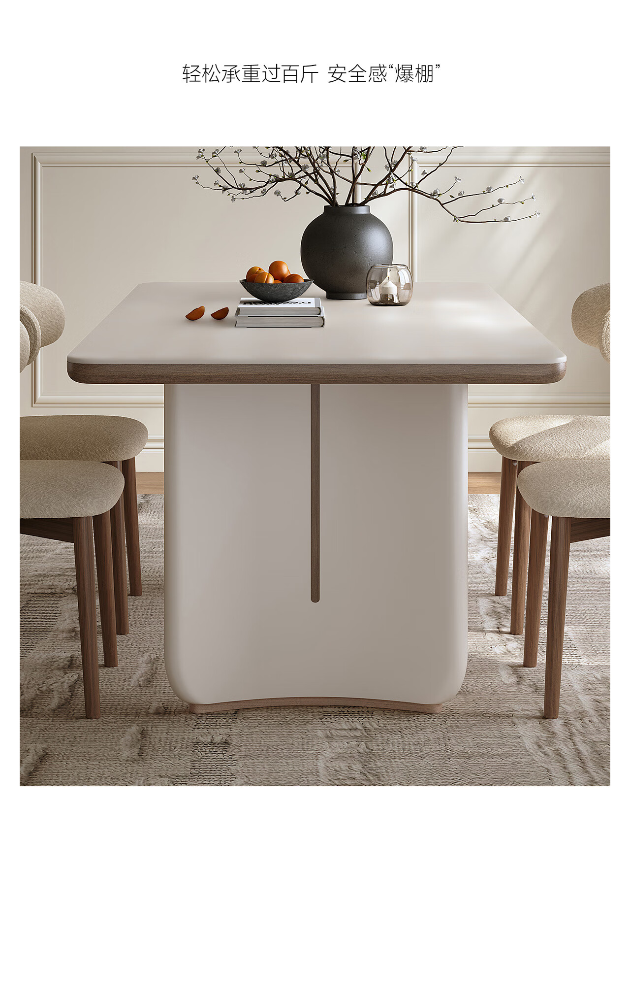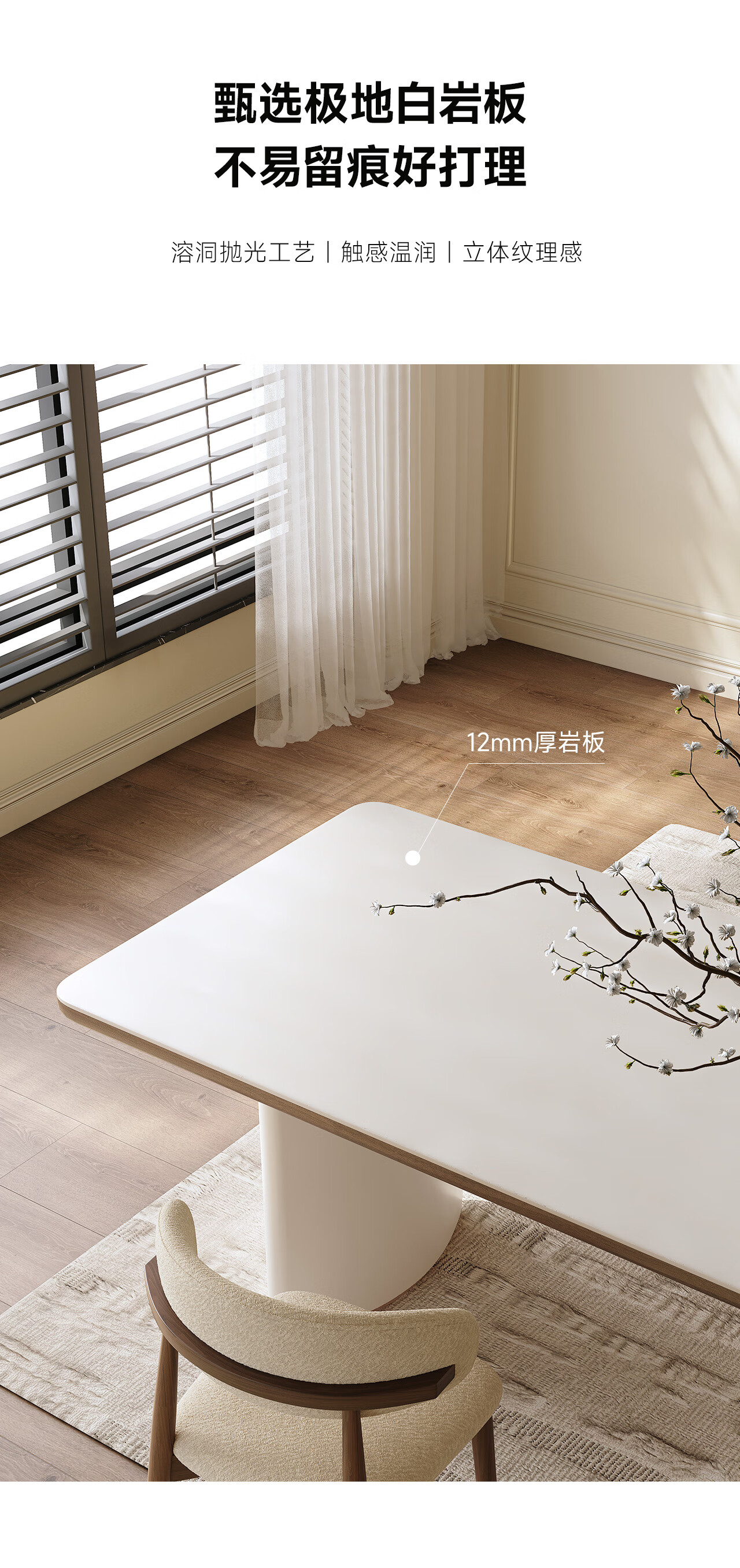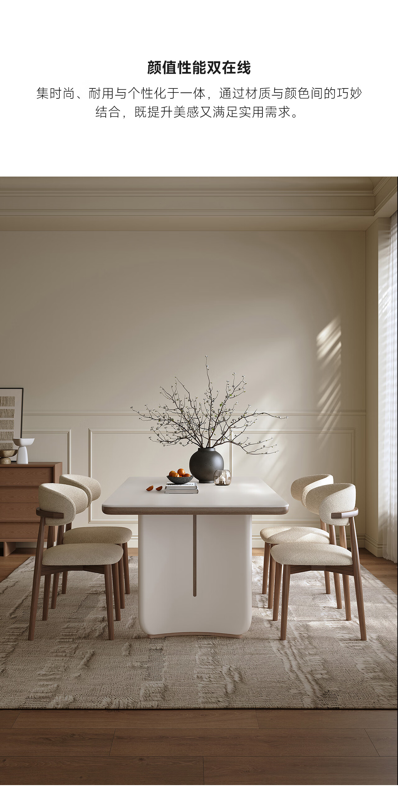 全慕(QUANMU)岩板餐桌椅组合奶油风高级感长方形小户型实木质家用餐厅吃饭桌子 餐桌【极地白岩板】 一桌四椅 【简逸餐椅】 140cm*75cm*75cm