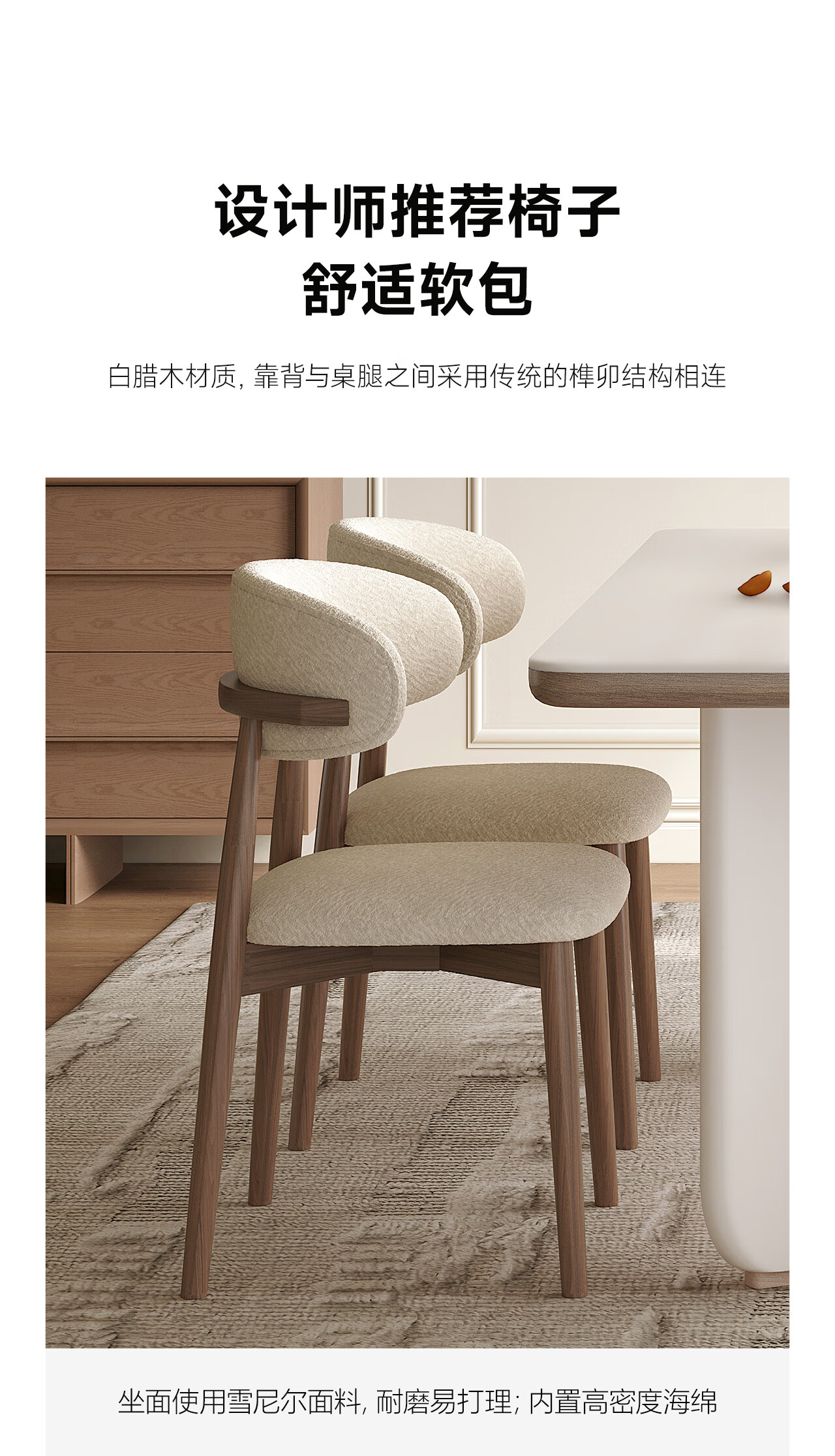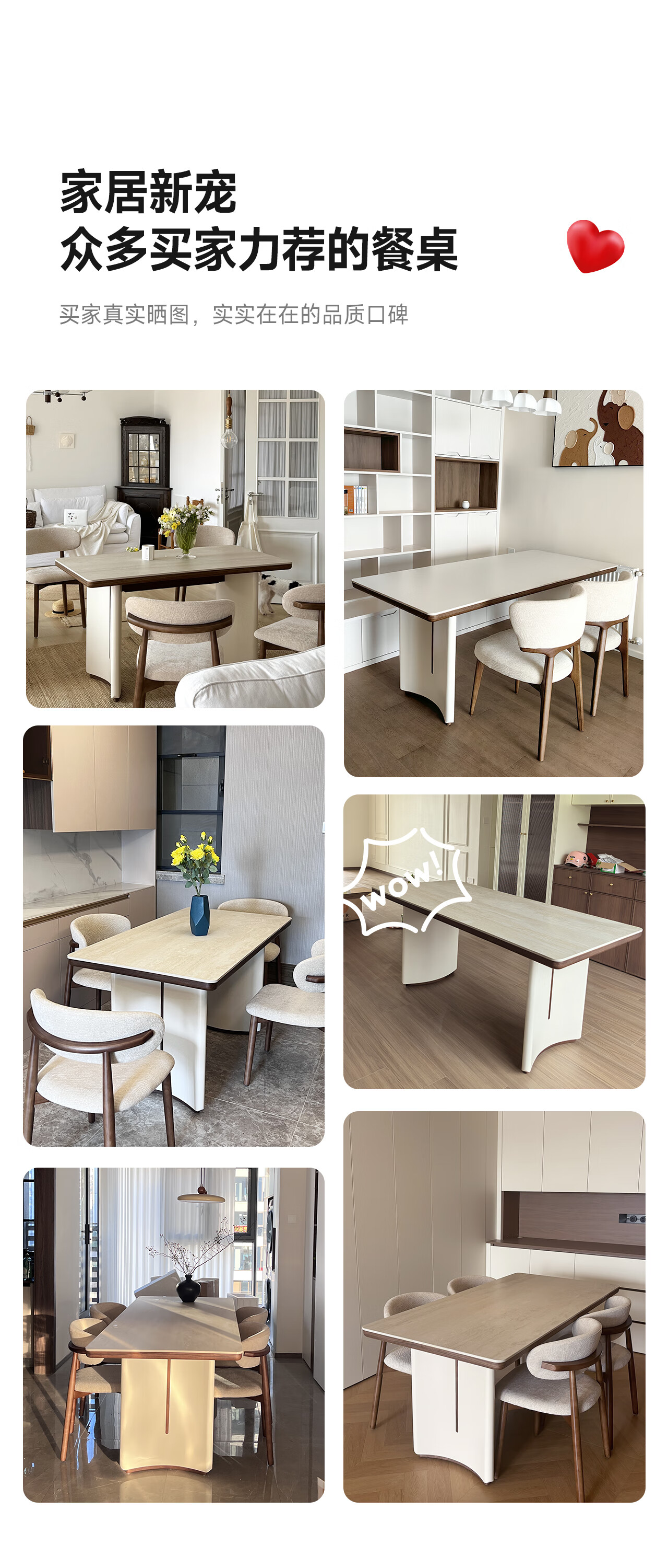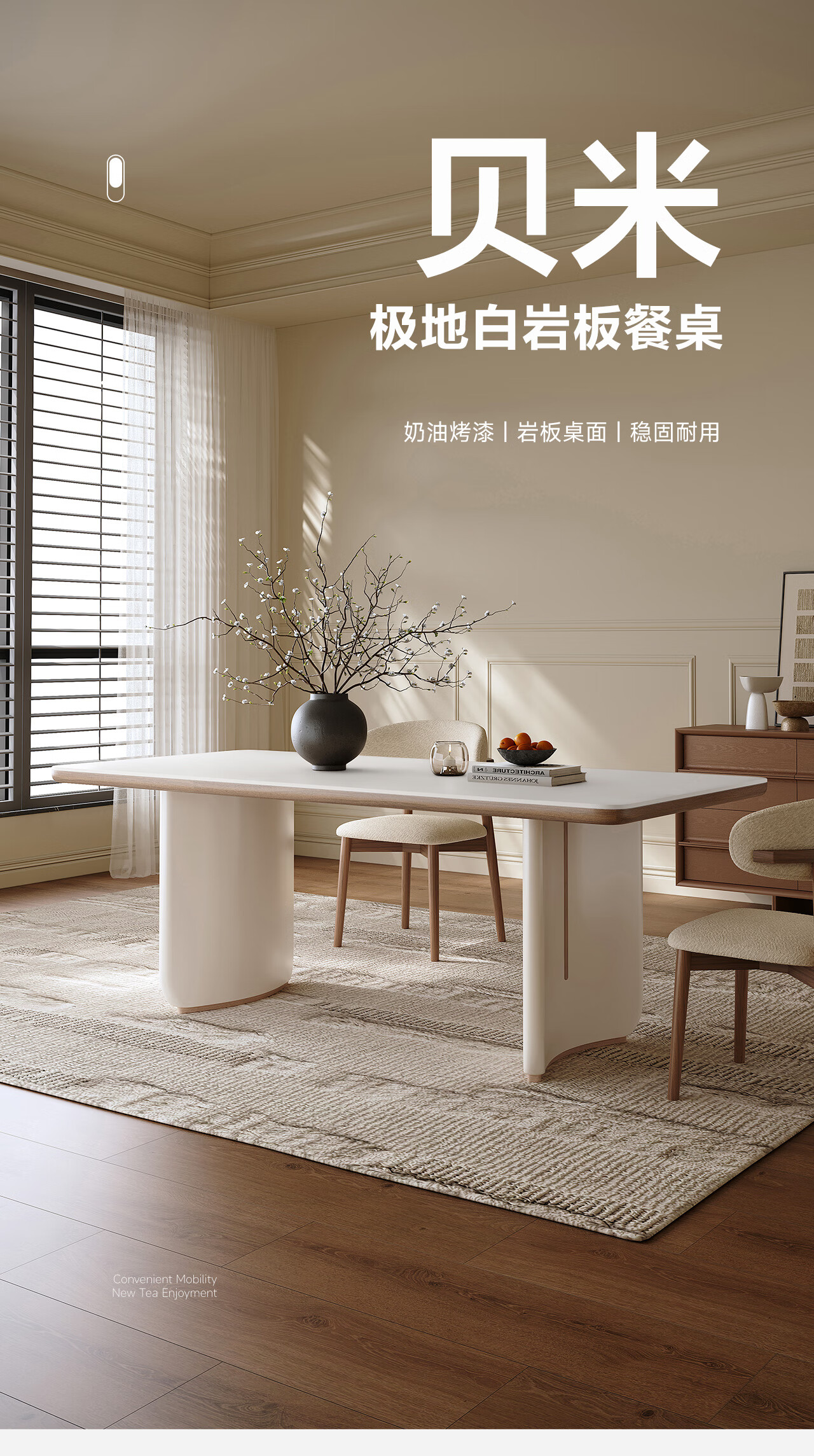 全慕(QUANMU)岩板餐桌椅组合奶油风高级感长方形小户型实木质家用餐厅吃饭桌子 餐桌【极地白岩板】 一桌四椅 【简逸餐椅】 140cm*75cm*75cm