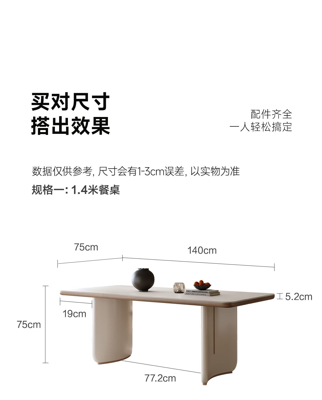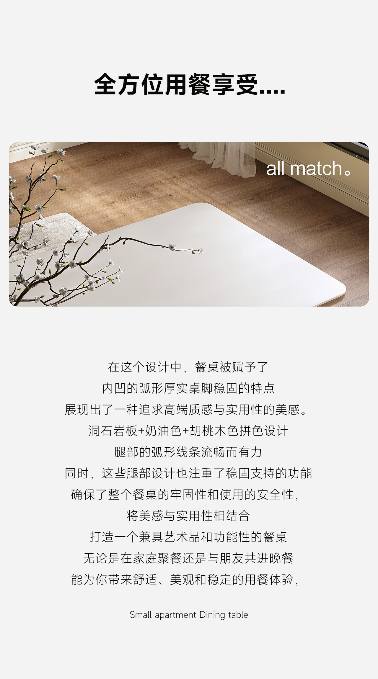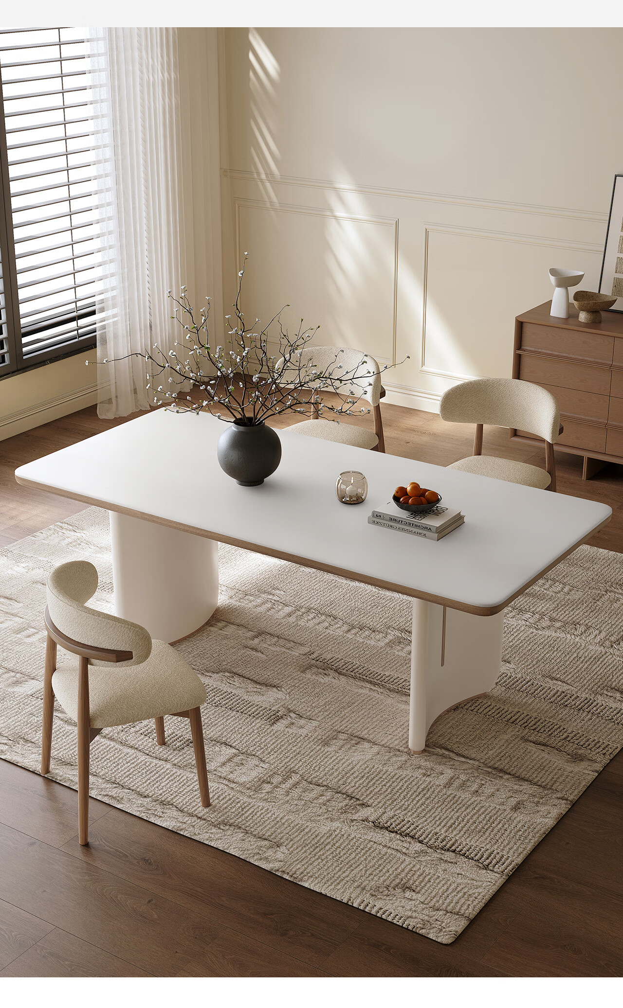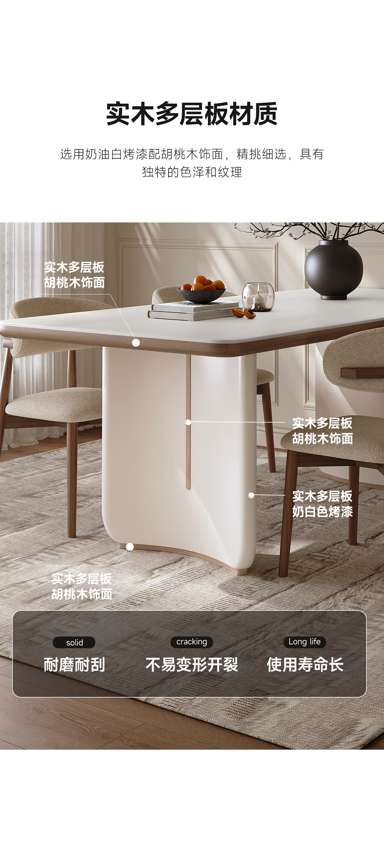全慕(QUANMU)岩板餐桌椅组合奶油风高级感长方形小户型实木质家用餐厅吃饭桌子 餐桌【极地白岩板】 一桌四椅 【简逸餐椅】 140cm*75cm*75cm