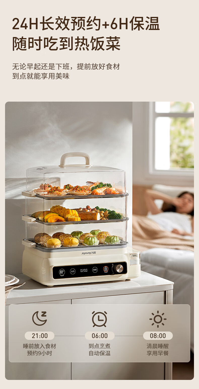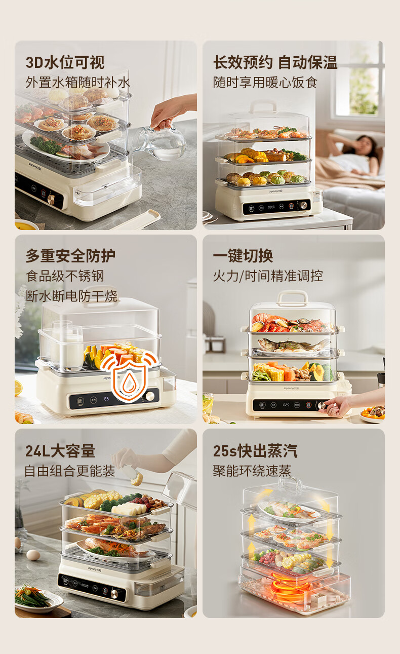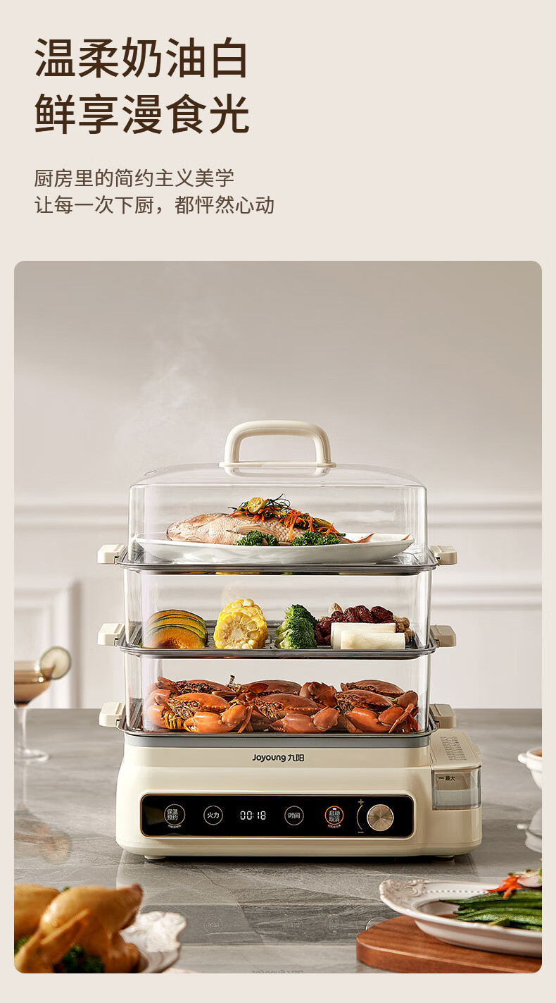 九阳(Joyoung)电蒸锅24L三层大容量家用多功能电蒸箱蒸螃蟹多用途蒸锅全透明视窗不锈钢蒸片GZ578【九阳漫生活】