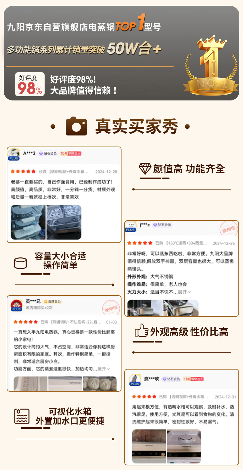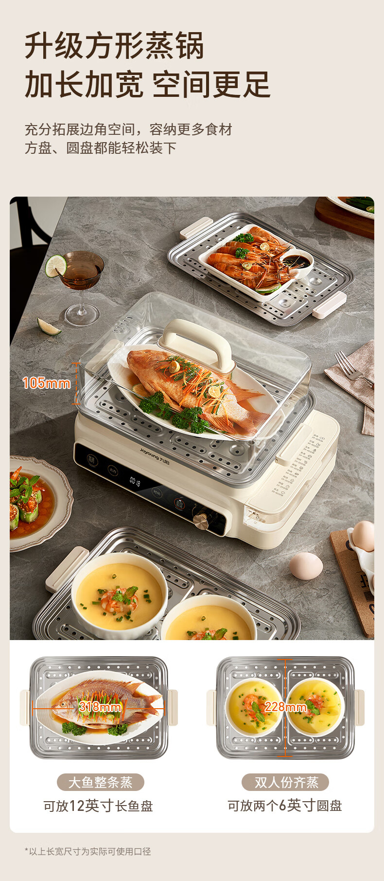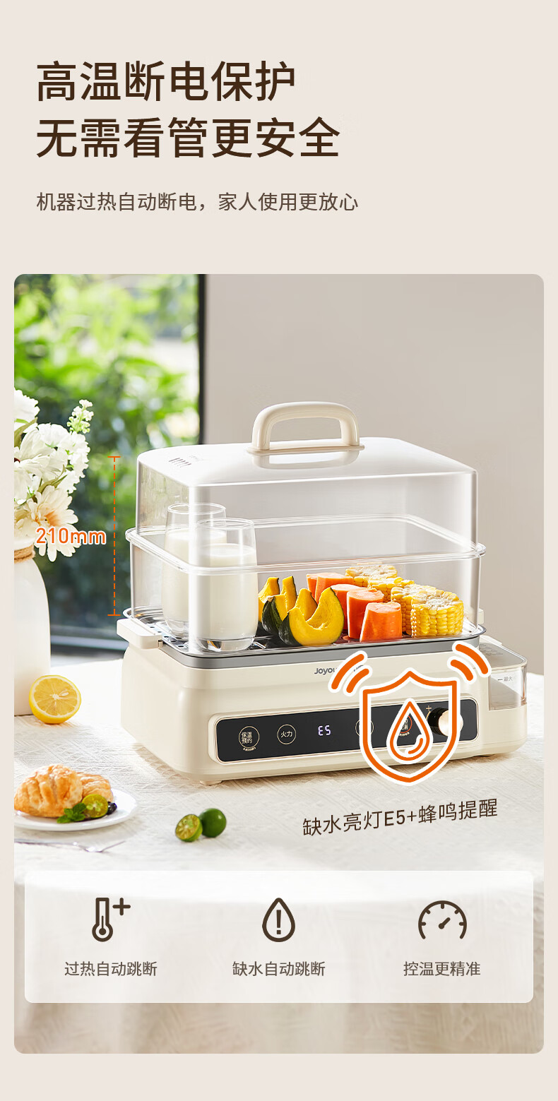 九阳(Joyoung)电蒸锅24L三层大容量家用多功能电蒸箱蒸螃蟹多用途蒸锅全透明视窗不锈钢蒸片GZ578【九阳漫生活】