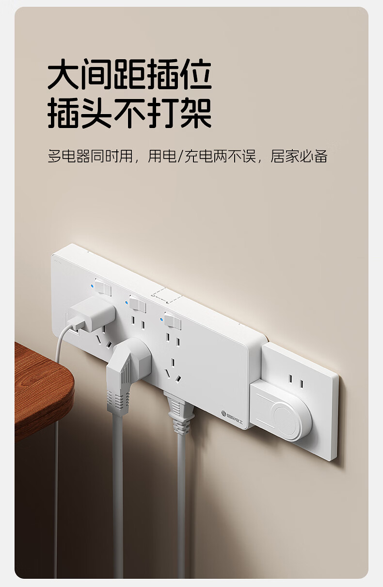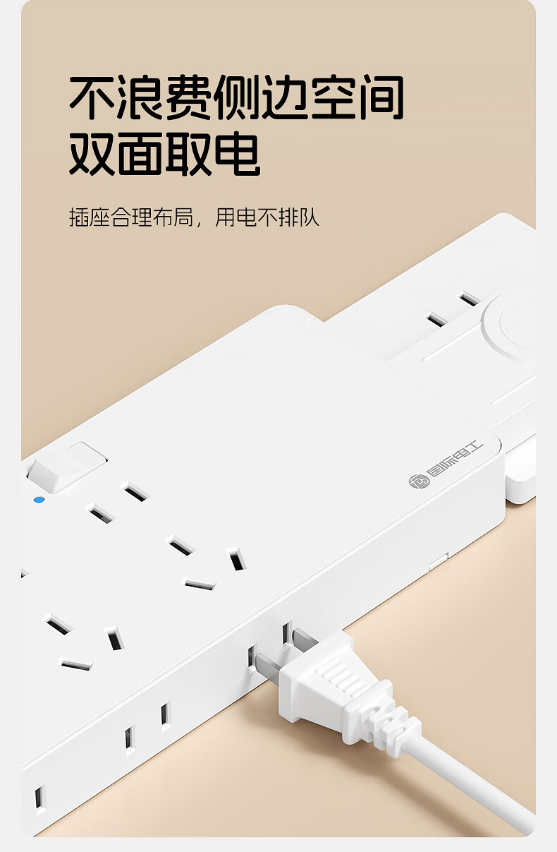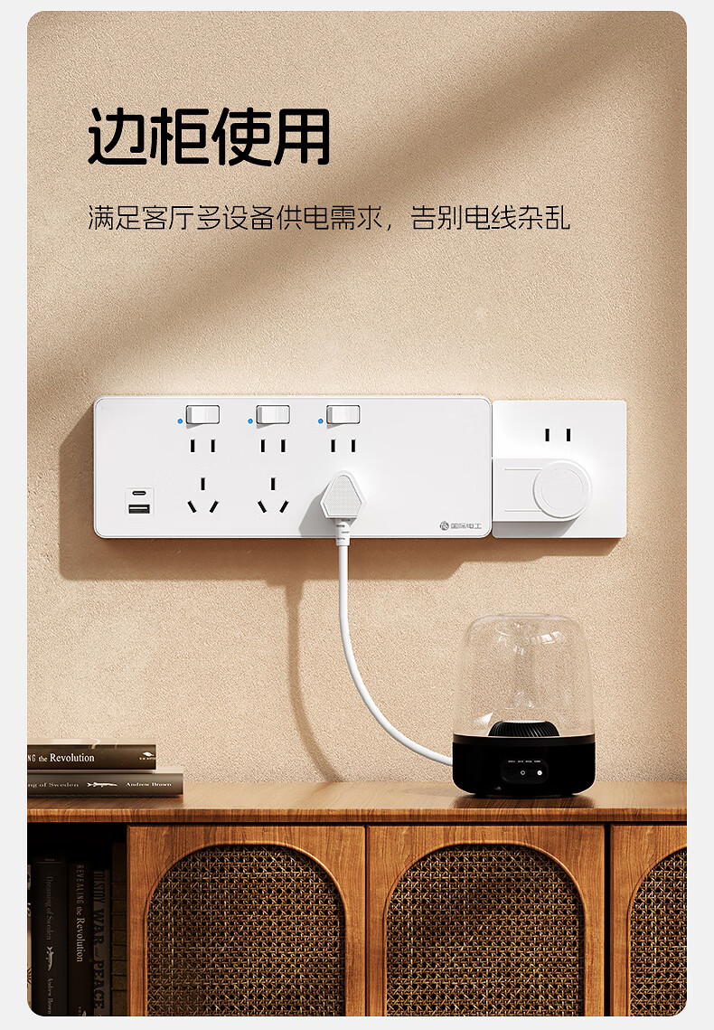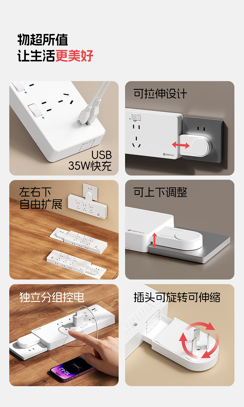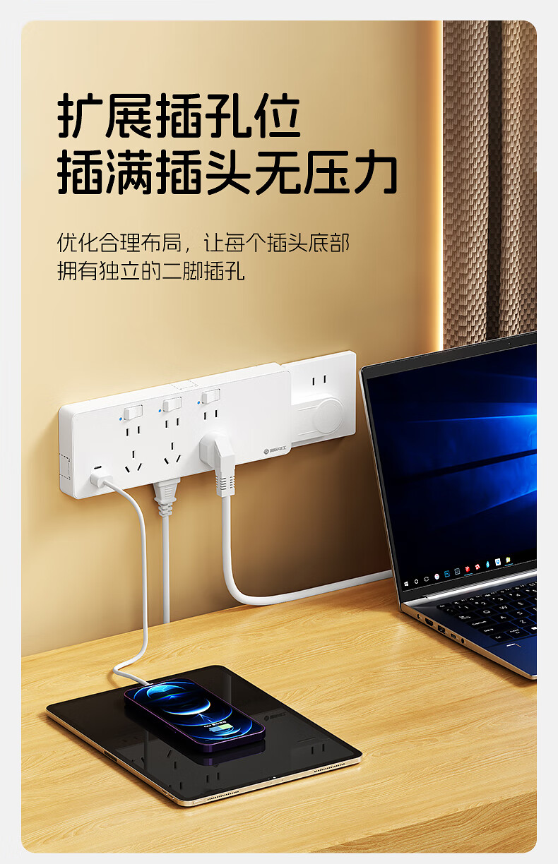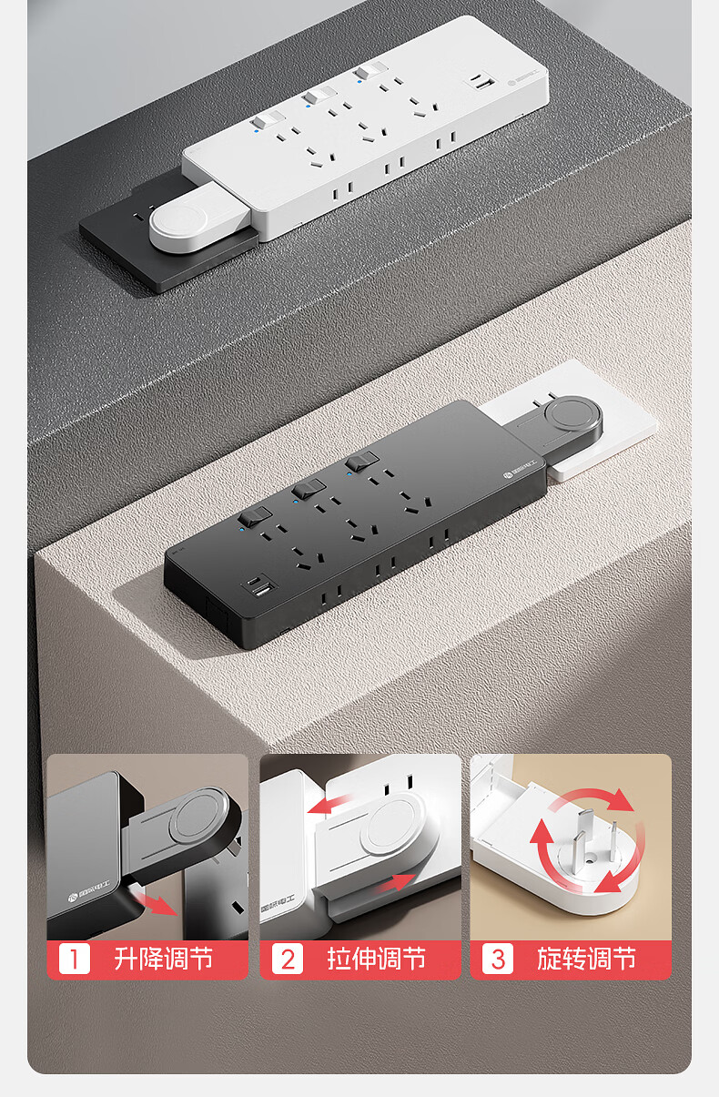 国际电工一转多扩展插座免接线多功能35W快充排插可调节转换器插板USB+C 灰色【向右扩展】35W快充USB+C-三位三开2孔
