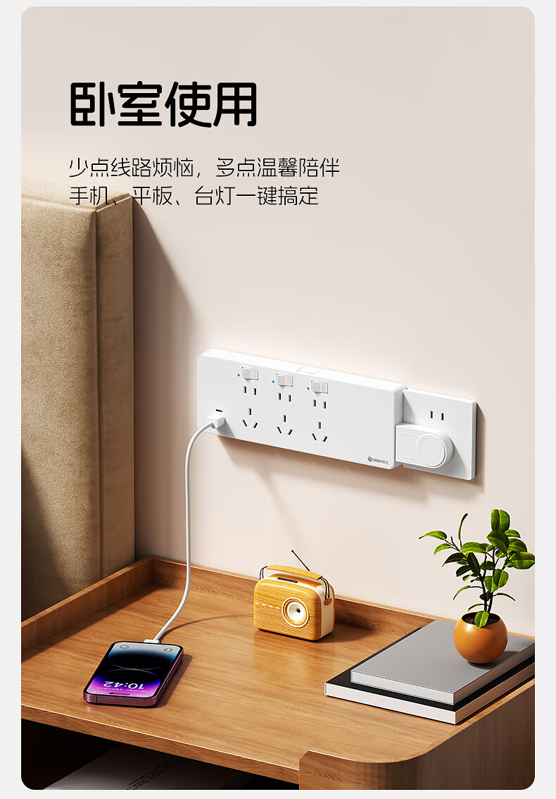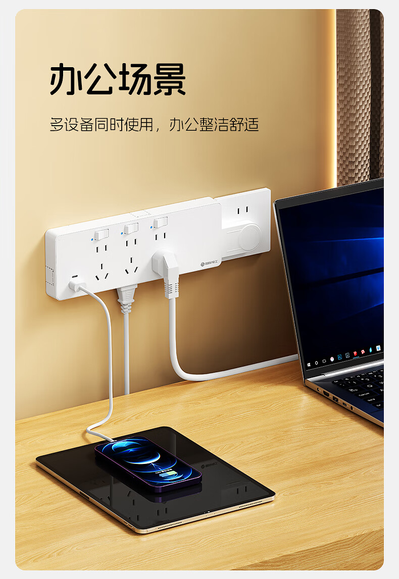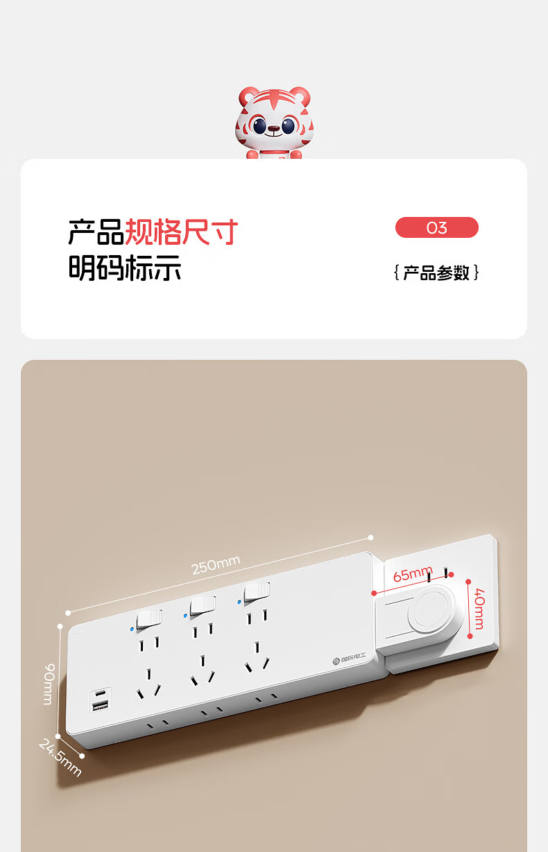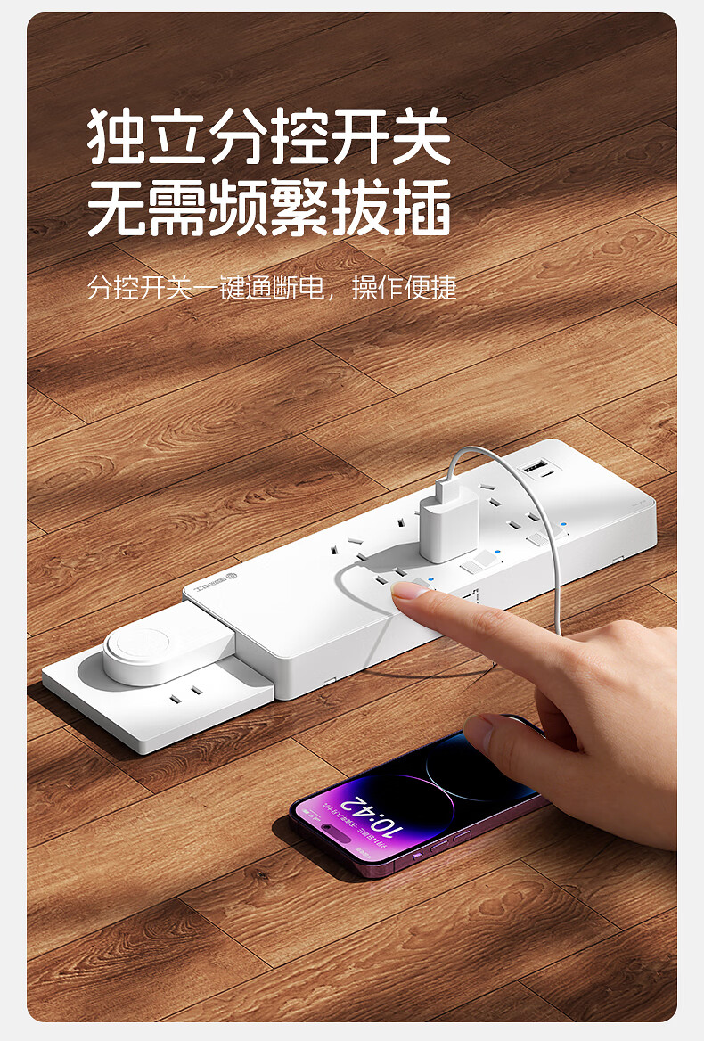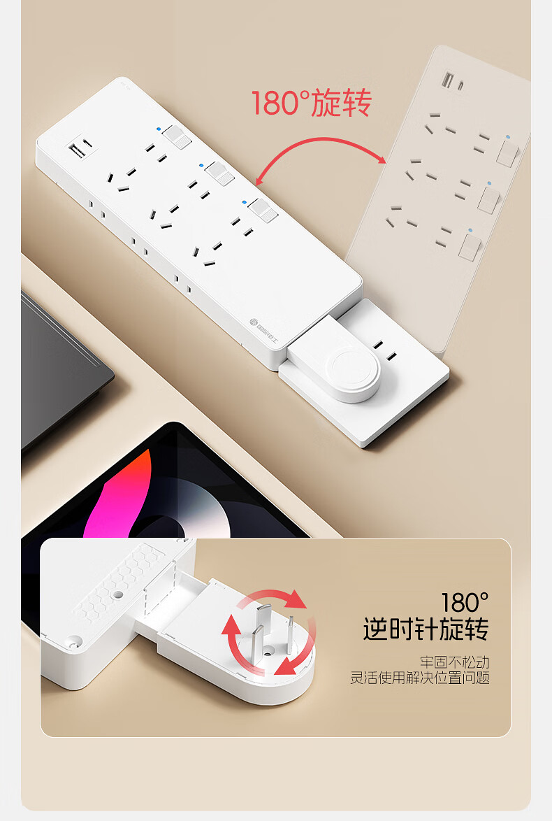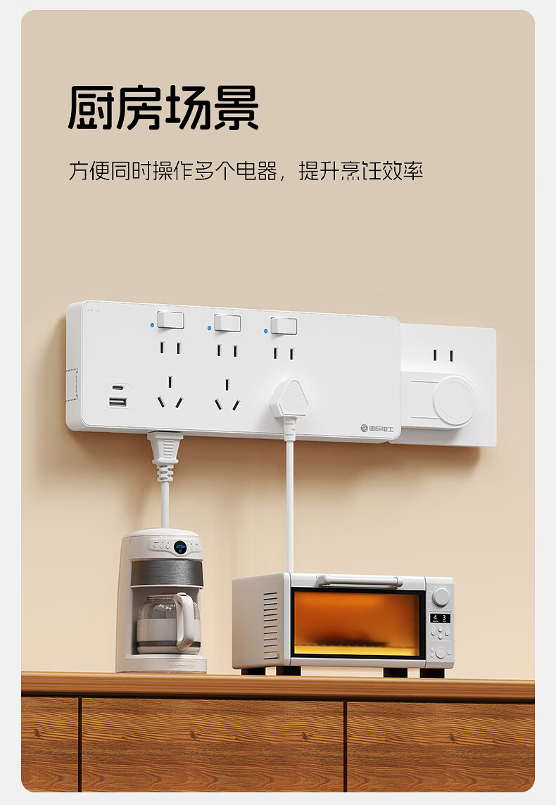 国际电工一转多扩展插座免接线多功能35W快充排插可调节转换器插板USB+C 灰色【向右扩展】35W快充USB+C-三位三开2孔