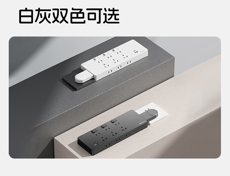 小米有品带线插头轨道插座一键断电开关智能控制双断开关滑轨电力明装插座 黑色60公分轨道4个五孔1个USB送1