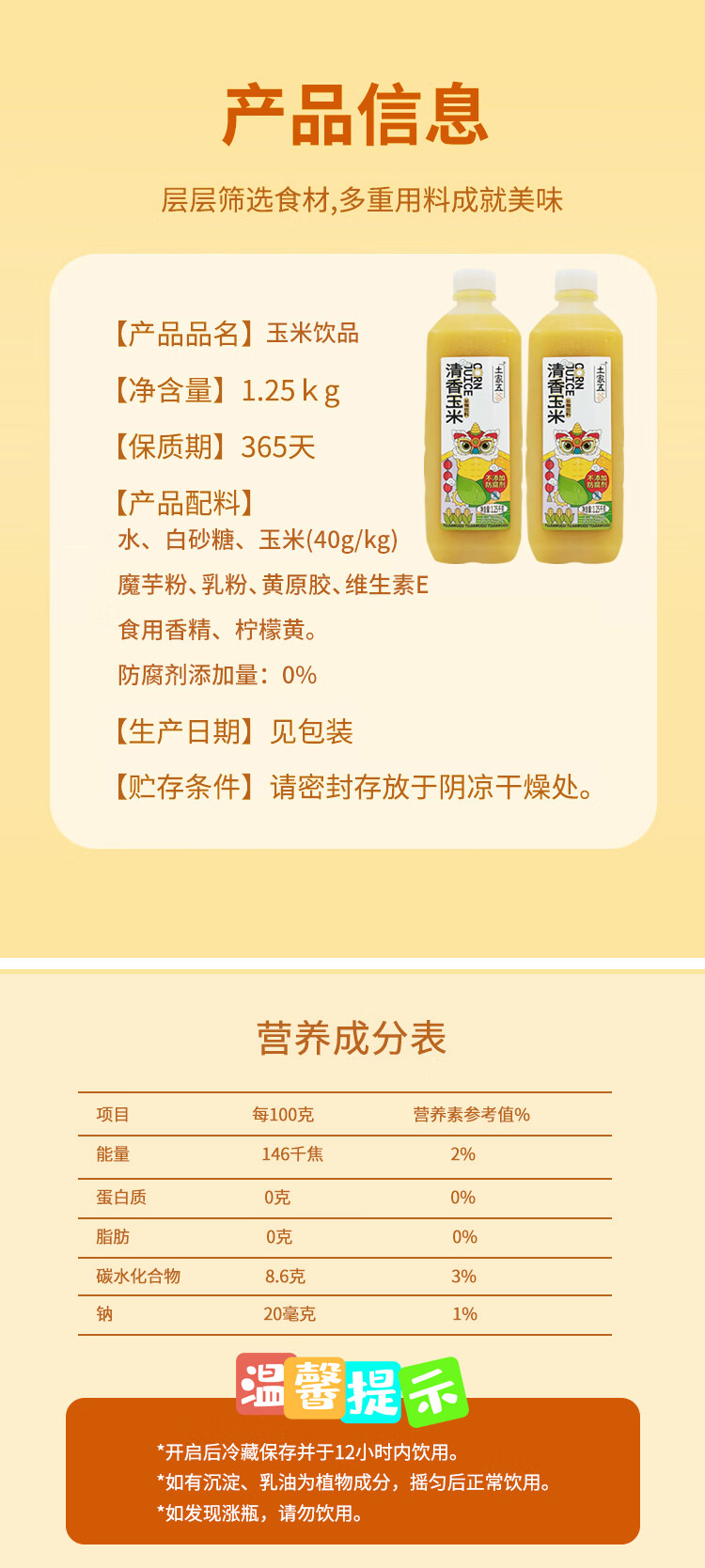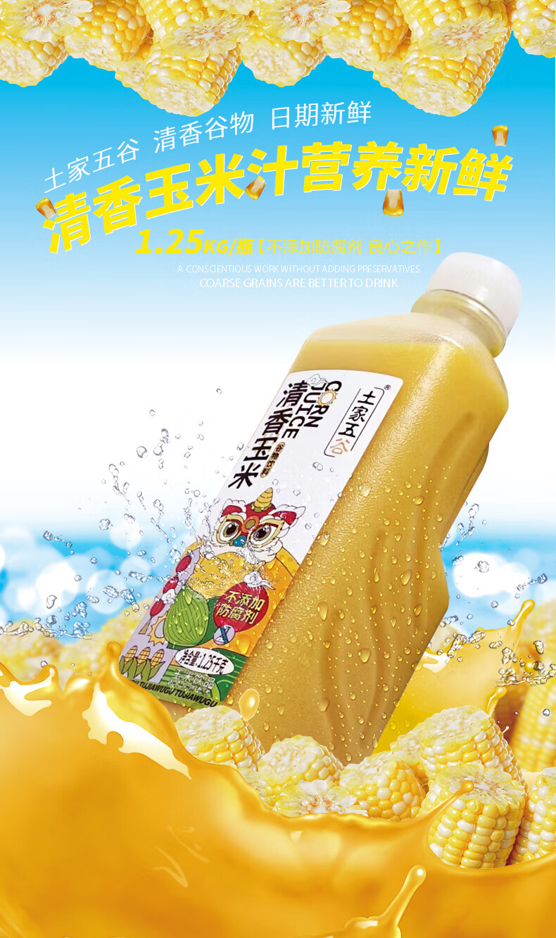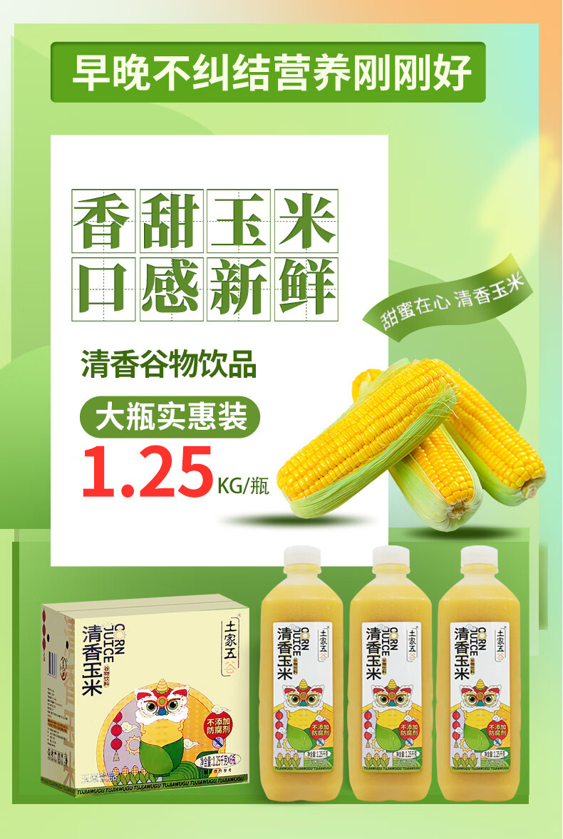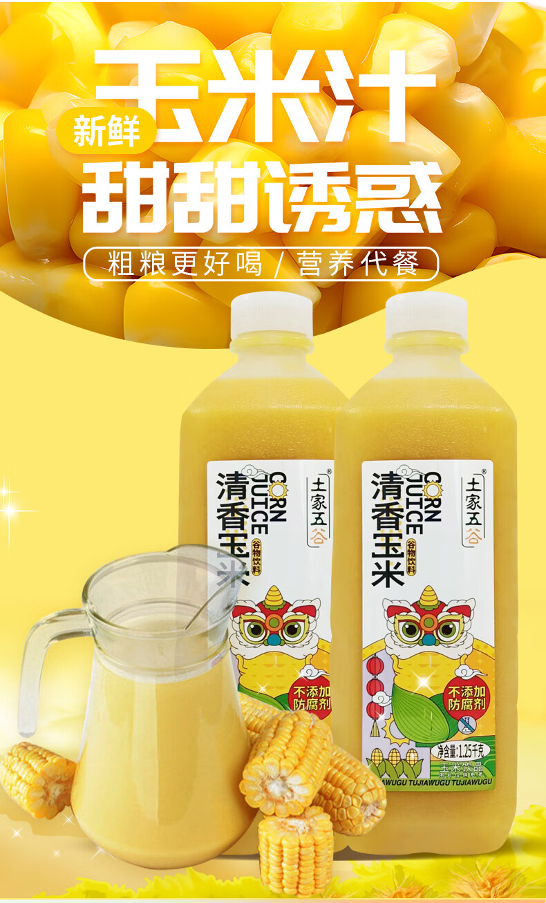 土家五谷玉米汁1.25kg大瓶装轻食减脂健康营养早晚餐0脂肪0防腐剂谷物饮料