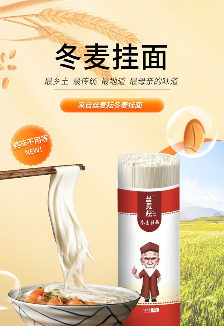 丝麦耘新疆冬麦挂面800g 奇台韭叶状扁面