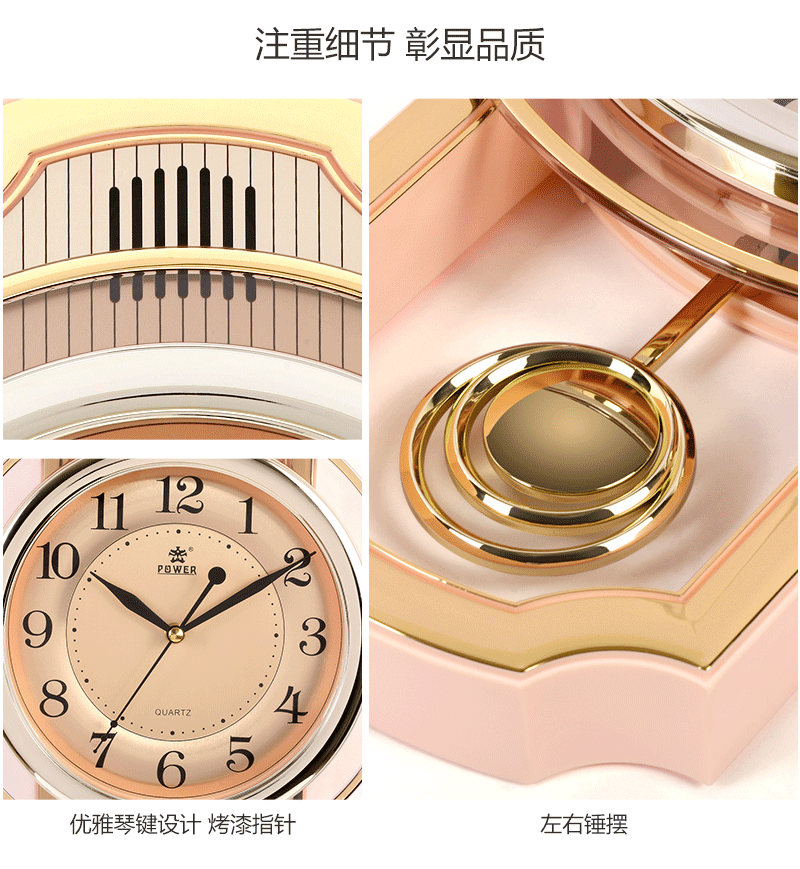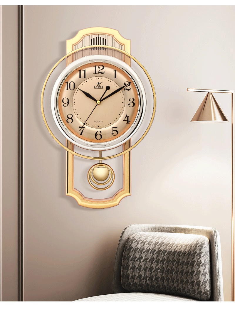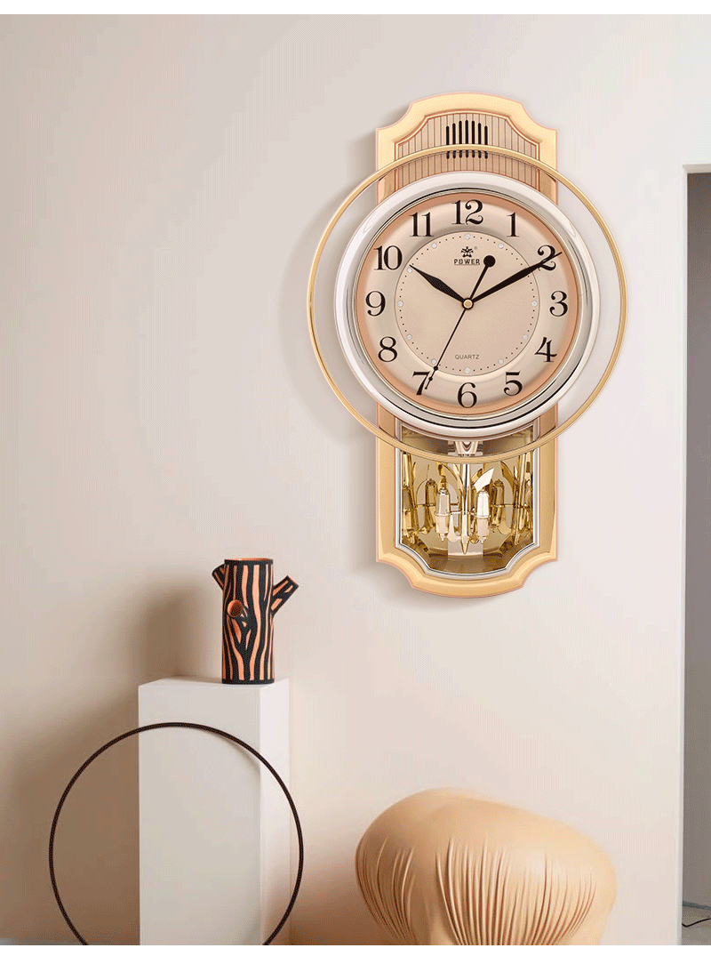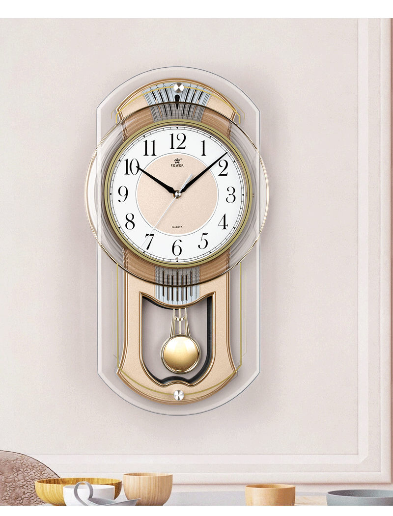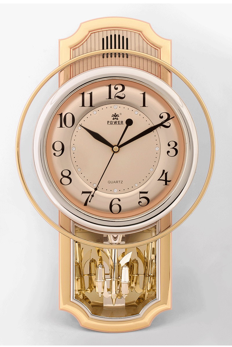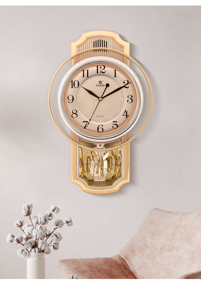 POWER霸王钟表客厅时钟整点音乐报时挂钟轻奢长43cm石英钟 6173APMKS