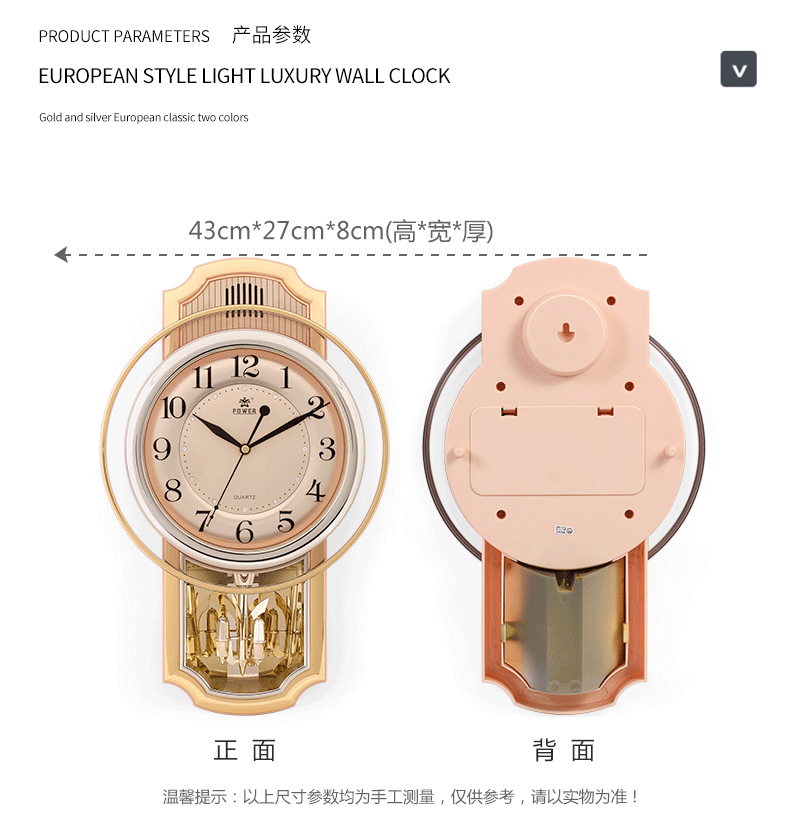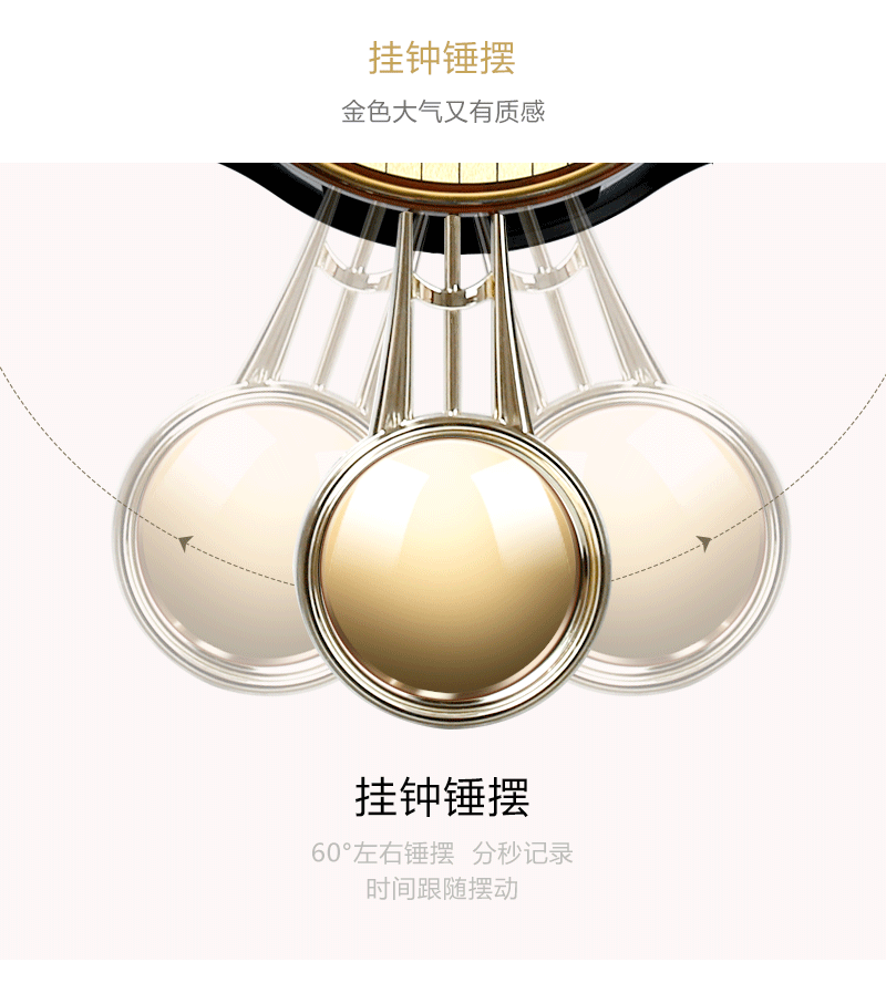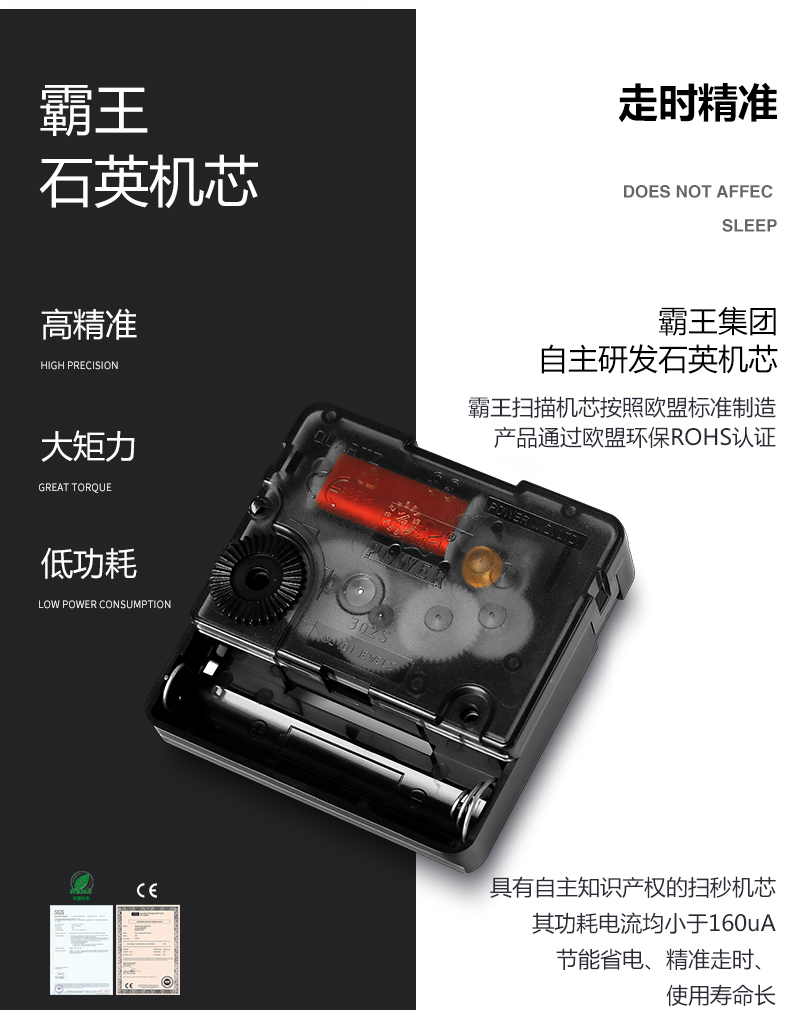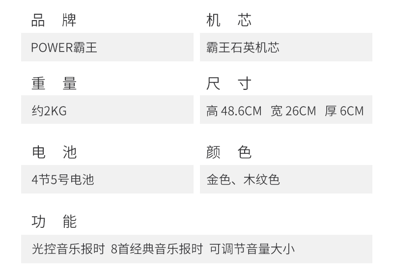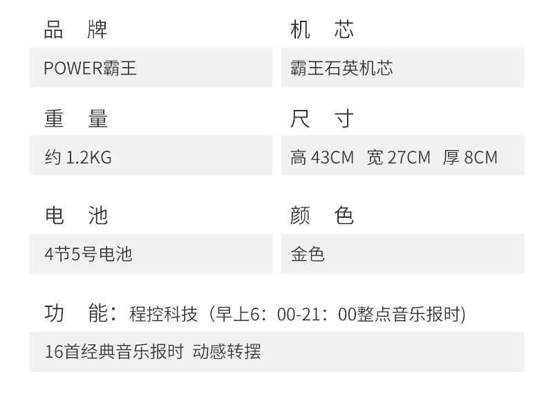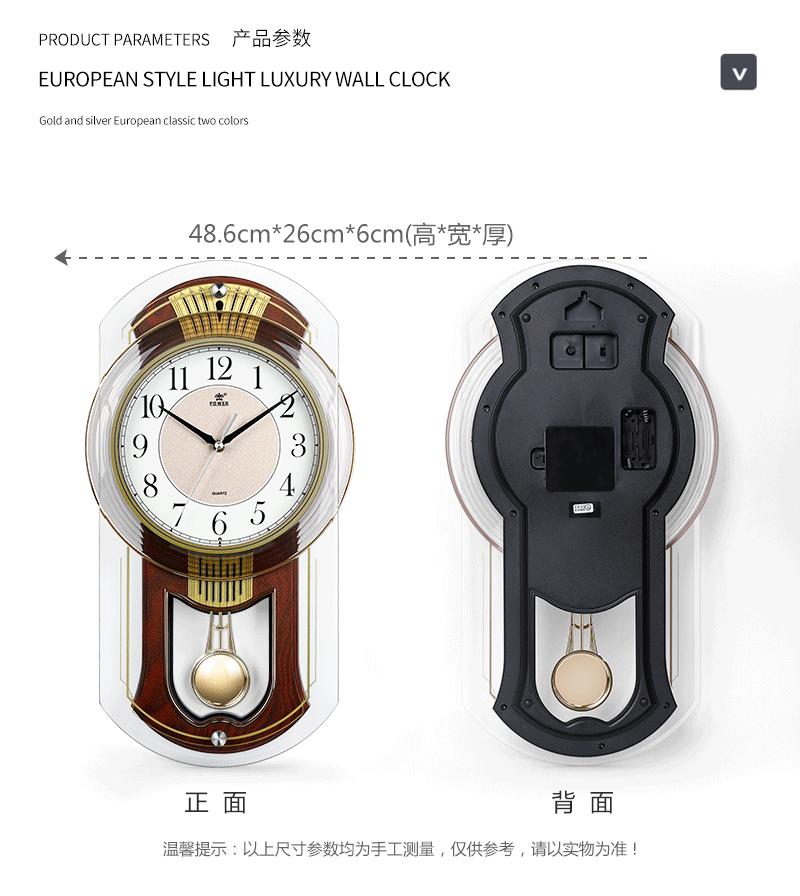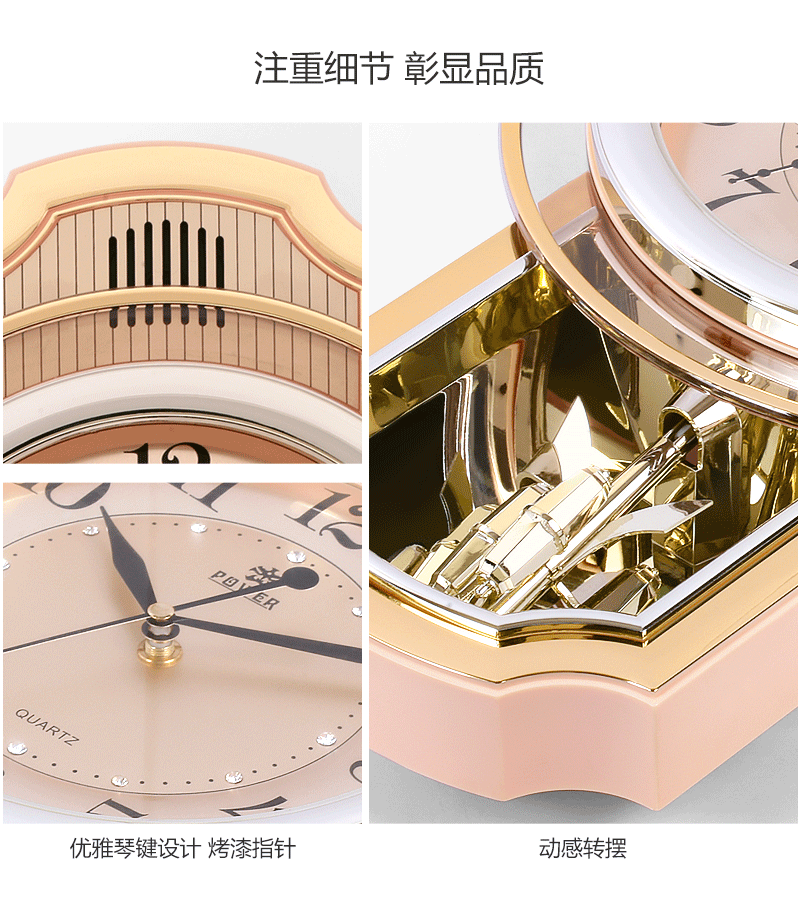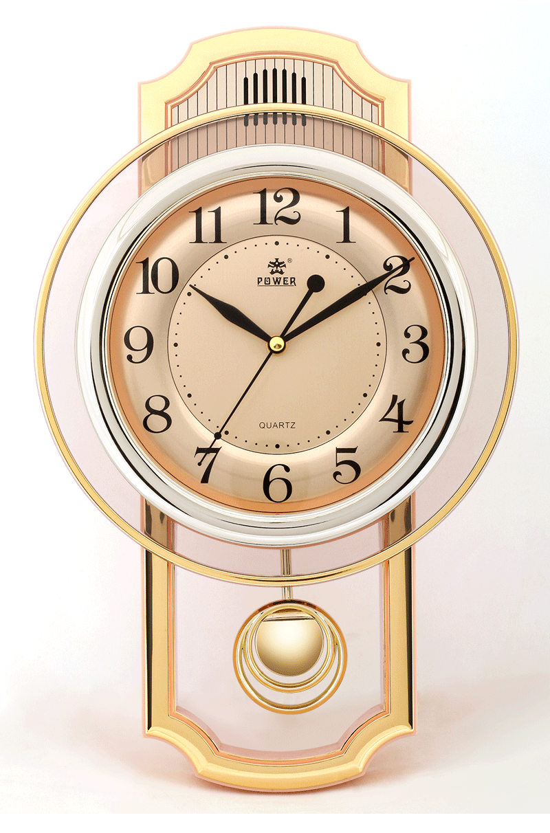POWER霸王钟表客厅时钟整点音乐报时挂钟轻奢长43cm石英钟 6173APMKS