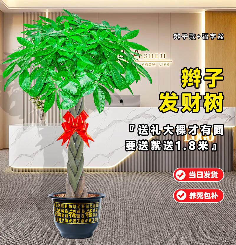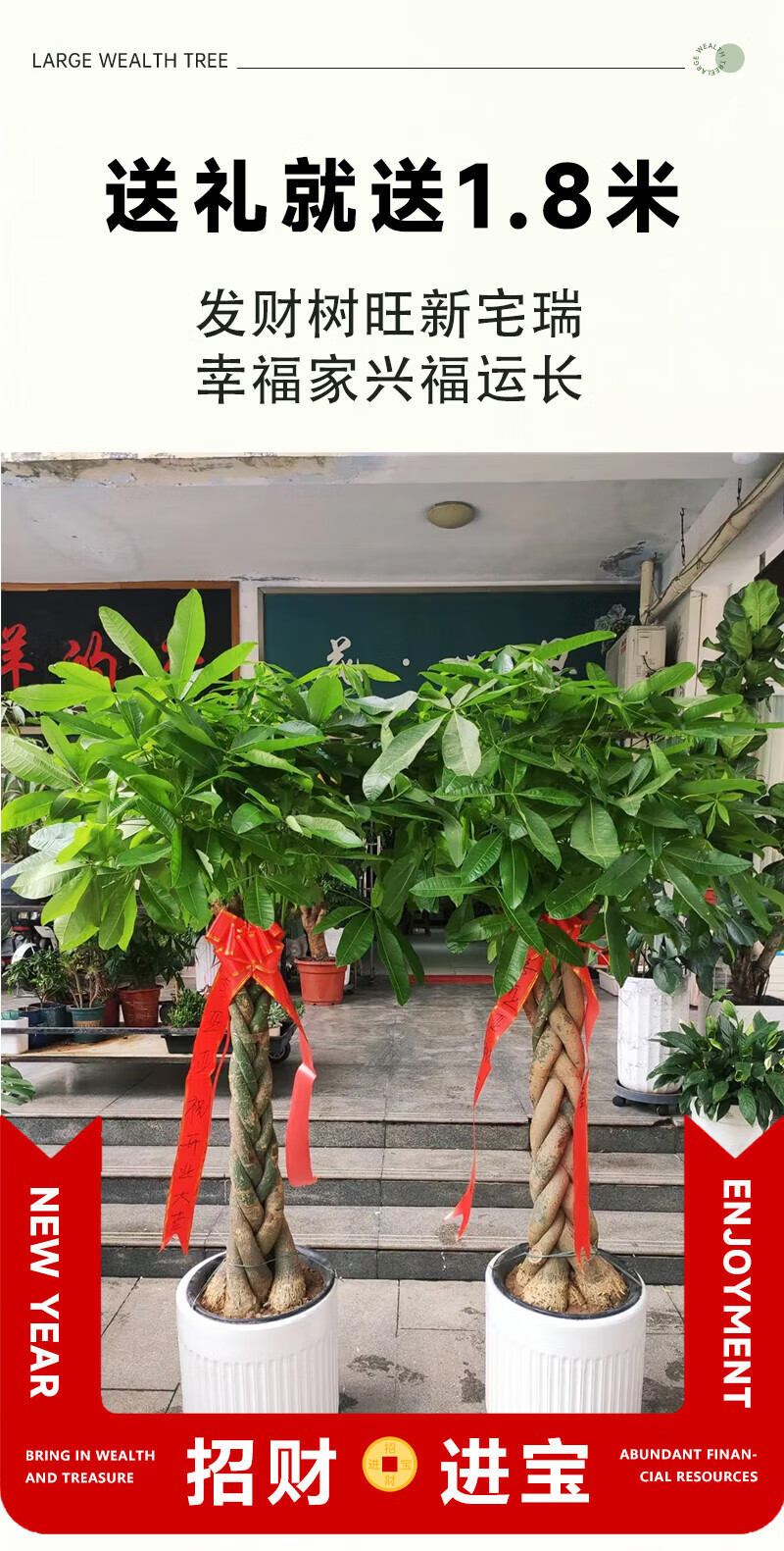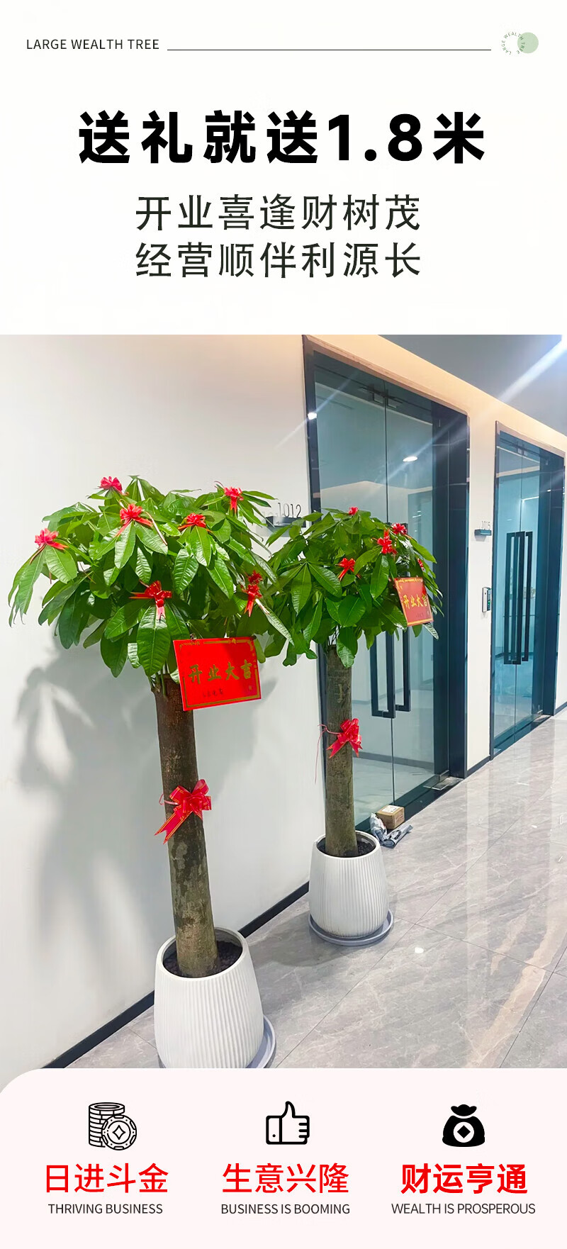 临雅30天包活发财树大盆栽室内绿植客厅大型步步高招财树植物乔迁开业 发财树1.2-1.3米(福字盆)送土+彩带+肥