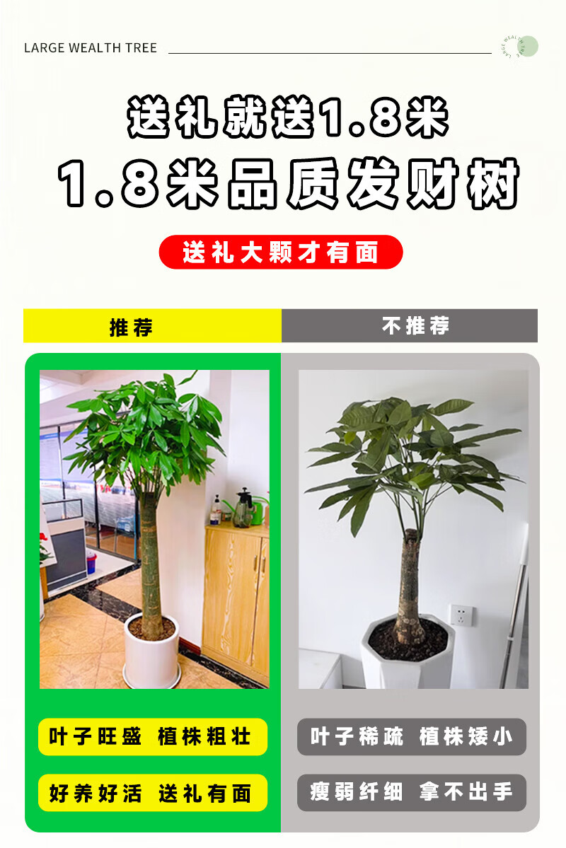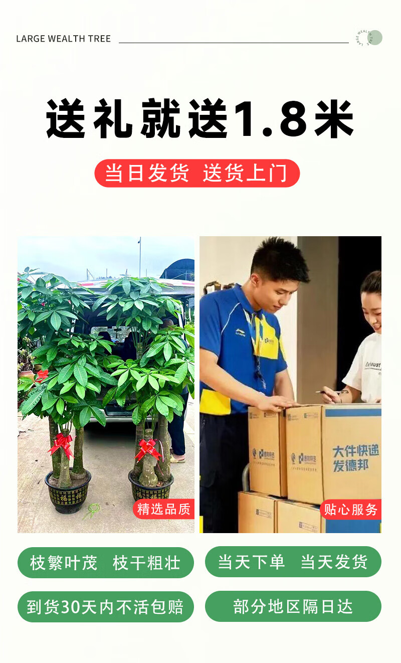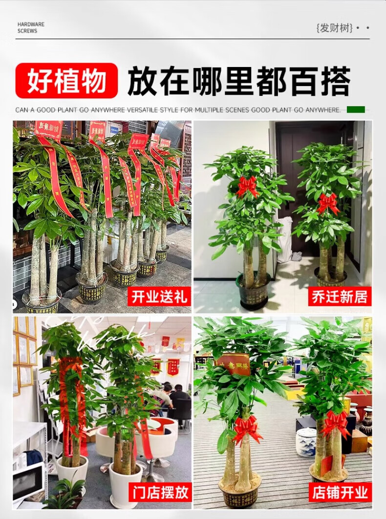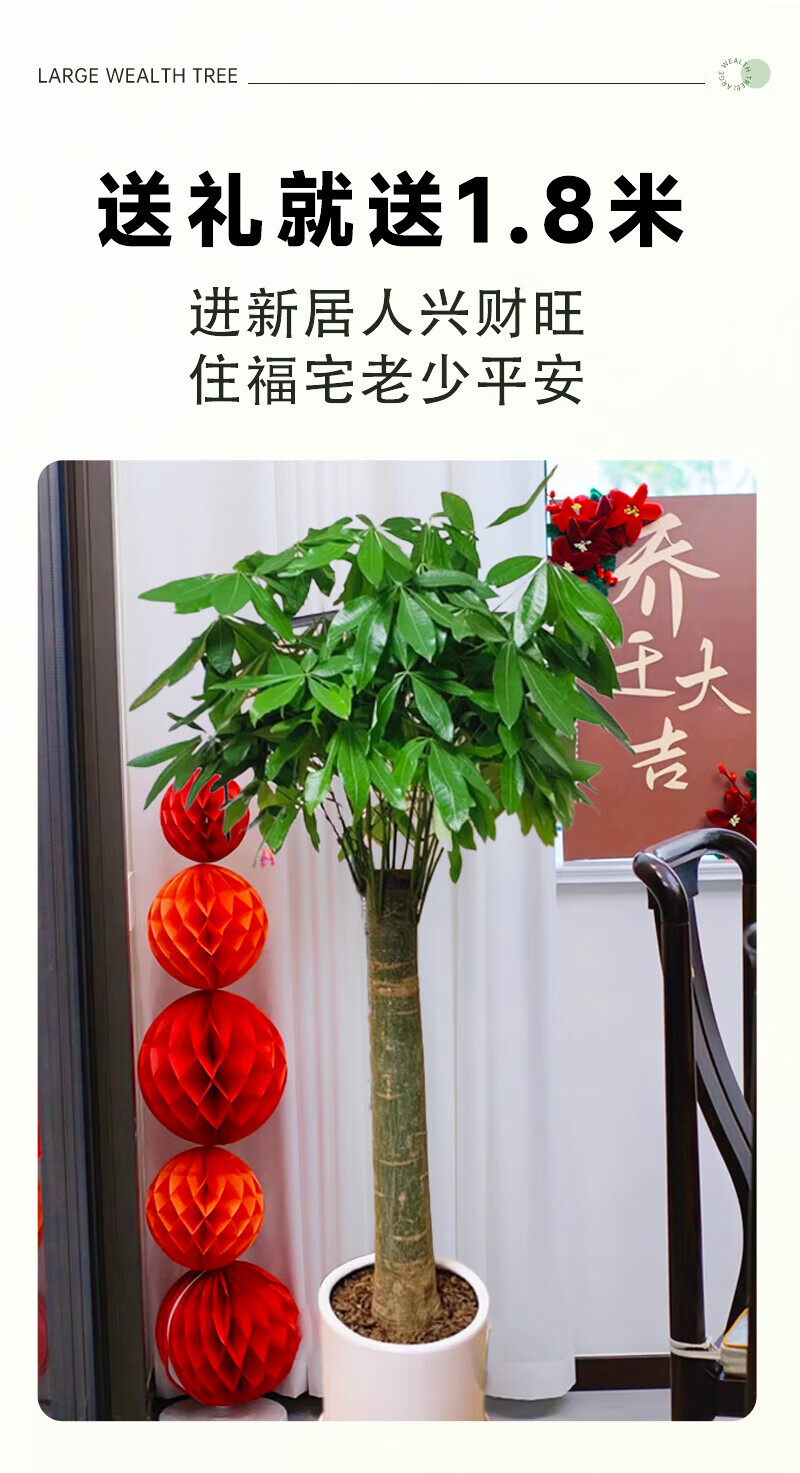 临雅30天包活发财树大盆栽室内绿植客厅大型步步高招财树植物乔迁开业 发财树1.2-1.3米(福字盆)送土+彩带+肥