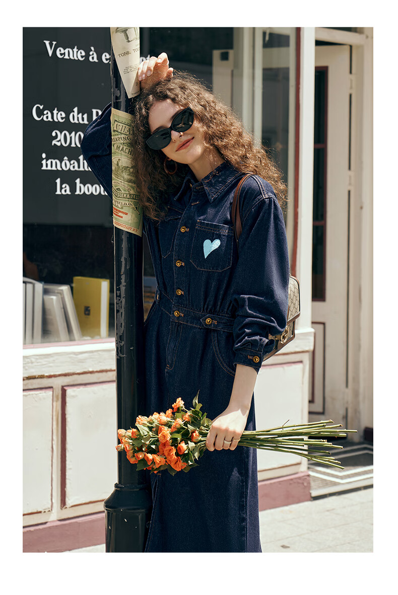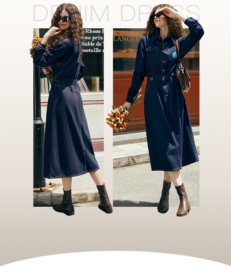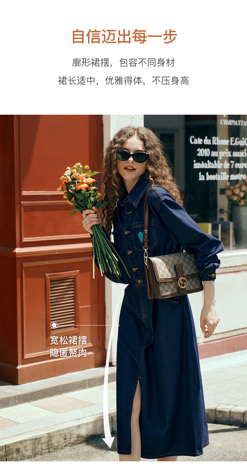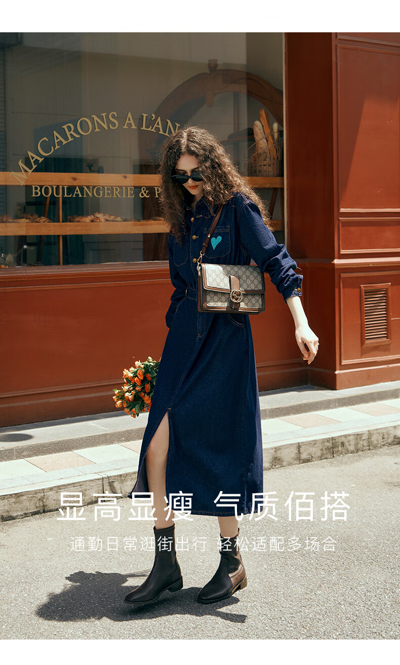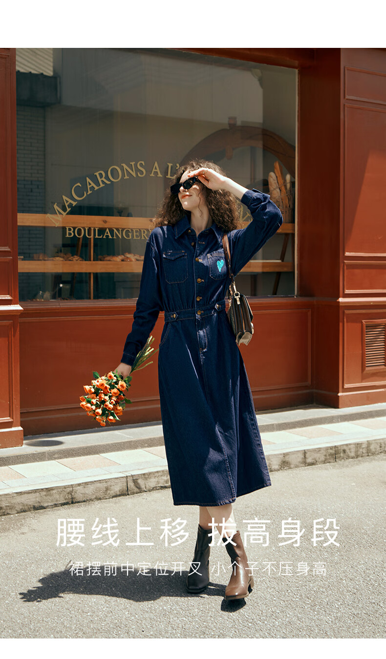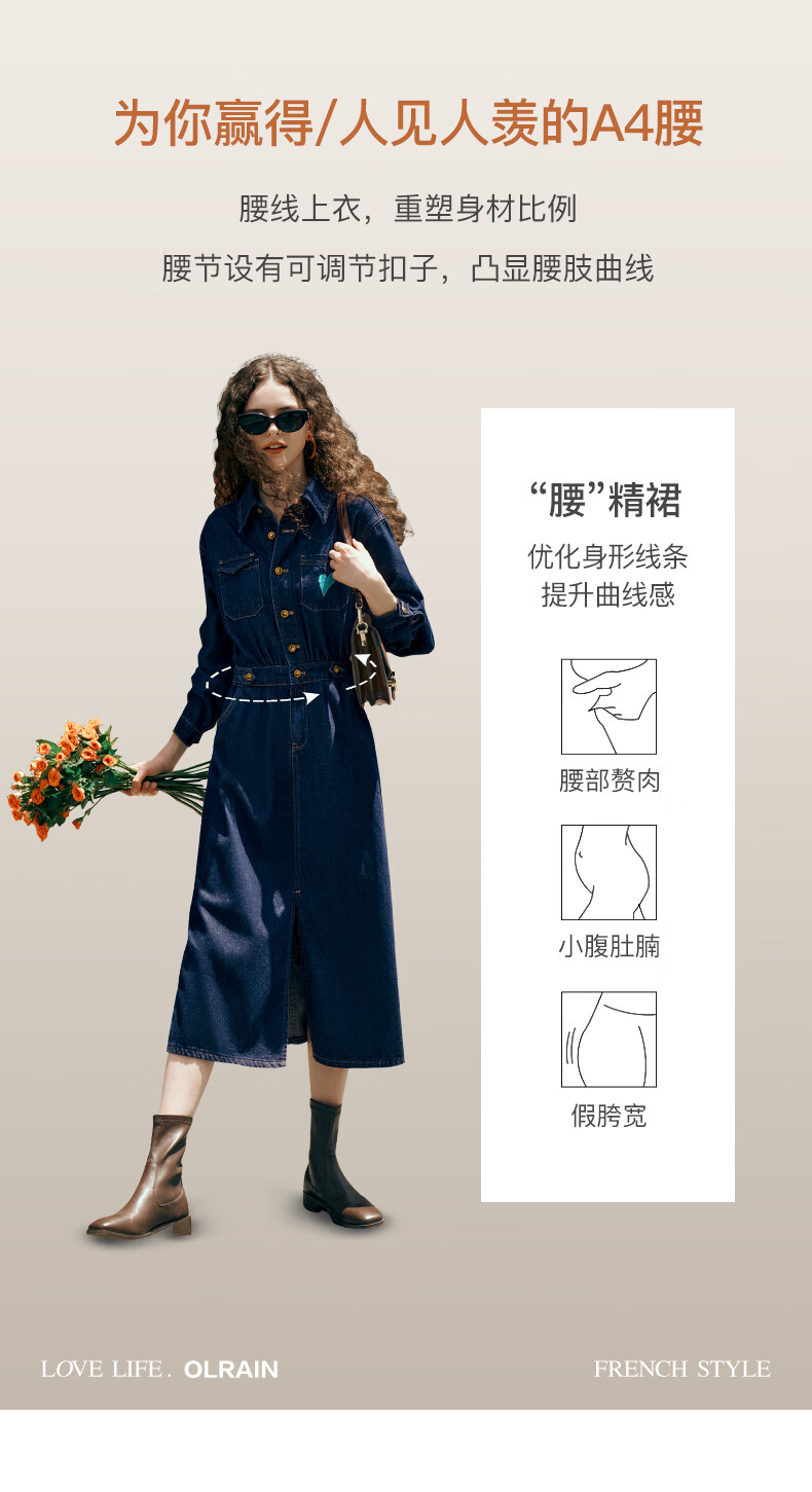 Olrain【版型升级】欧芮儿收腰牛仔连衣裙女装气质通勤裙子 普鲁士蓝 S