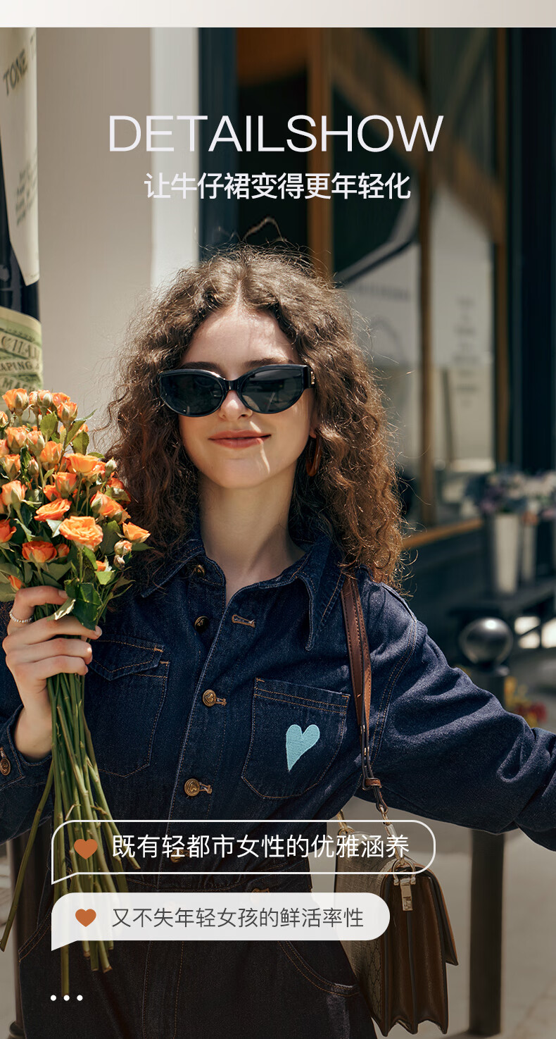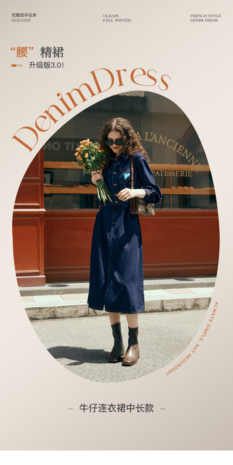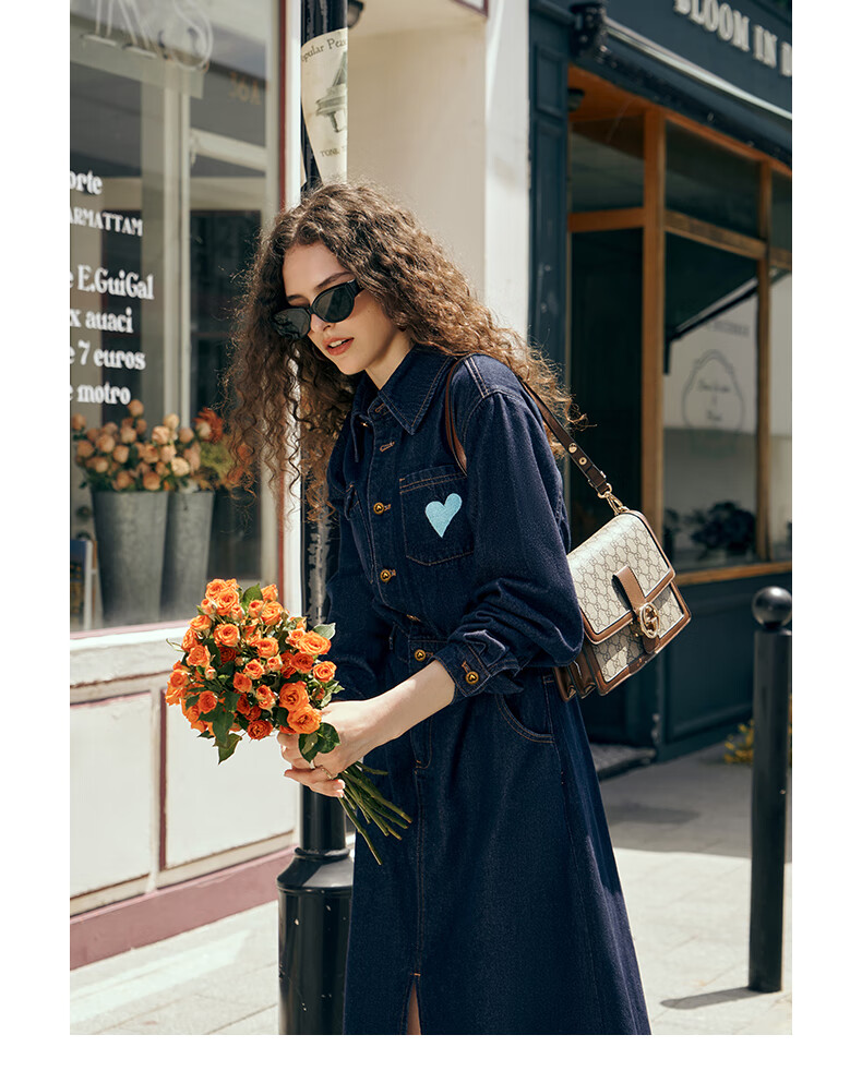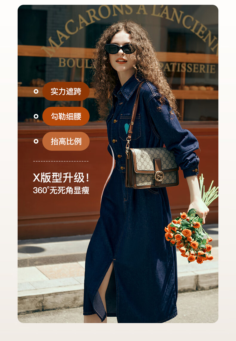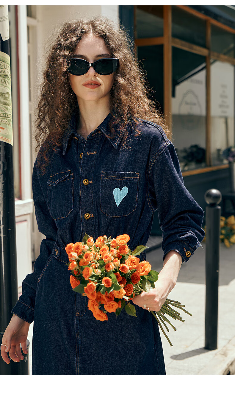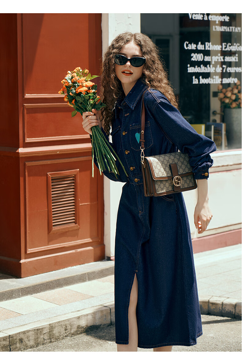 Olrain【版型升级】欧芮儿收腰牛仔连衣裙女装气质通勤裙子 普鲁士蓝 S