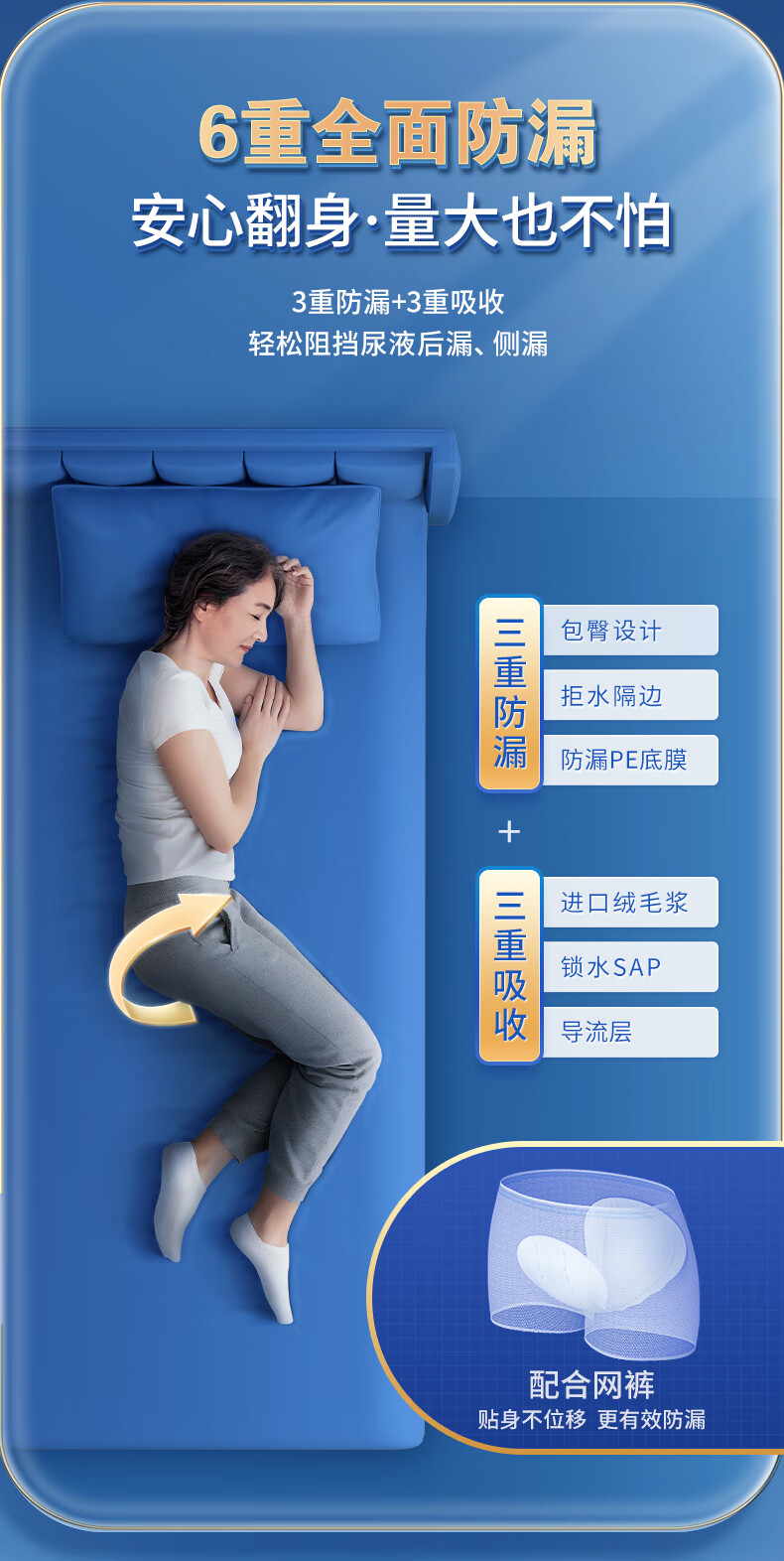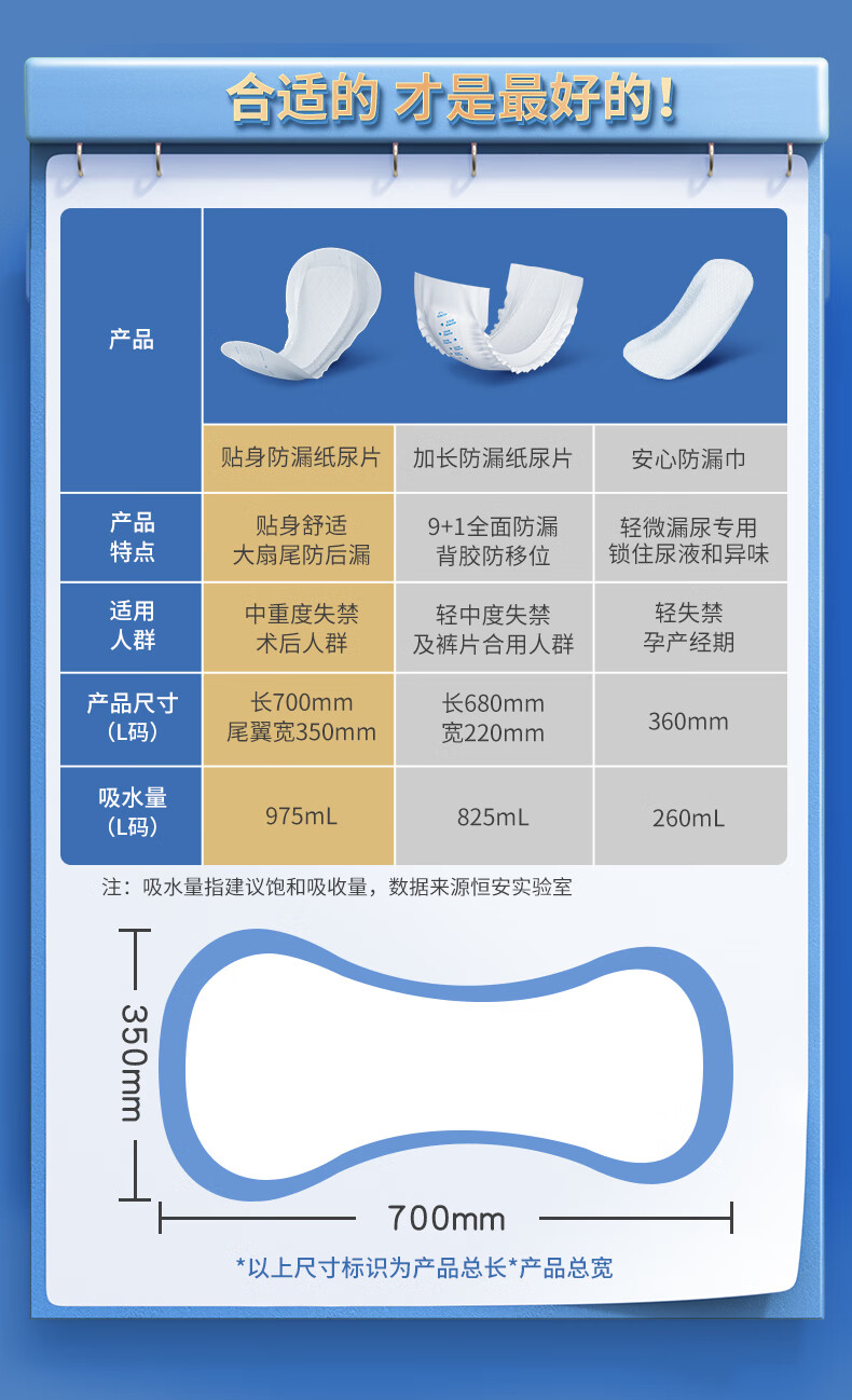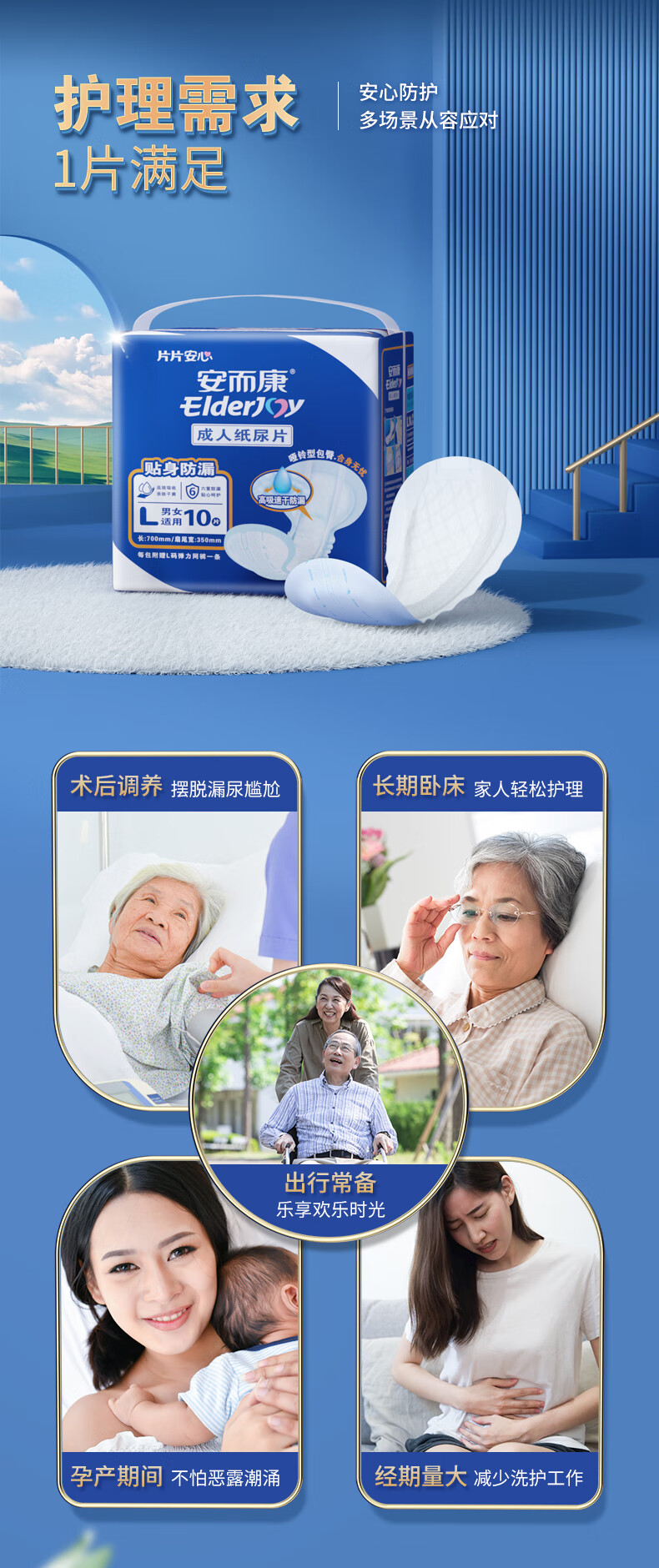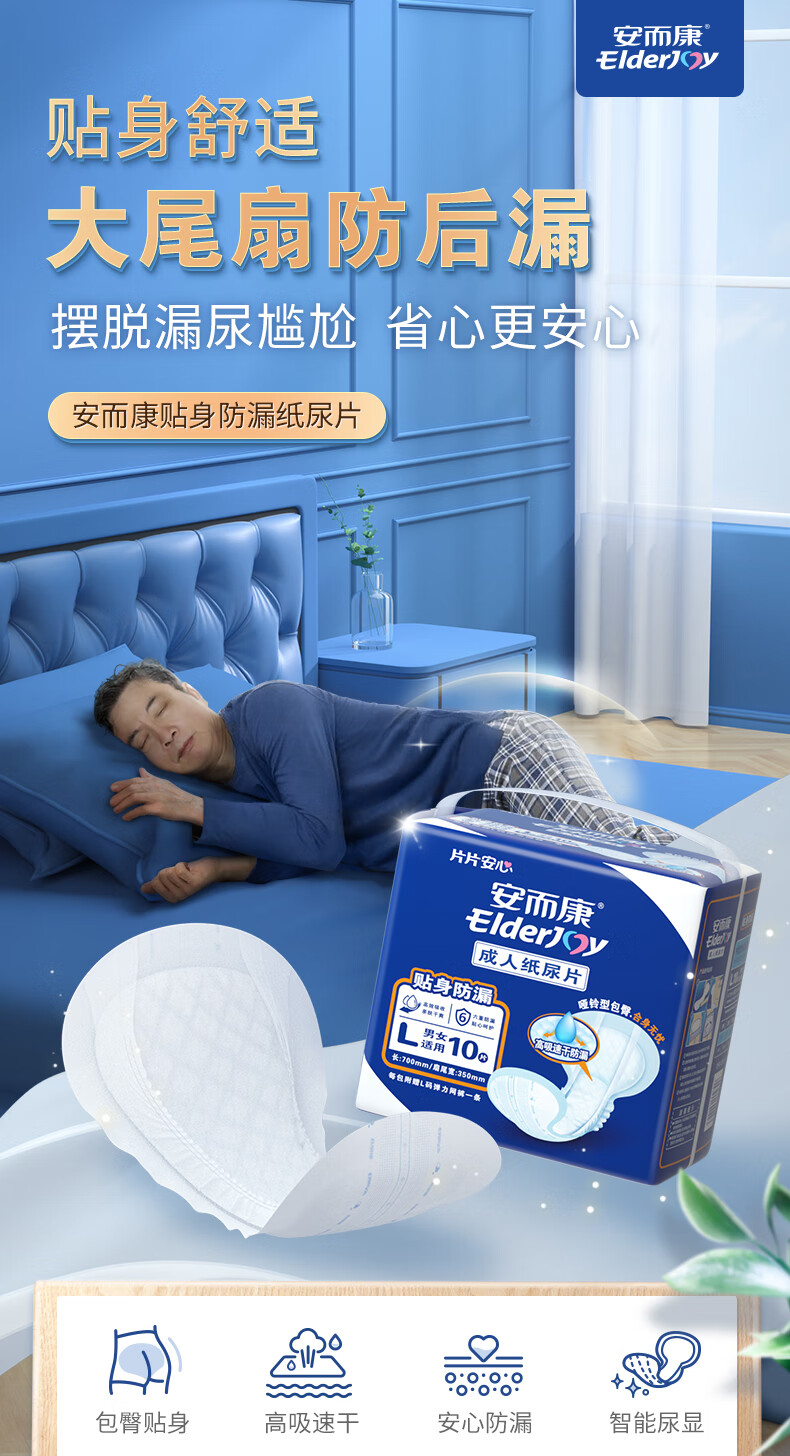 安而康(Elderjoy)贴身防漏成人纸尿片L10片70*35cm漏尿护垫尿片老人附网裤男女