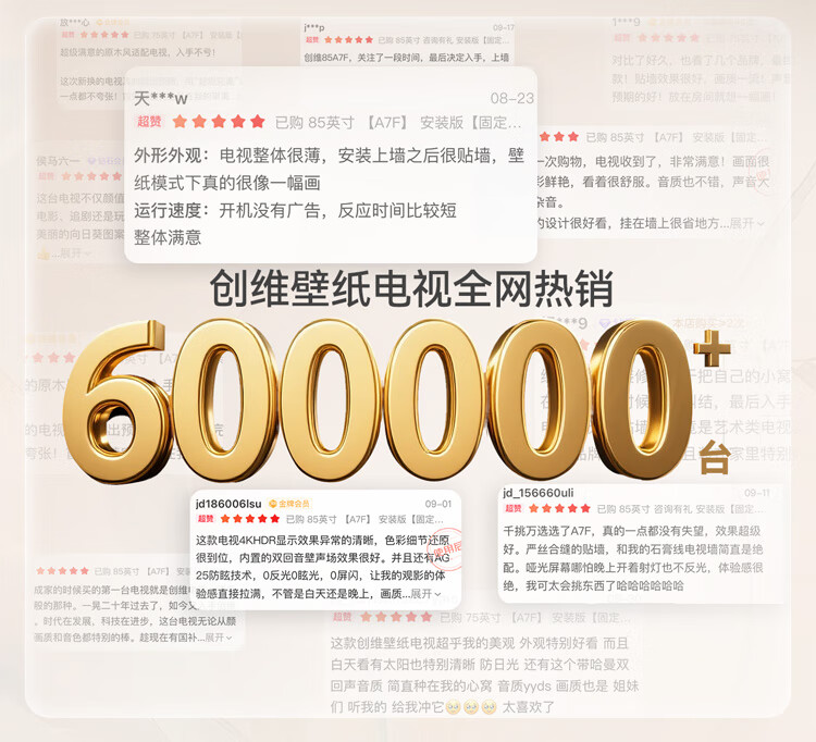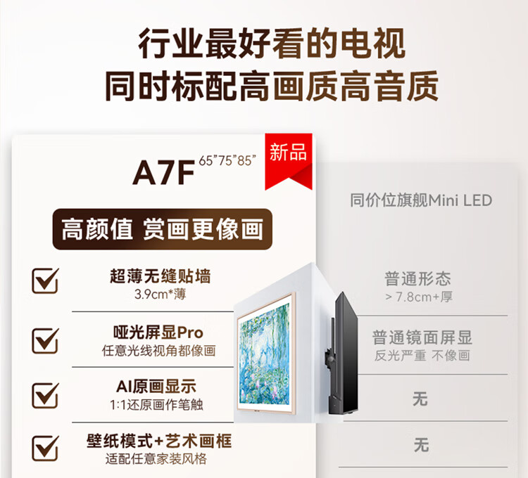 创维壁纸电视A7F 65英寸超薄壁画艺术mini led电视机65吋 智能平板家电液晶电视以旧换新 国家补贴