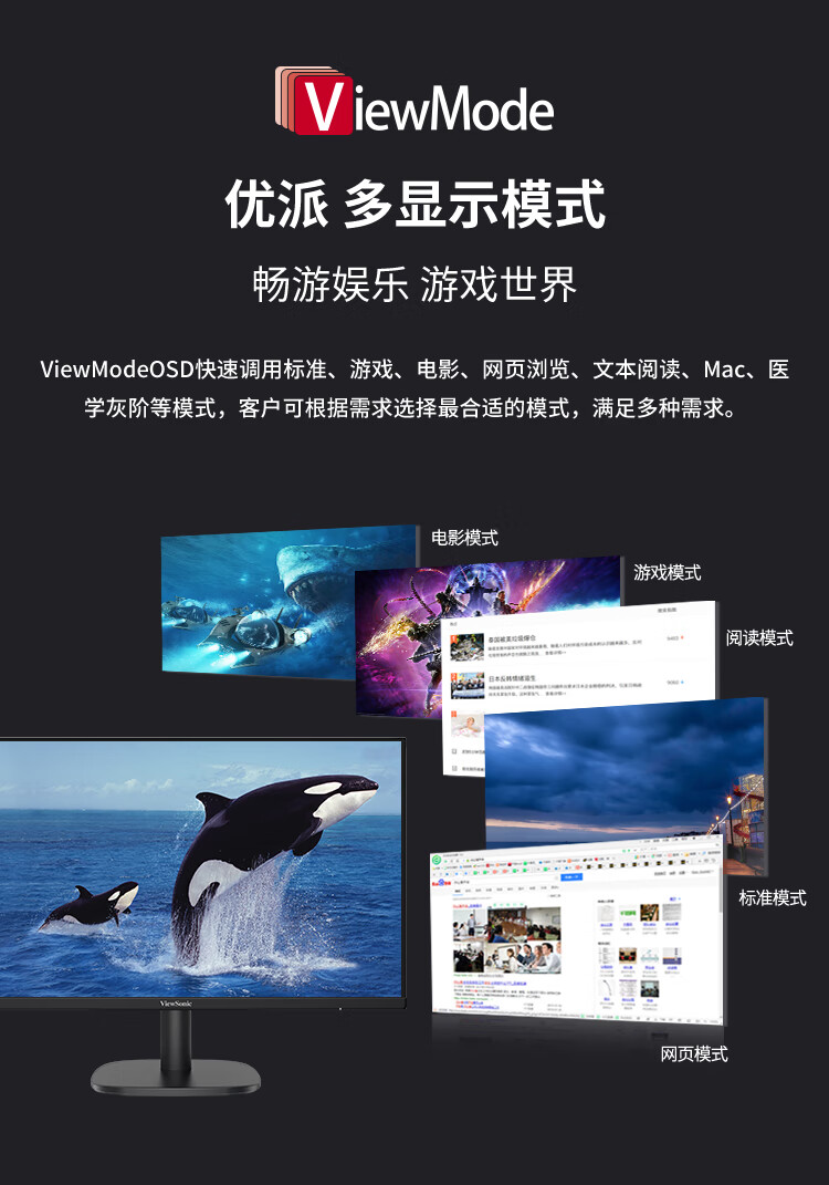 优派 27英寸4K超清显示器 10BIT 10.7亿 99%sRGB HDR10低蓝光不闪屏办公窄边框大屏 VA2763-4K-HD
